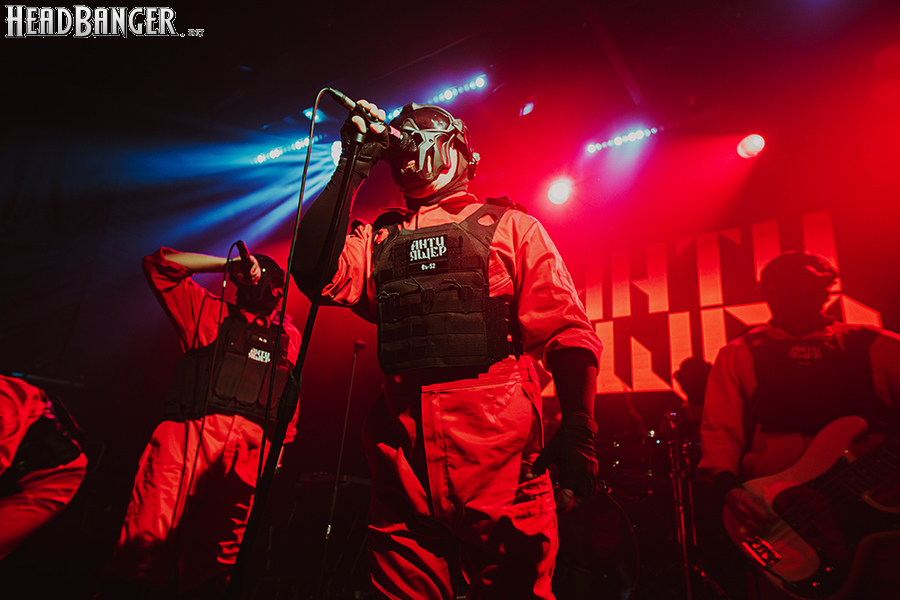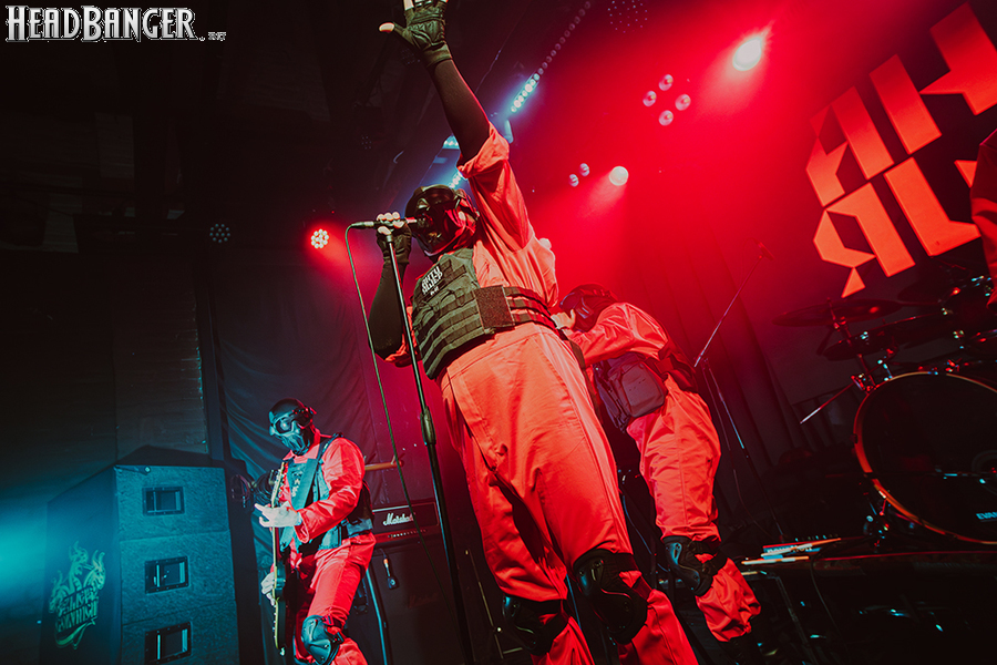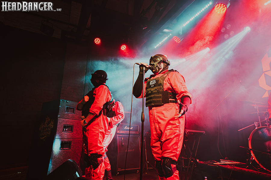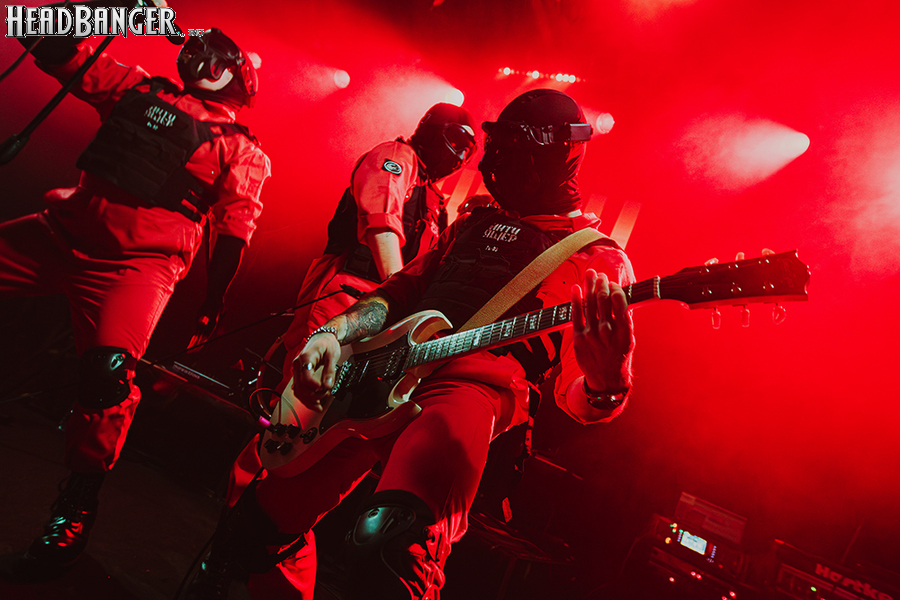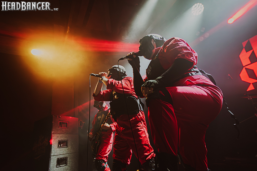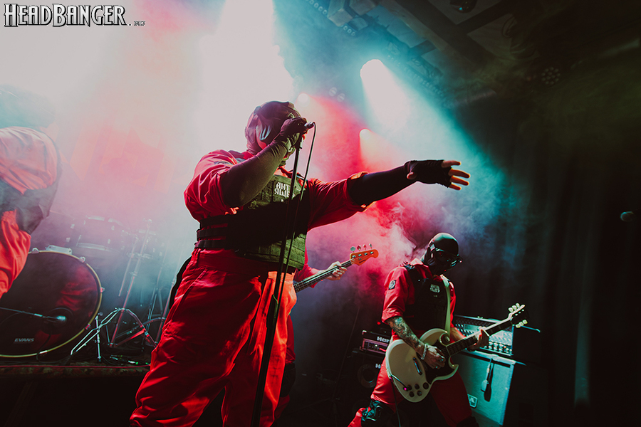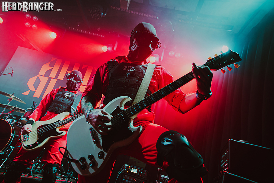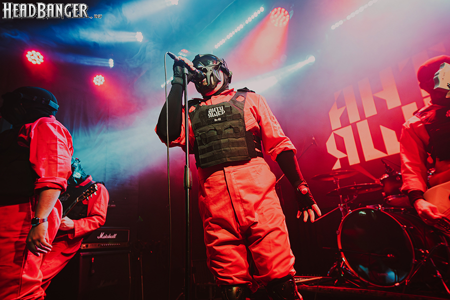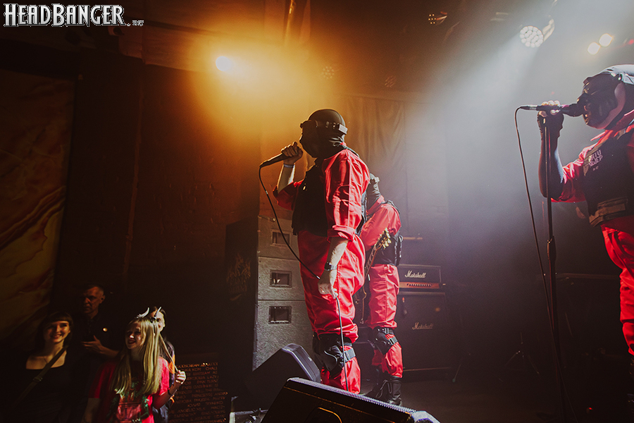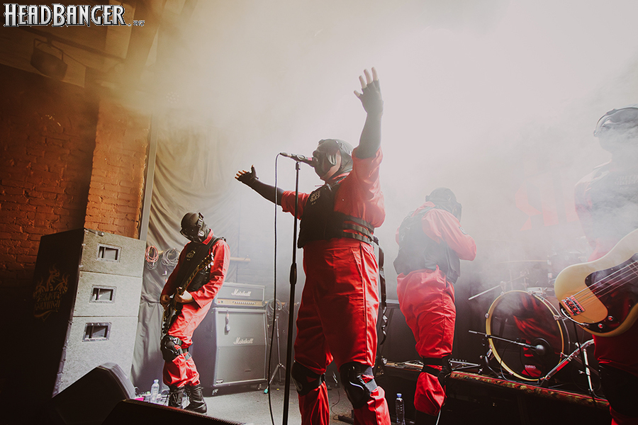 «Веселие да рубилово» начали Анти-Ящер из Москвы. У незнакомых с творчеством группы (а таких, как мне показалось, в зале было достаточно много) их появление вызвало восторг и смех. В красных костюмах постапокалиптических выживальщиков, бронежилетах, балаклавах и защитных масках музыканты смотрелись максимально эпично. Серьезным тоном солист представил свою Секретную Защитную Организацию, созданную с целью защиты Земли и Земного Измерения от внепространственных и внеземных угроз, агрессии инопланетных/инопространственных сущностей, а также для противостояния древней расе ящеритов, пришедших из Дальней Тьмы. Что ж, заявка на миллион.