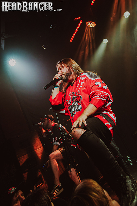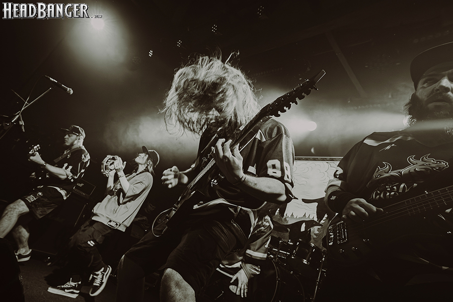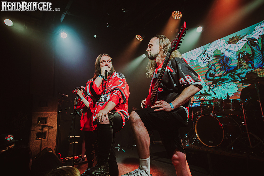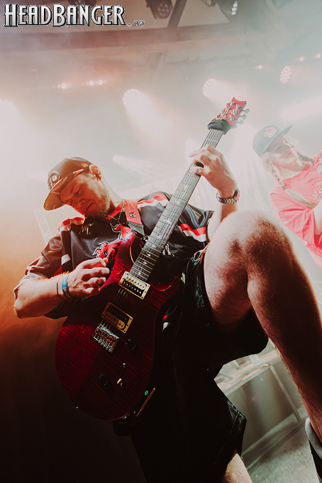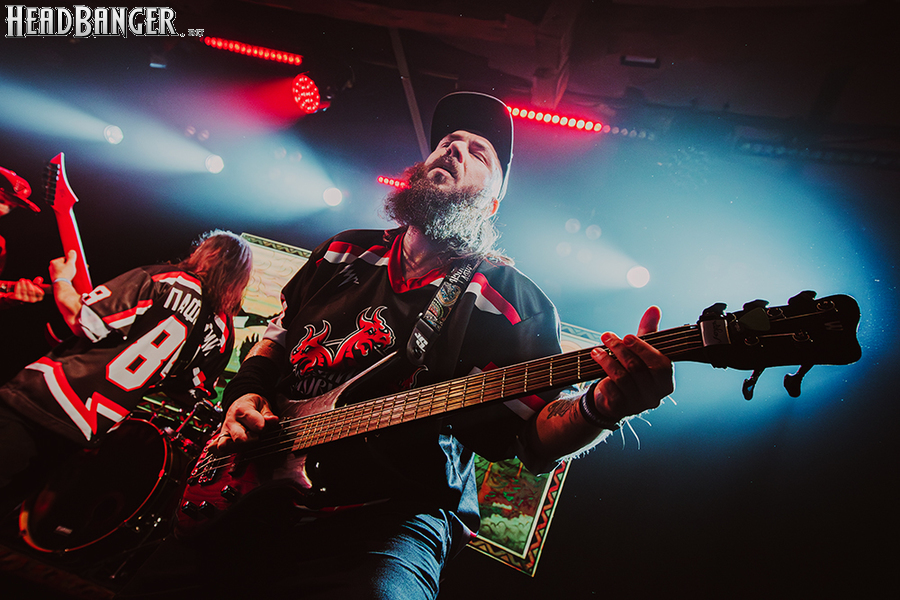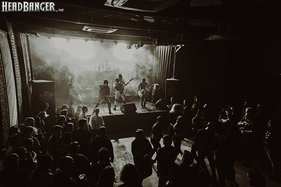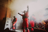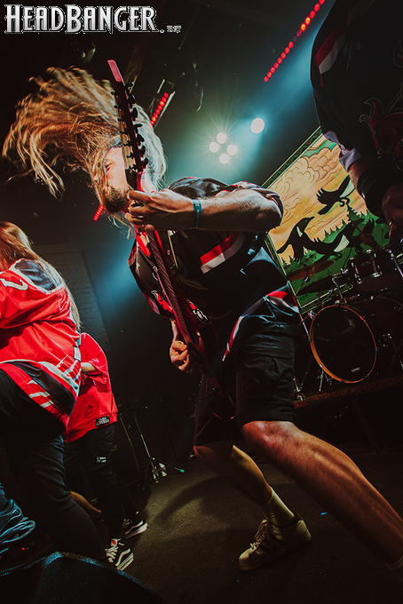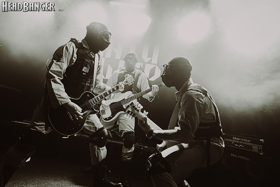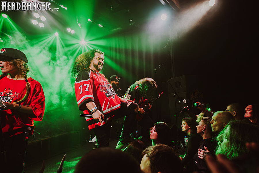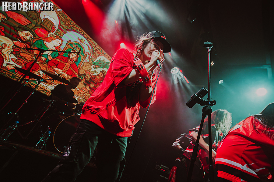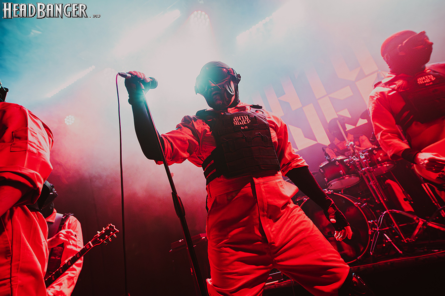 «Веселие да рубилово» начали Анти-Ящер из Москвы. У незнакомых с творчеством группы (а таких, как мне показалось, в зале было достаточно много) их появление вызвало восторг и смех. В красных костюмах постапокалиптических выживальщиков, бронежилетах, балаклавах и защитных масках музыканты смотрелись максимально эпично. Серьезным тоном солист представил свою Секретную Защитную Организацию, созданную с целью защиты Земли и Земного Измерения от внепространственных и внеземных угроз, агрессии инопланетных/инопространственных сущностей, а также для противостояния древней расе ящеритов, пришедших из Дальней Тьмы. Что ж, заявка на миллион.