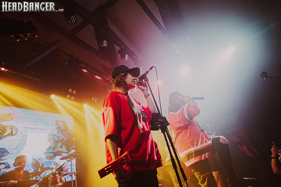 Небольшой перерыв — и на сцену вышли главные герои вечера, создатели стилей Russian skomorokh metal и lubok-core Змей Горыныч, вернее, Zmey Gorynich, с презентацией нового альбома «Странствiя Рукоблуда и Сестры Его Малафьи». По уверениям группы, альбом вышел «превеселый, былинный да сладостный, аки мед ставленый».