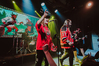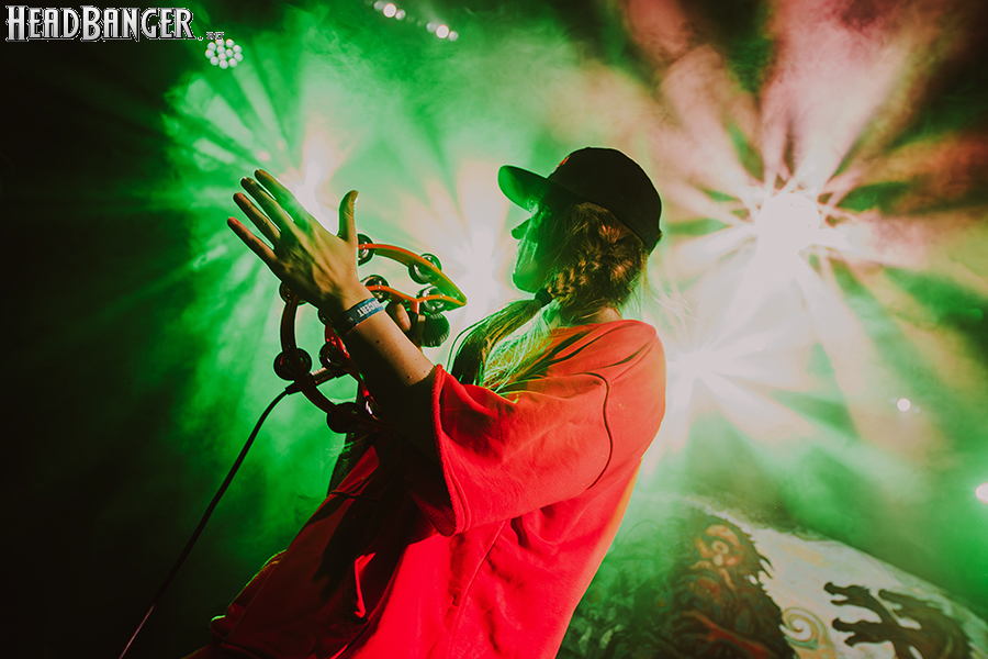Нужно сказать, что музыканты замечательно работали со зрителями. Они то просили прыгать на одной ноге, как разрушитель Верлиока, то вспоминали фильм «Кин-дза-дза», и весь зал вместе со стоящими на сцене дружно приседал «Ку», то сажали зрителей на пол и в нужный момент давали отмашку выпрыгнуть. Ну а уж сколько раз массово взметались и ритмично поддерживали группу руки с «козами» — сложно сосчитать!
