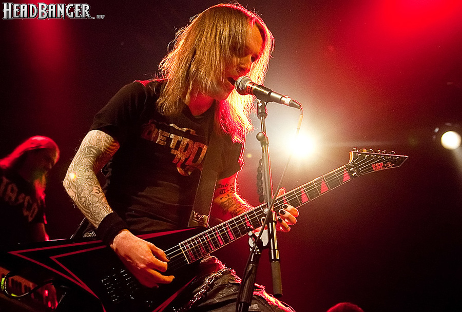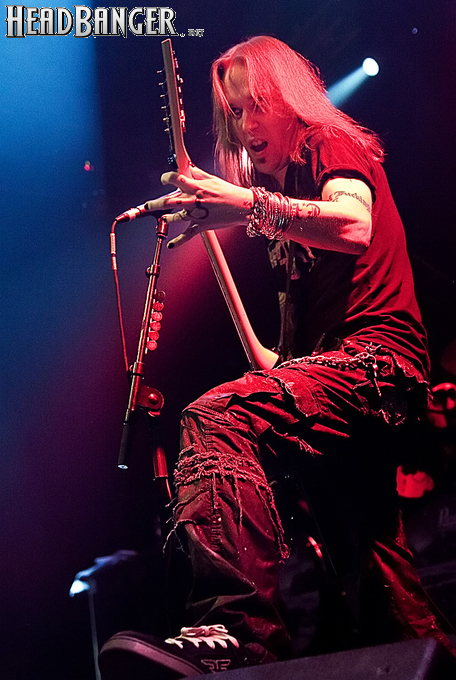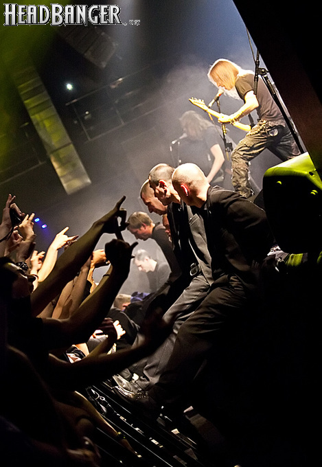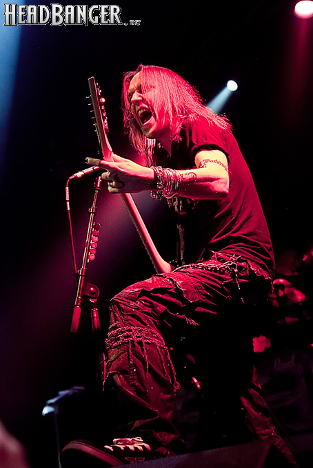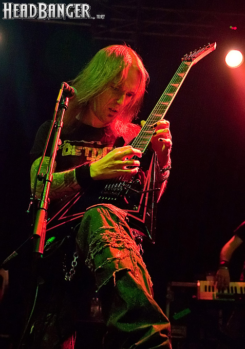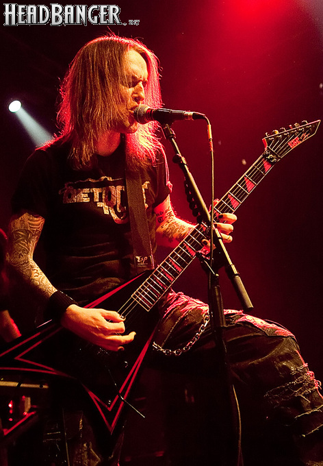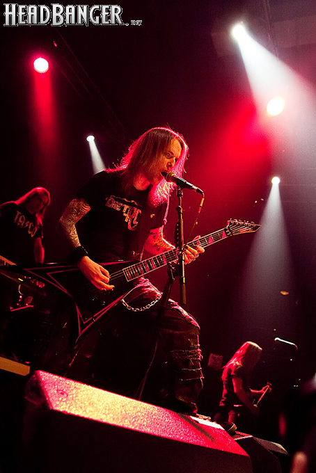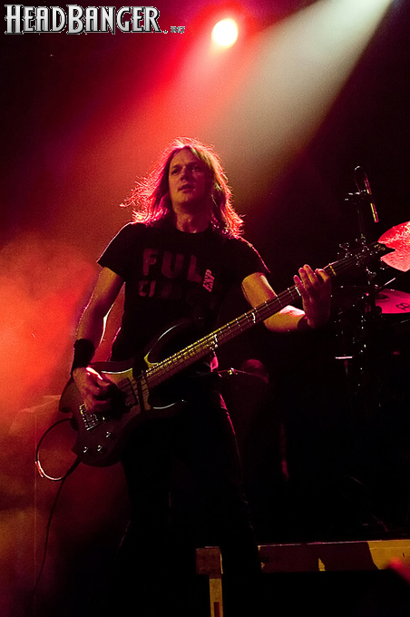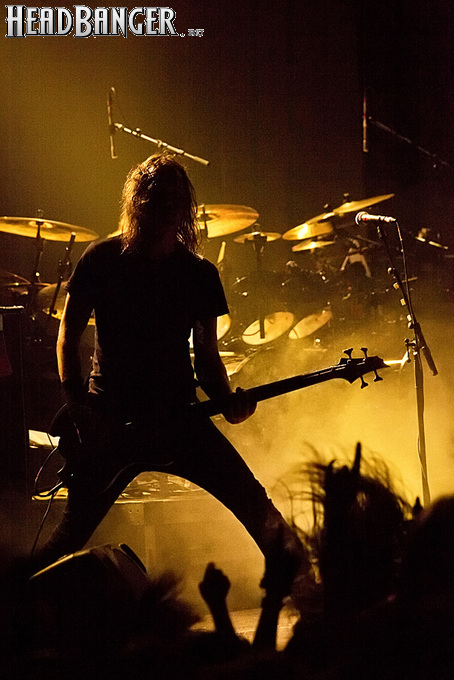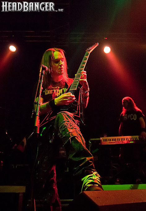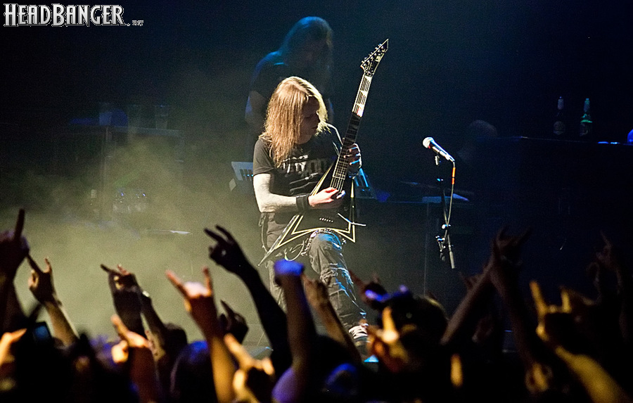 Знатные боевики «деток» звучали из колонок резво и энергично, но сказать того же о самих музыкантов нельзя было при всем желании. Невооруженным глазом было видно, что парни абсолютно не напрягаются и просто отрабатывают свой гонорар. Песню за песней группа монотонно бомбила свой сет с минимальными перерывами, практически полностью забыв о сценической отдаче. С годами Children of Bodom гастролируют все активнее, стараясь включить в свой график как можно больше выступлений в разных уголках мира. Видимо, дело жизни, когда-то выбранное ребятами в качестве приоритетного, банально превратилось в рутину. В мире немало коллективов и музыкантов, которые вкладывают душу в каждое свое выступление и сливаются с аудиторией в единый поток энергии. Поэтому когда группа выходит на сцену и играет абсолютно без энтузиазма, зоркий фанатский глаз сразу замечает халтуру. Вот перед нами клавишник Янне Вирман, считающийся одним из самых крутых виртуозов синтезаторного дела в тяжелой музыке. Почти все выступление он занимался чем угодно, но только не игрой на своем инструменте. Играть в телефон, пить пиво, фотографировать зал, общаться с техниками было ему куда интереснее, чем с полной отдачей исполнять свои, порой весьма непростые, партии перед поклонниками, не только заплатившими деньги за концерт, но и пришедшими на него в незапланированный день. Переключим внимание на маэстро Алекси Лайхо. Живьем финский гитарный мастер давно перестал играть чисто и четко – в половине песен лидер «бодомов» откровенно налажал, путая тут и там риффы и мелодии. В непродолжительных перерывах между песнями он почти не общался с публикой, а просто матерился и плевал в первые ряды, что смотрелось крайне мерзко. Да и по остальным членам группы нельзя было сказать, что они получают удовольствие от происходящего.