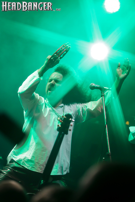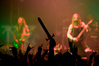 Впрочем, слово «ровно» относится не только ко фронтмену, но и к выступлению в целом. Хотя в сет-листе нашлось место вещам со всех семи альбомов фарерцев, хотя их материал в принципе не страдает однообразием, где-то к 50-й минуте песни стали для меня перетекать одна в другую, поскольку все они, независимо от темпа, ритма и тематики, игрались с одинаковым настроем, причем настроем почти нейтральным. Музыканты, вроде бы и с публикой общающиеся, и с края на край сцены бегающие, на самом деле практически не выдавали в зал энергии. Быть может, у них ее уже просто не осталось после длительного американского тура, но это не отменяет того факта, что концерт не вызвал у меня (да и не только у меня – я разговаривал с другими зрителями) почти никакого эмоционального отклика. А это проблема посерьезнее, чем слабый голос вокалиста.