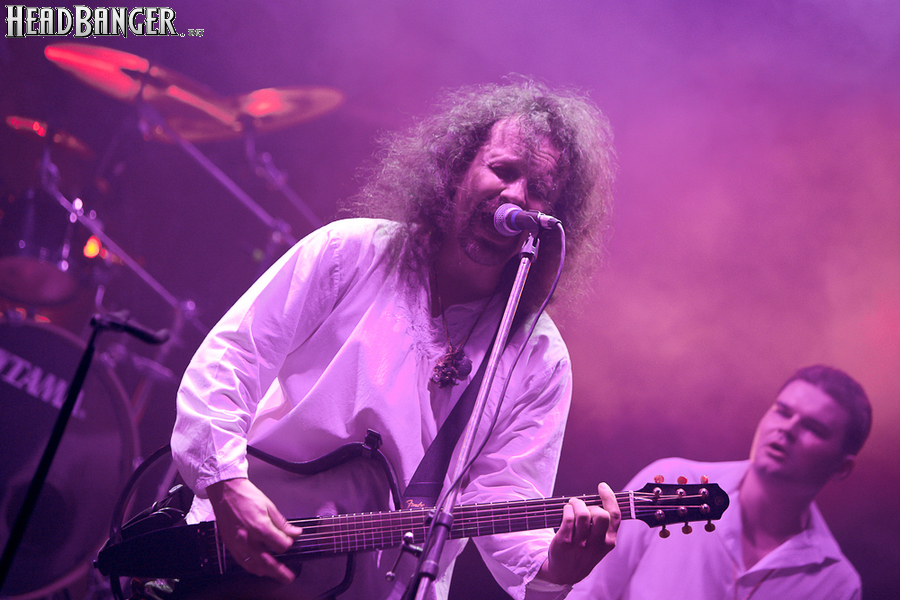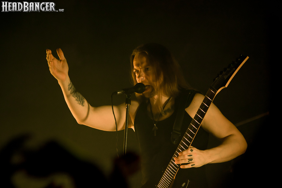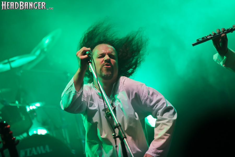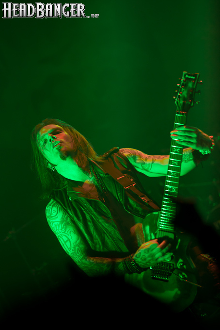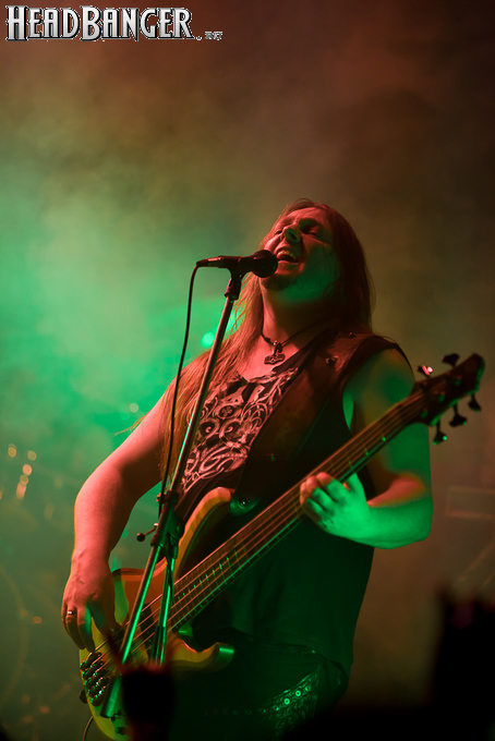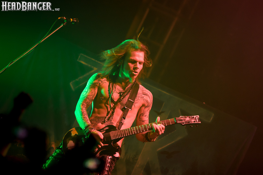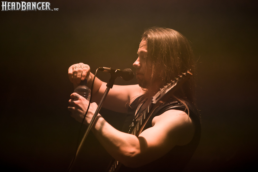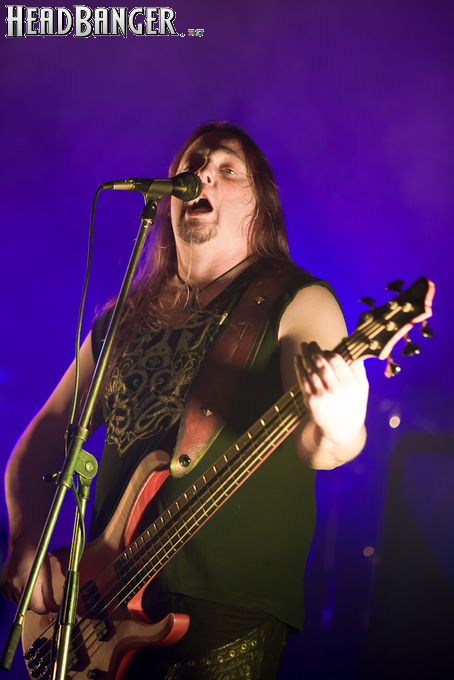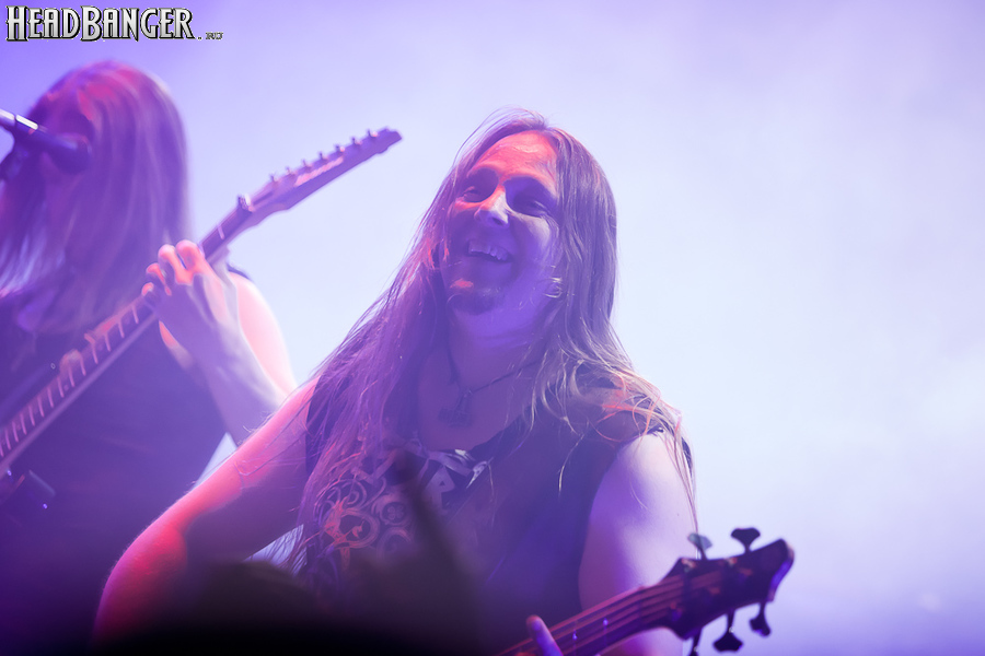 В принципе, к звучанию инструментов у меня особых претензий нет – все было сыграно без ляпов, ничего не «проваливалось» и не «проседало» в миксе, а новый барабанщик Амон Дьюрхуус и вовсе отыграл выше всяческих похвал. Но стоило вокалисту Йери Йонсену подойти к микрофону, все впечатление от игры оказалось смазанным. Казалось бы, фронтмен викинг-металлической группы просто обязан обладать сильным и глубоким голосом, и хотя на студийных записях Tyr Йери особых вокальных чудес не демонстрировал, он всегда казался мне очень подходящим к музыке группы. Живьем же оказалось, что он поет сугубо связками, тихо и без особых проявлений эмоций, из-за чего в большинстве случаев голоса просто не слышно, а в остальное время он звучит абсолютно ровно, что никак не вяжется с клокочущей энергией таких песен как “Flames Of The Free” или “Mare Of My Night”. На мой взгляд, лучшее, что может сделать группа, если действительно стремится к большому успеху – взять свободного вокалиста, который сможет воспроизвести прекрасный, в общем-то, материал должным образом в живых условиях. А Йери пусть ограничивается гитарой и хорами – они у Tyr есть почти в каждой песне, и давать отдых связкам не получается ни у кого из инструменталистов.