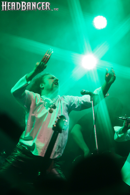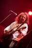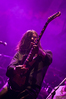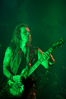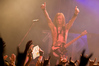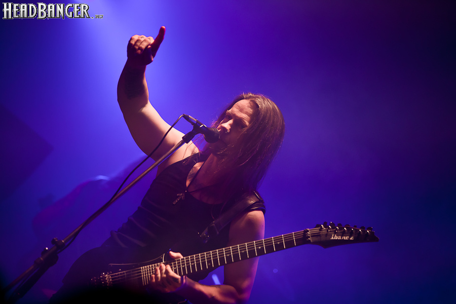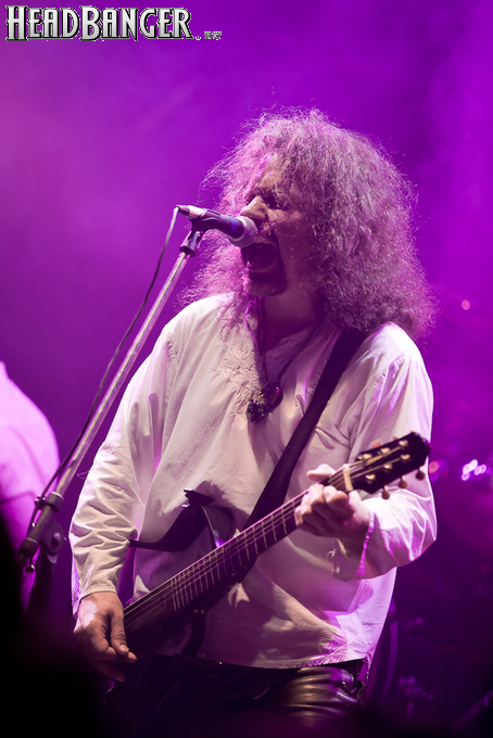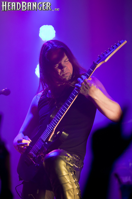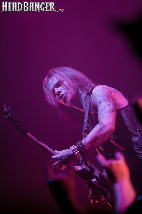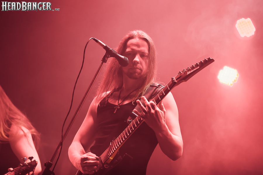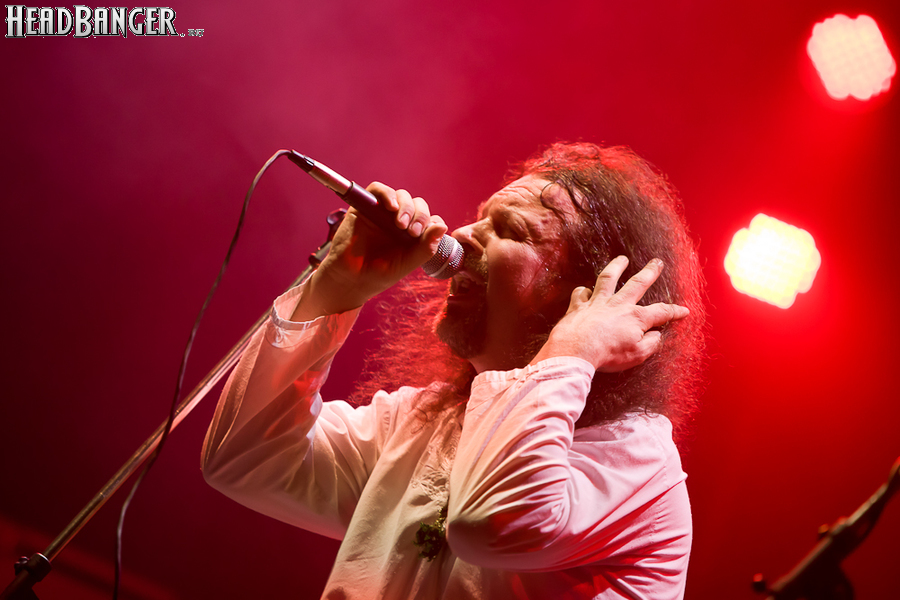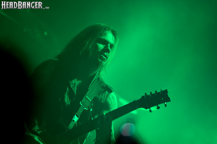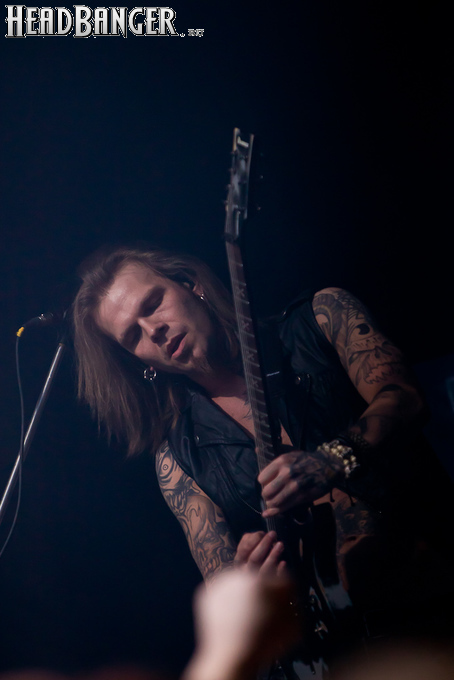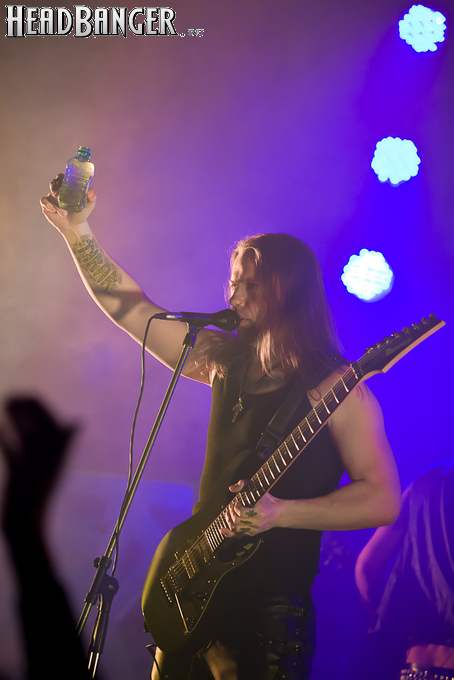 В принципе, к звучанию инструментов у меня особых претензий нет – все было сыграно без ляпов, ничего не «проваливалось» и не «проседало» в миксе, а новый барабанщик Амон Дьюрхуус и вовсе отыграл выше всяческих похвал. Но стоило вокалисту Йери Йонсену подойти к микрофону, все впечатление от игры оказалось смазанным. Казалось бы, фронтмен викинг-металлической группы просто обязан обладать сильным и глубоким голосом, и хотя на студийных записях Tyr Йери особых вокальных чудес не демонстрировал, он всегда казался мне очень подходящим к музыке группы. Живьем же оказалось, что он поет сугубо связками, тихо и без особых проявлений эмоций, из-за чего в большинстве случаев голоса просто не слышно, а в остальное время он звучит абсолютно ровно, что никак не вяжется с клокочущей энергией таких песен как “Flames Of The Free” или “Mare Of My Night”. На мой взгляд, лучшее, что может сделать группа, если действительно стремится к большому успеху – взять свободного вокалиста, который сможет воспроизвести прекрасный, в общем-то, материал должным образом в живых условиях. А Йери пусть ограничивается гитарой и хорами – они у Tyr есть почти в каждой песне, и давать отдых связкам не получается ни у кого из инструменталистов.