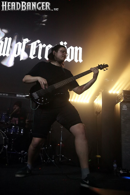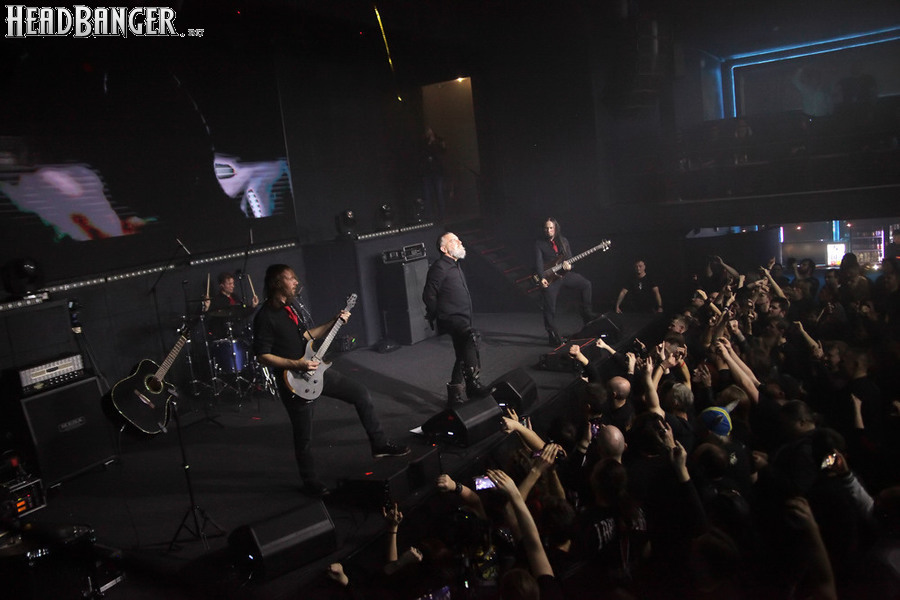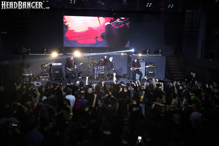 Однако не будем забегать вперед; сначала нужно сказать несколько слов о разогревающем коллективе. Им оказались калининградцы The Fall Of Creation, которых я уже видел в аналогичном качестве на майском эпохальном шоу Ektomorf. Их нынешнее выступление проходило по плюс-минус аналогичному сценарию, правда, с чуть более хаотичным звуком, который в первой половине их сета усугублялся еще и практически отсутствовавшим светом. Потом, насколько я понял, были приняты меры, и свет резко появился, причем не только на сцене, но и в зале, так что вторая половина программы калининградцев получилась поинтереснее. К тому же, к материалу их второго и пока последнего альбома “Enlightenment” был в этот раз добавлен кавер на At The Gates, посвященный недавно скончавшемуся Томасу Линдбергу. Послушать такую нетленку, как “Blinded By Fear”, всегда приятно, пусть и по столь печальному поводу.