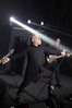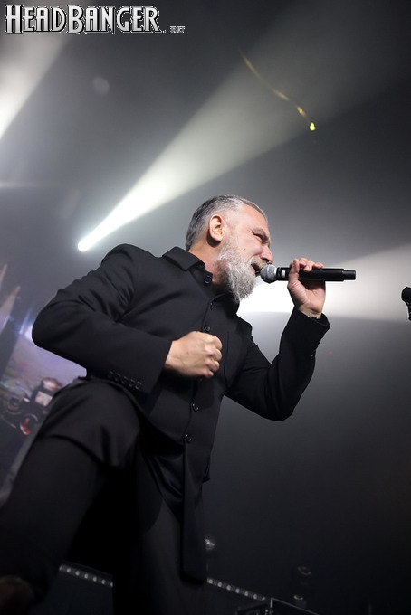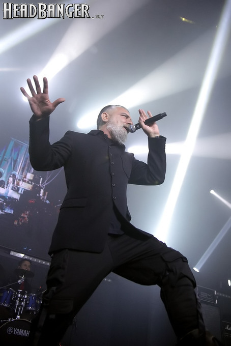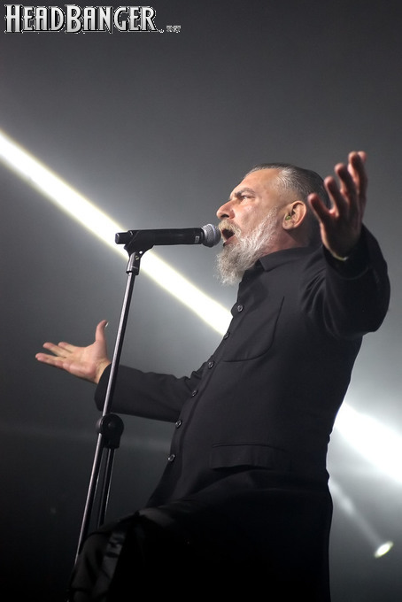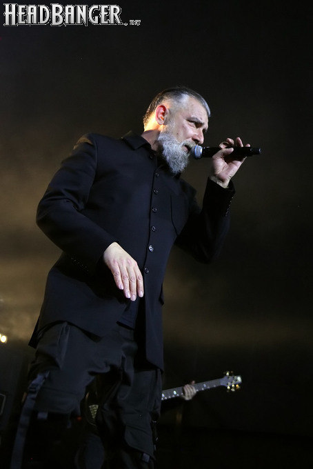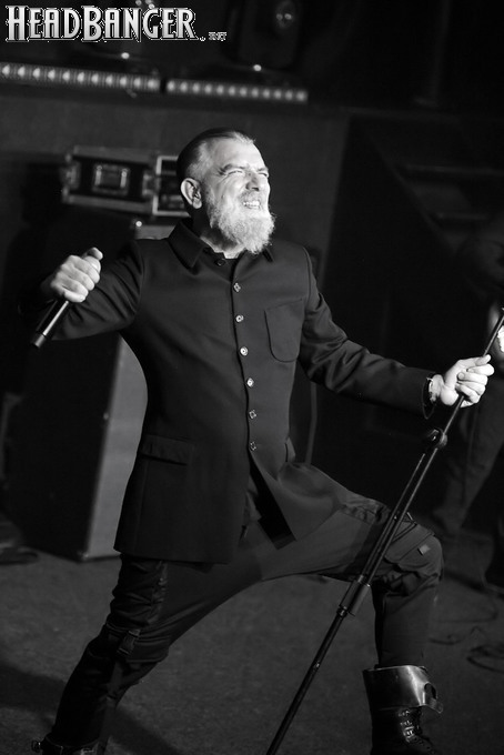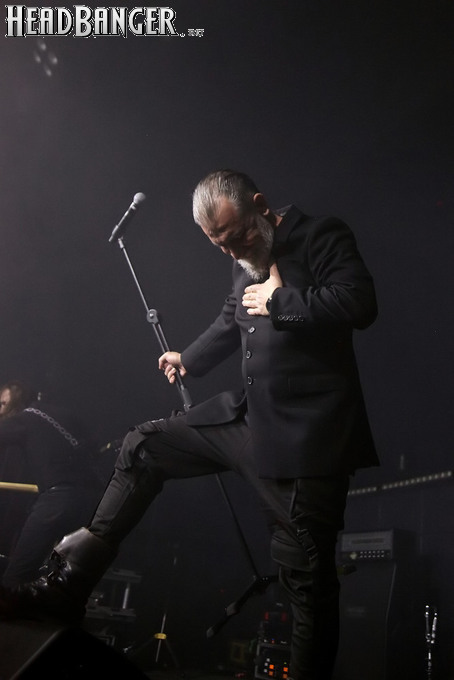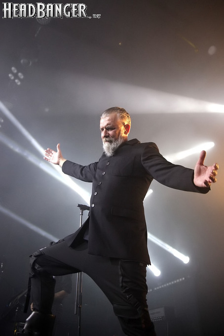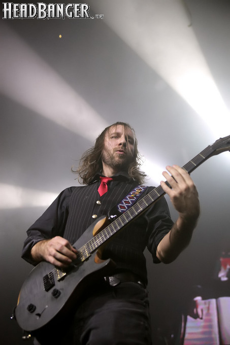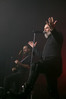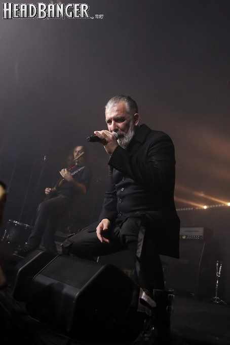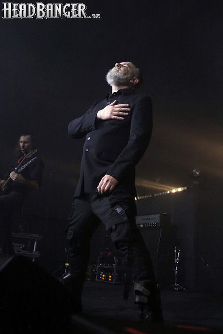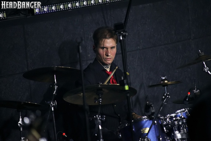 Хотя Dark Lunacy родом из страны, где принято ко многим вещам относиться легко и не “запариваться”, для описания многих аспектов деятельности группы на язык просится слово “строгий”. Они строго пунктуальны: хотя The Fall Of Creation вышли на сцену с 15-минутным опозданием, шоу хэдлайнеров началось ровно в девять вечера, как и было запланировано. У них строгий имидж: никаких футболок или шортов; все четверо предстают перед публикой в черных рубашках и пиджаках, а трое инструменталистов - с красными галстуками. Они предъявляют строгие требования к саунду: о хаотичности разгоревающей группы не осталось и следа, живое выступление Dark Lunacy максимально приближено к тому, как они звучат на студийных записях, пусть даже для этого приходится использовать записанные хоры, скрипку и др. И лишь со светом что-то пошло не по плану: он как включился в середине сета The Fall Of Creation, так и не отключался до самого конца вечера. Из-за этого видеоряд, который Dark Lunacy транслировали на заднике сцены - а это и клипы самой группы, и документальная хроника, и кадры из фильмов - ушел в тень, и чтобы его рассмотреть, приходилось целенаправленно вглядываться. Изначальная задумка музыкантов, насколько я могу судить, была несколько другой.
