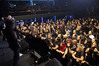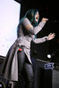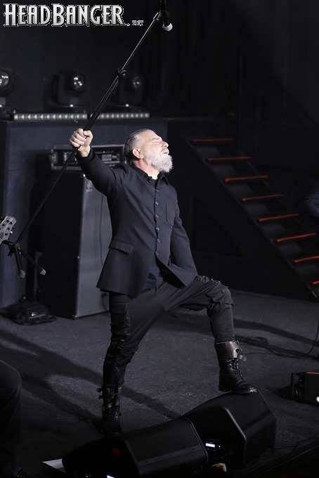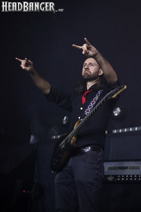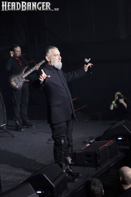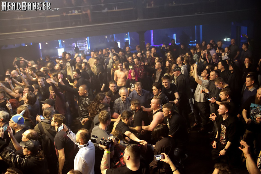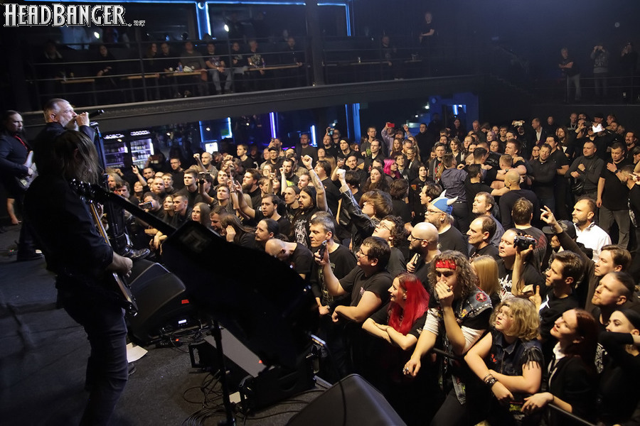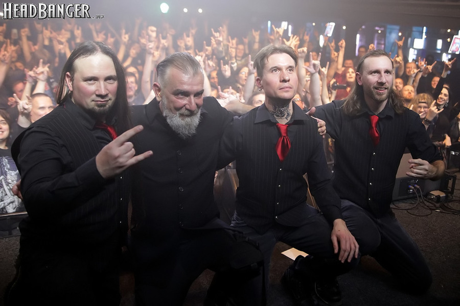 Мне, если честно, эта мера кажется излишней - для того, чтобы понять музыку и шоу Dark Lunacy, русскому человеку никакой переводчик не требуется. В них уже заложено все, что надо - знакомые мелодии с национальным колоритом, яркие образы на экране, убедительнейший фронтмен, называющий себя не певцом, а рассказчиком, и действительно буквально проживающий на сцене слова своих песен, и все это в сочетании с мощной металлической подачей, близкой к мелодик-дэтовой, но лишенной при этом большинства жанровых клише. Неудивительно, что публика пребывала в восторге на протяжении всего выступления и не стеснялась выражать его всеми доступными способами - от подпевания и слэма до краудсерфинга и даже отчаянных прорывов на сцену. Ну а когда после шоу было объявлено, что группа вскоре выйдет общаться со зрителями, ждать ее осталось не менее половины собравшихся. Ну а я не могу не порадоваться, что долгие годы упорного труда на не самой благодатной почве воздались-таки Майку сторицей, и российская аудитория наконец-то ответила ему на любовь такой любовью, какой она в лучшие годы славилась среди иностранных рок-музыкантов. Присутствовать при этом - самый главный кайф, который я получил от концерта.