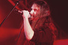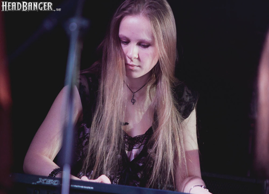 Открывала вечер питерская группа Sanctorium, позиционирующая свой стиль как симфо-метал. На сцену вышли аж семь музыкантов – певец и певица, клавишница, два гитариста, басист и барабанщик. И заиграли достаточно сложную и разнообразную музыку на стыке дарк-метала, трэша, дэта, хэви-метала и еще чего-то. Причем заиграли очень качественно и профессионально, да и в композиционном плане это банальный «найтвиш» или «театр трагедии», а серьезные, многочастные композиции, в среднем минут по семь длиной. При прослушивании их скучно не становится, хоть музыканты и достаточно статичны. Однако и в буйный восторг Sanctorium меня не привели. Нужно слушать альбом!
