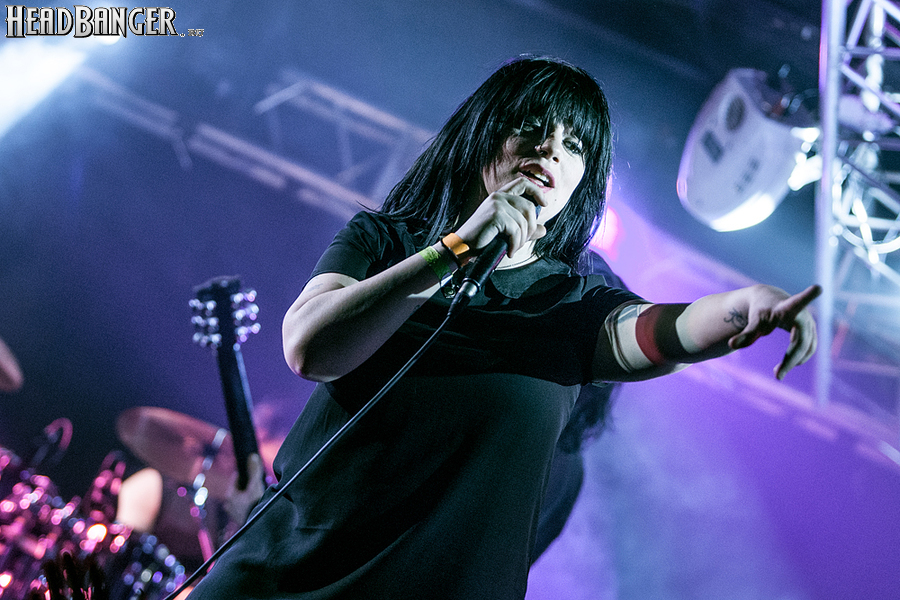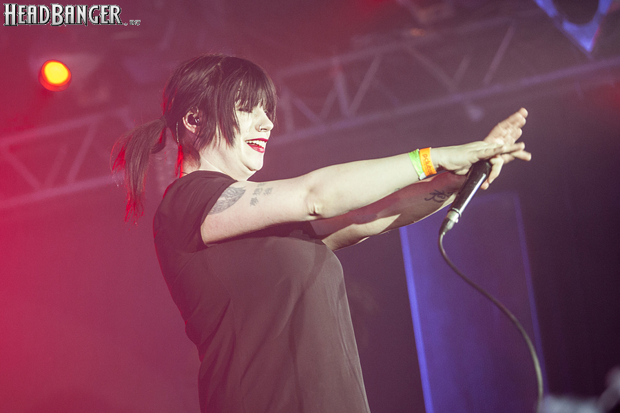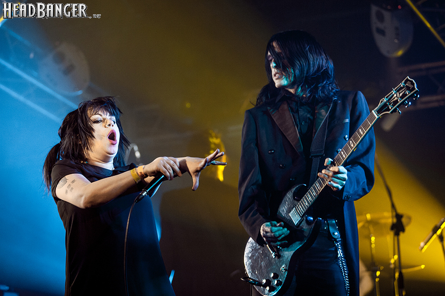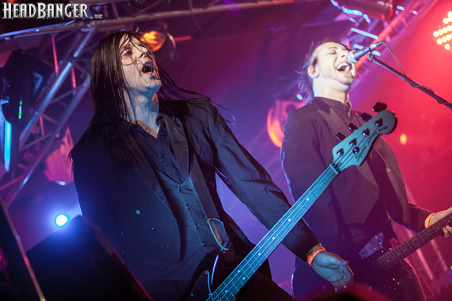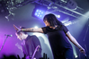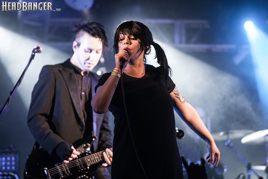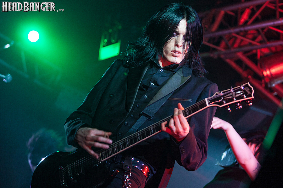 Концерт начинается с жестких грувовых риффов “Red Stars”, которые задают тон всему концерту. Сразу становится понятно: сегодня здесь будут играть рок. Мягкое студийное звучание, сочетающее в себе альтернативный рок, синти-поп, поп-индастриал, дарквейв, дрим-поп и хоррор-саундтреки в духе Джона Карпентера осталось на альбомах, живьем же канадцы играют заметно жестче. Гитары звучат громко и грязно, оттесняя электронику (доминирующую в студийных записях) на второй план – впрочем, чего еще ожидать от состава с двумя гитаристами? Впрочем, хуже от этого никому не становится: простые, но цепляющие риффы влияют на энергетику концерта самым лучшим образом. У The Birthday Massacre не так уж и много ню-металлических композиций, но этим вечером они сыграли почти все из них: помимо вышеупомянутой “Red Stars”, прозвучали и “Pins And Needles”, и “Down”, ну и, конечно, “In the Dark”, сыгранная на бис в качестве одного из главных хитов. Да и другие композиции несколько утяжелились, хотя в таких вещах, как “Shallow Grave” или “Video Kid” звучание все равно скорее танцевальное, чем «хэдбенгерское». Ну а вокал Чиби по-настоящему прекрасен. Он особенно впечатляет в моменты, когда она переходит с ангельского пения на зловещий шепот или рык – кажется, все это она проделывает, совершенно не напрягаясь.