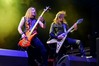 Далее настало время для баллады. Под прекрасную, посвященную всем влюбленным песню «Дыханье Последней Любви» моя соседка плакала навзрыд. После нее музыканты покинули сцену, оставив лишь гитариста Вячеслава Молчанова, который сыграл традиционное соло при поддержке барабанщика Александра Манякина. Оценить его по достоинству я, к сожалению, не смогла, потому что думала, что кровь польется из ушей - насколько мощно «били» колонки. Хотя сидящие на трибунах зрители говорили, что у них звук был отменный.