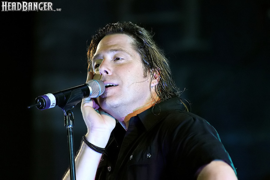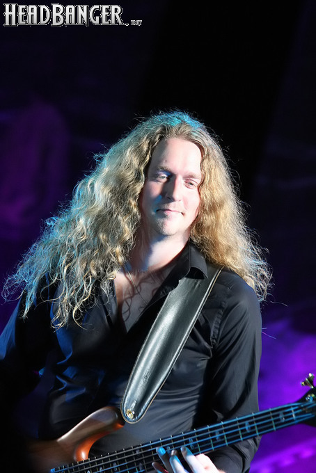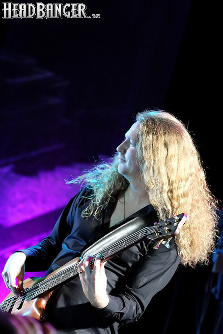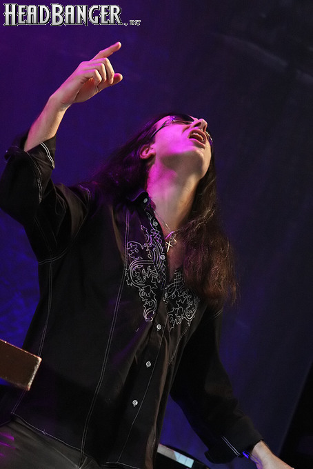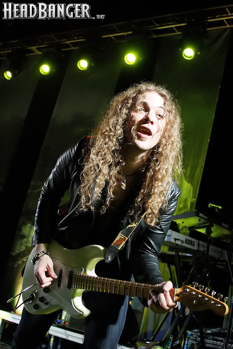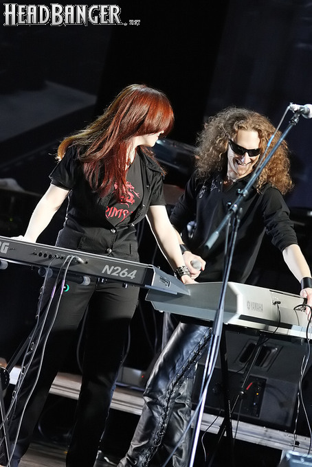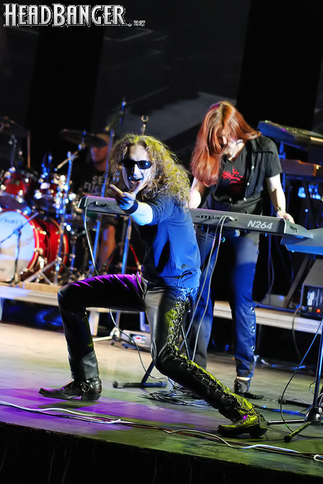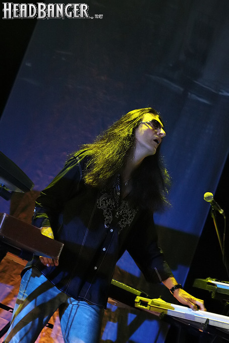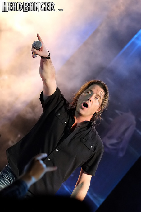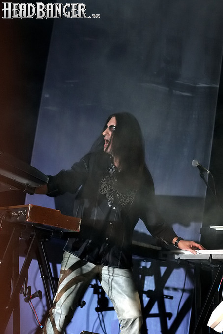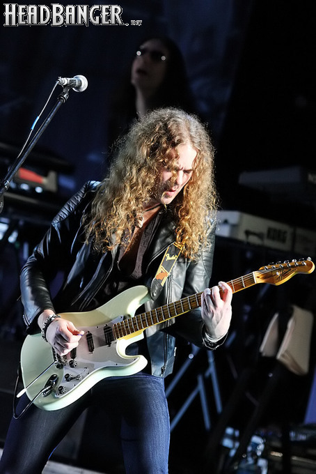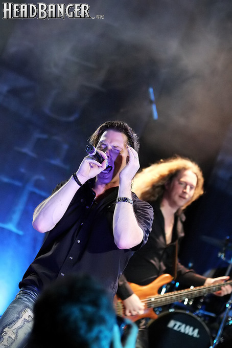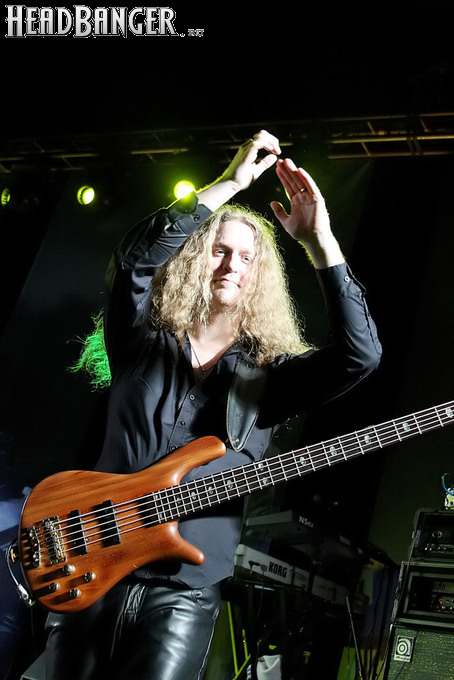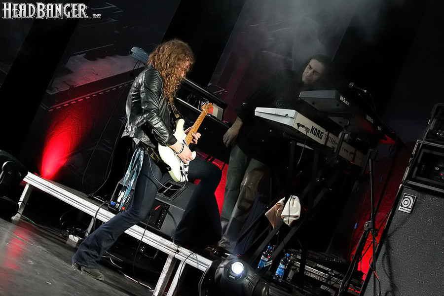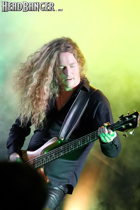 Но до появления главных героев вечера было ещё выступление разогрева, роль которых, так же как и в 2012 году, выполняли их московские «коллеги по цеху» Crimson Cry. О том, что музыку ребята играют похожую, свидетельствовало забавное удвоение оборудования на сцене. Барабанная установка большая, и рядом – ещё одна поменьше. Пульт для клавишника большой, «взрослый», и рядом – ещё один, поменьше. Кто играл на моём синтезаторе и… гм, отвлеклись. В общем, как и следовало ожидать, общей каши москвичи не испортили. И музыка, и вокал, - всё на месте. Только держатся ребята на сцене несколько скованно (и нет, я говорю не про Алексея Крючкова), особенно это было заметно в сравнении с датскими профессионалами, но это и единственный минус. Скажем так, после завершения их сета возникло желание найти где-то альбом группы и послушать песни без участия бьющих по уху колонок. И думаю, не у меня одной.