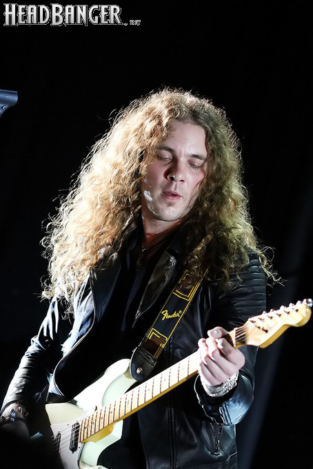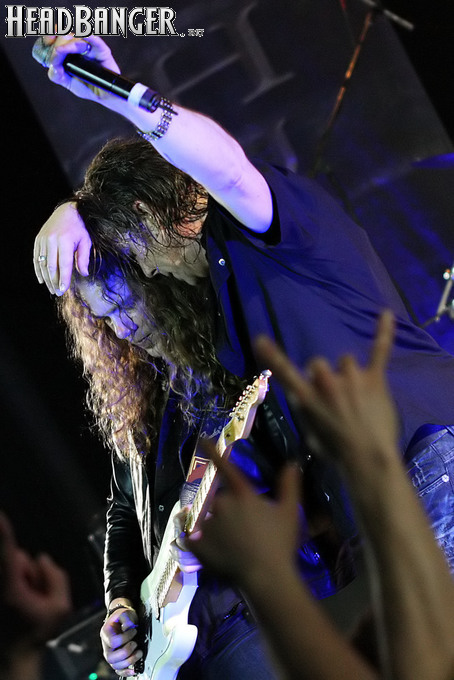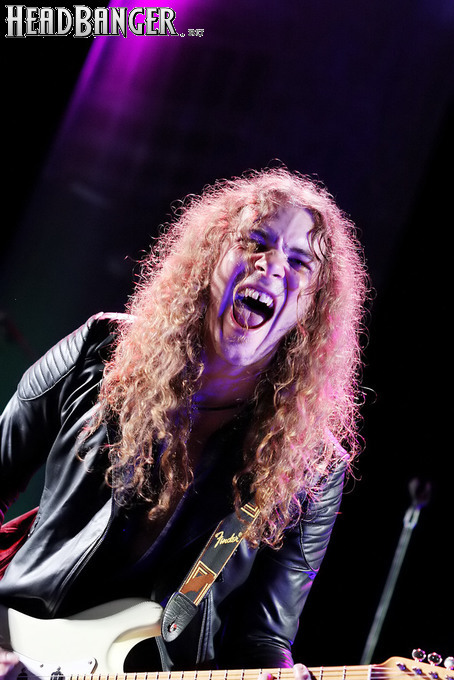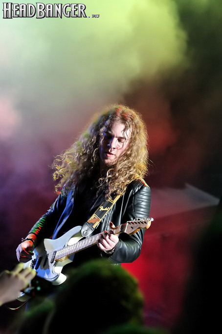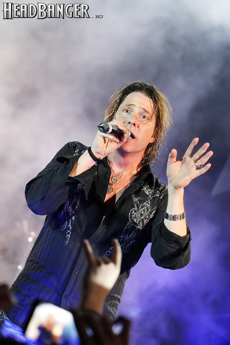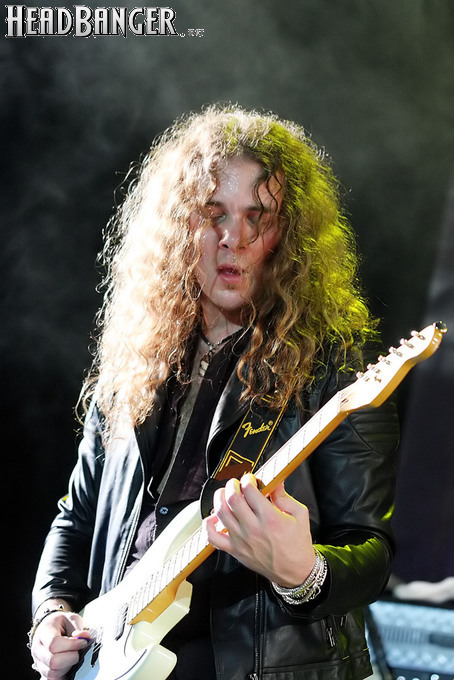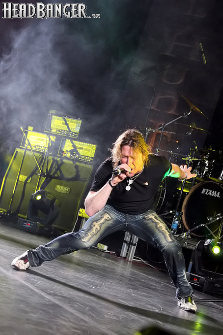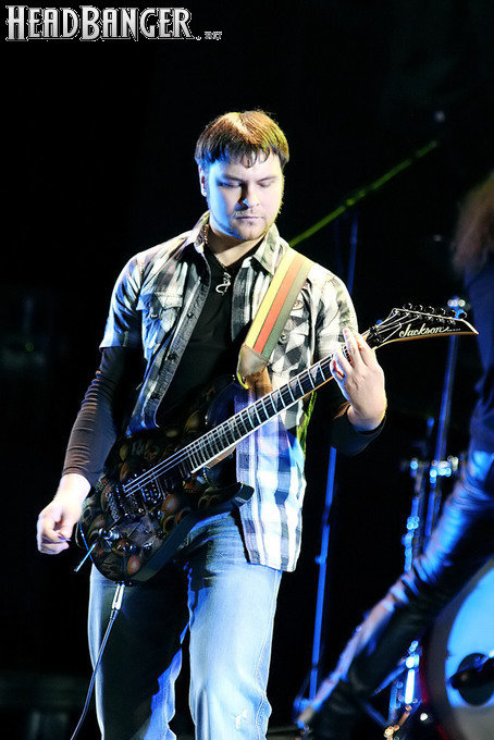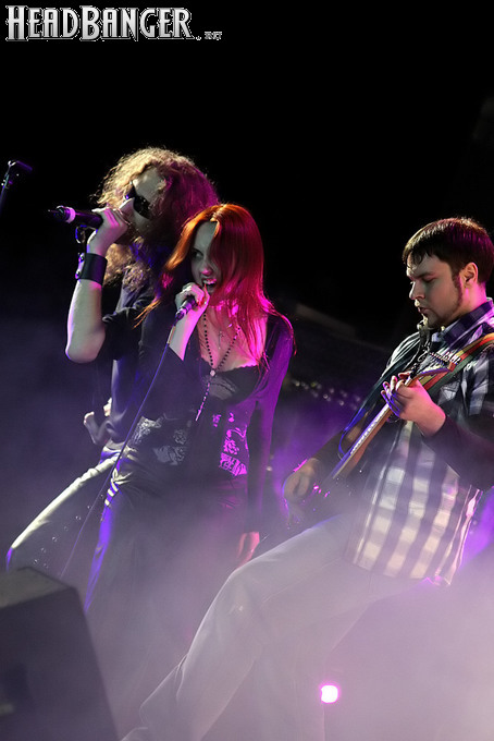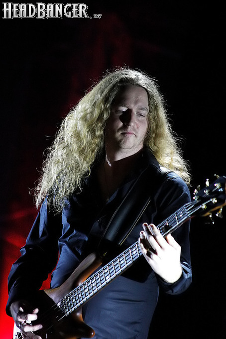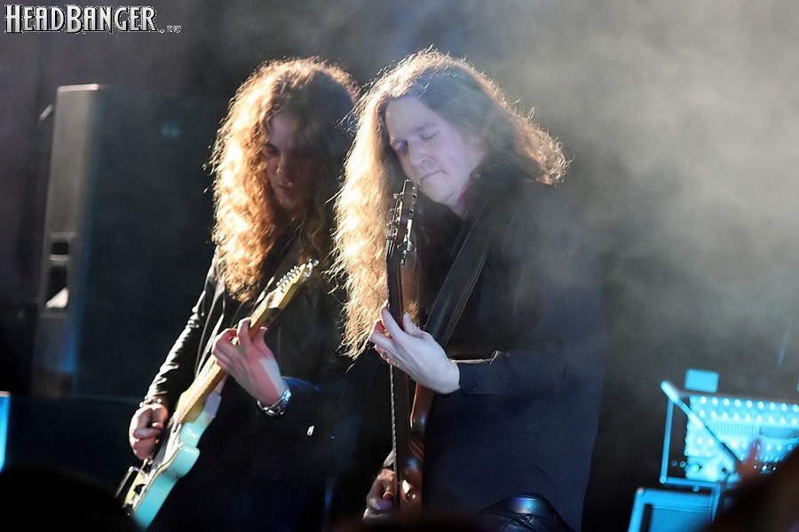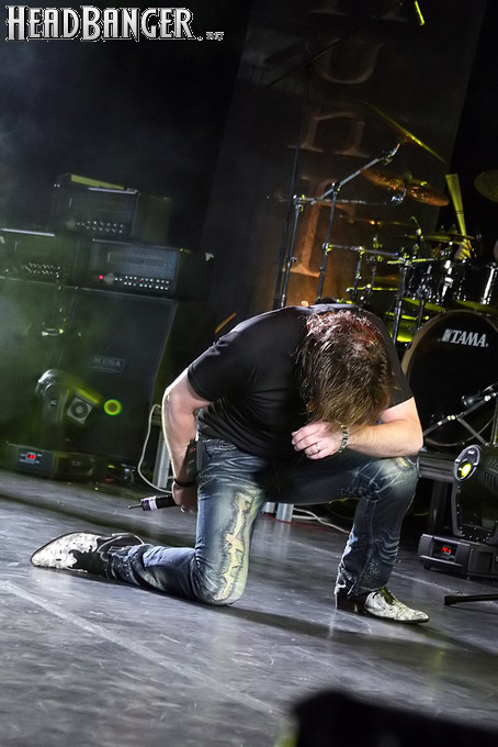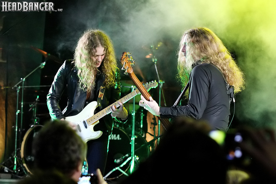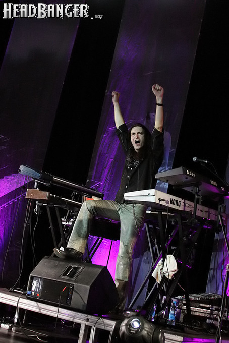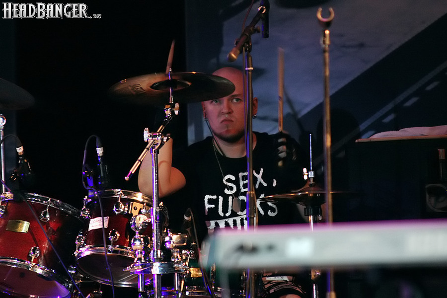 Но до появления главных героев вечера было ещё выступление разогрева, роль которых, так же как и в 2012 году, выполняли их московские «коллеги по цеху» Crimson Cry. О том, что музыку ребята играют похожую, свидетельствовало забавное удвоение оборудования на сцене. Барабанная установка большая, и рядом – ещё одна поменьше. Пульт для клавишника большой, «взрослый», и рядом – ещё один, поменьше. Кто играл на моём синтезаторе и… гм, отвлеклись. В общем, как и следовало ожидать, общей каши москвичи не испортили. И музыка, и вокал, - всё на месте. Только держатся ребята на сцене несколько скованно (и нет, я говорю не про Алексея Крючкова), особенно это было заметно в сравнении с датскими профессионалами, но это и единственный минус. Скажем так, после завершения их сета возникло желание найти где-то альбом группы и послушать песни без участия бьющих по уху колонок. И думаю, не у меня одной.