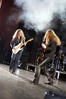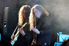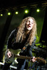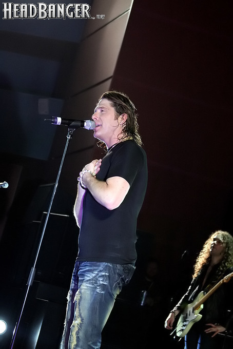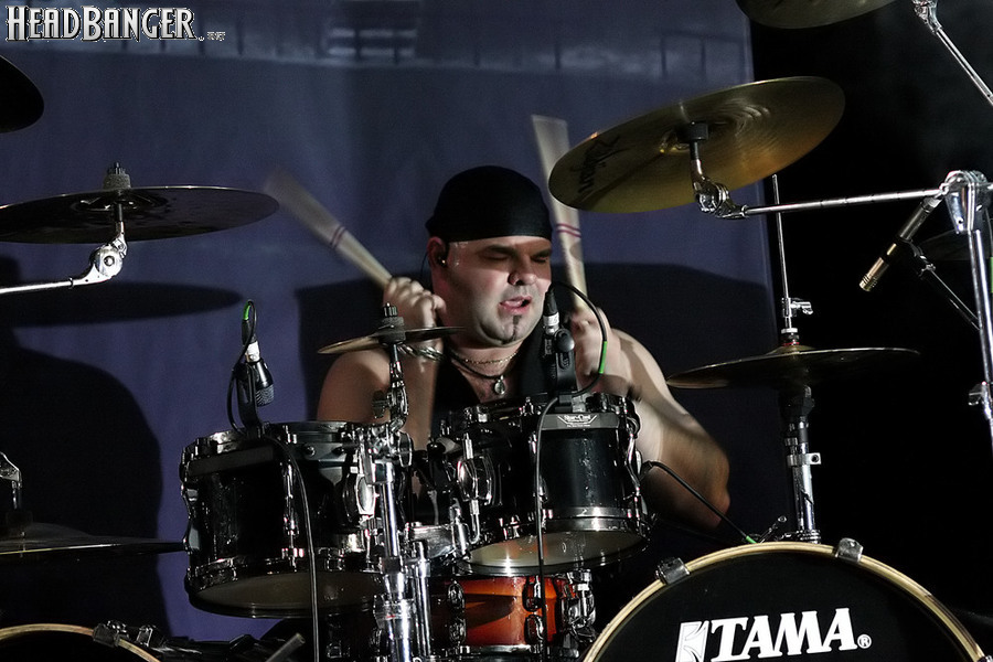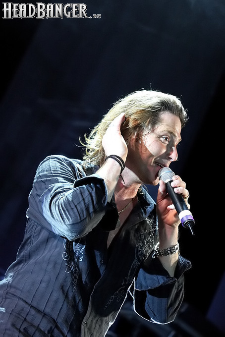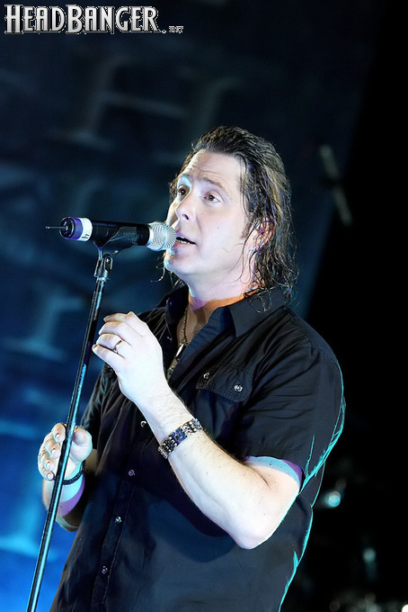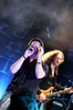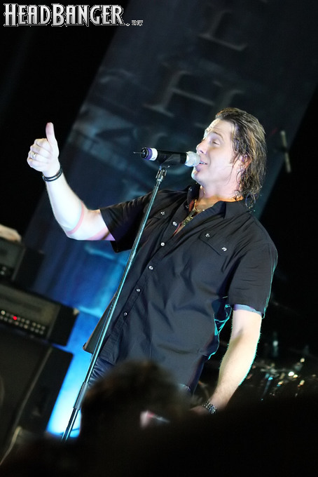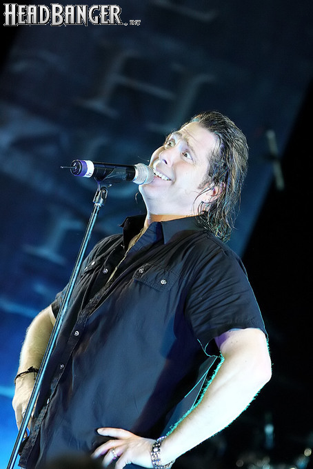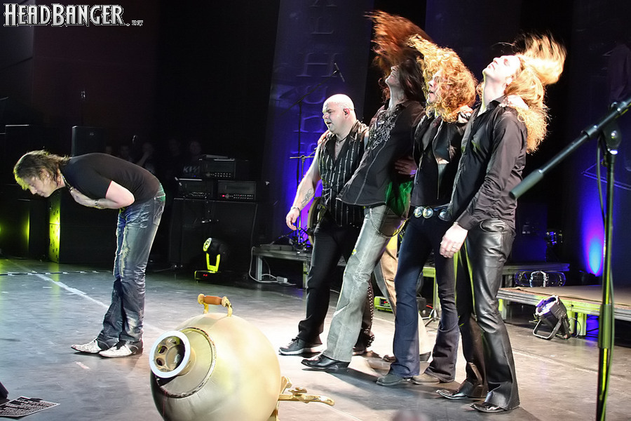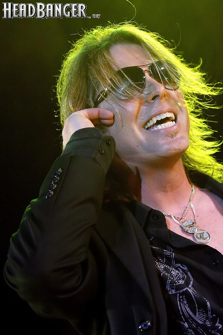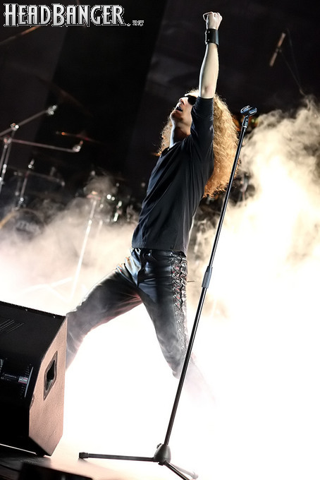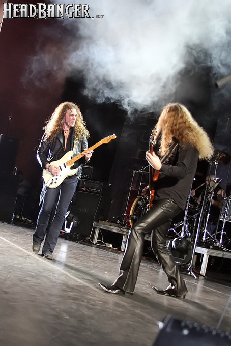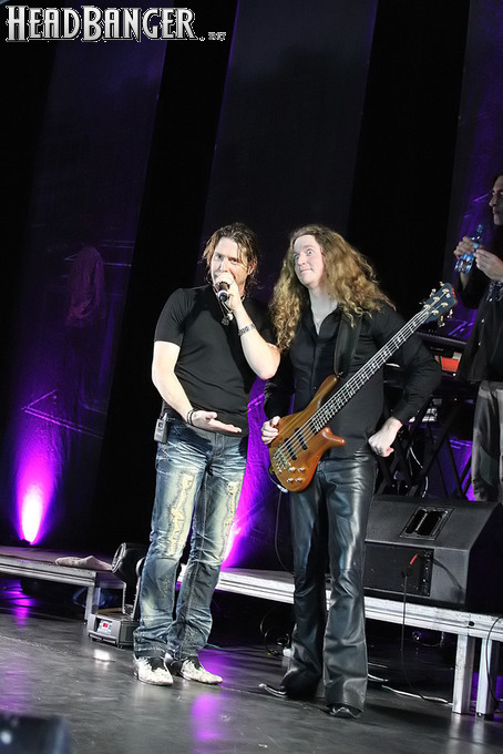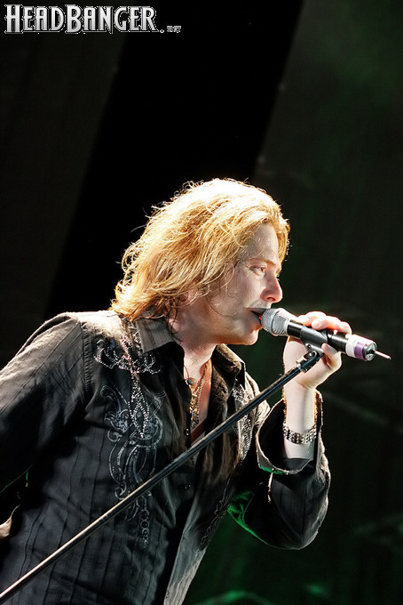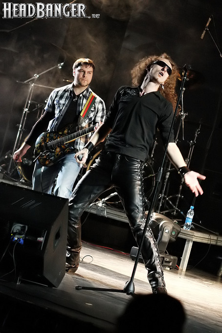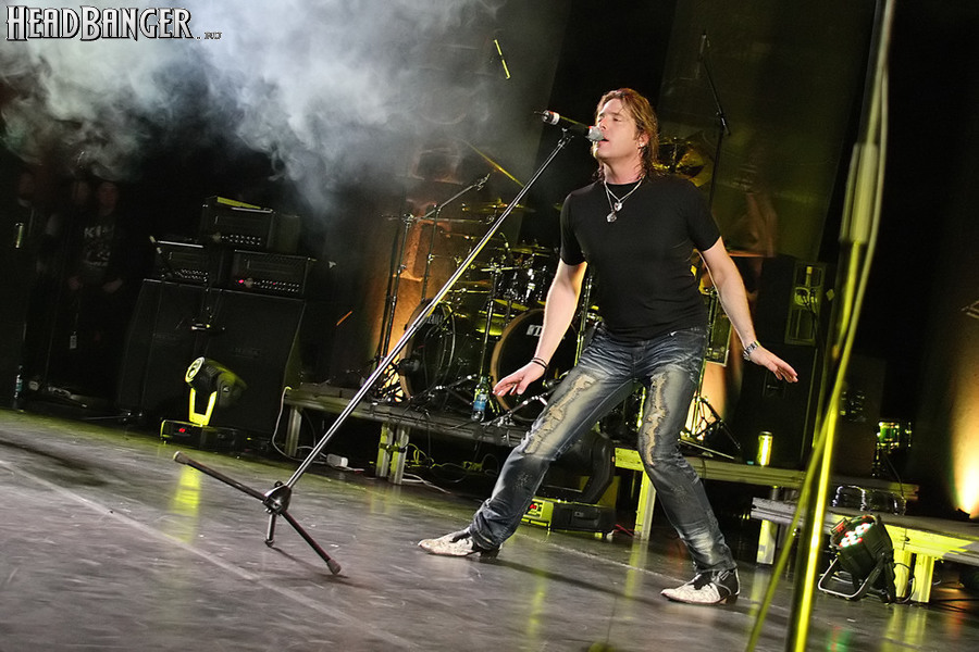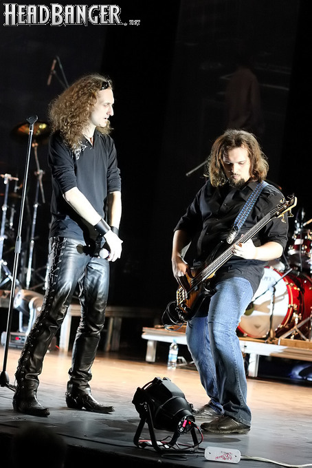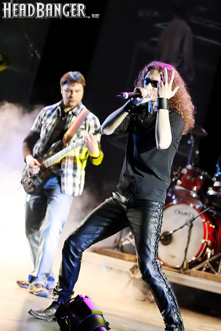 Ну а потом началось шоу, про которое, как я уже сказала, что-то писать просто бессмысленно. Ну кто, скажите мне, не знает, что новый альбом у Royal Hunt “A Life To Die For” получился просто великолепным, и песни с него вживую звучат ничуть не хуже, чем на диске? Или, может быть, кто-то сомневается в том, что проникновенный вокал Ди Си Купера способен заставить даже камни сопереживать несчастному «клоуну в зеркале»? А мастерство инструменталистов уж точно давно себя зарекомендовало. Кстати, нам очень повезло: буквально за неделю до московского концерта к Royal Hunt присоединился их нынешний басист, Андреас Пассмарк, способный привести всю женскую часть аудитории в экстаз одним только взмахом шикарных золотых волос. Во время европейской части турне с датчанами играл их бывший коллега, Пер Шеландер, а это, девушки меня поймут, совсем другое дело. Ну а избавить концерт от лишнего пафоса (при такой-то эпической музыке!) помогали постоянные шуточки Алана Соренсена, или «монстра за барабанами», как его представил публике Ди Си.