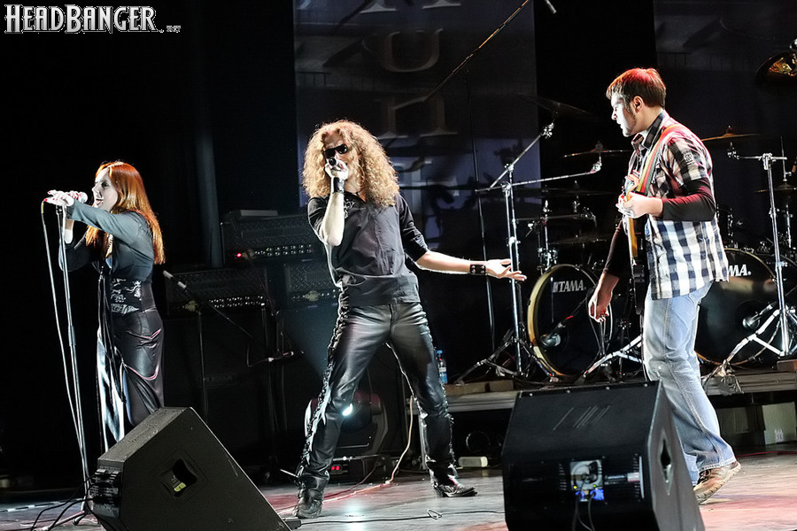 По словам Андрея, главным критерием выбора зала для концерта стал хороший звук. Ну что ж, побывав там, я могу теперь позволить себе с ним не согласиться. Да, звук был хорош, но только в центральной части зала. Если вам выпало сидеть ближе к какой-то из стен (а именно туда и посадили прессу), то соответствующие колонки с такой силой били в соответствующее ухо, что слушать музыку было практически невозможно. А тем более, получать от этого какое-то удовольствие. Сейчас - а я пишу эти строки на следующий день после шоу - у меня до сих пор заложено левое ухо, хотя сидела я не под самой колонкой, а вовсе даже в девятом ряду. Правда, при желании это можно было исправить, потому что, стоило Royal Hunt оказаться на сцене, фанаты стайками потянулись поближе к кумирам, заняв в итоге всё пространство вдоль сцены, да и часть проходов между рядами тоже. Так что в центральной части зала образовалось достаточно свободных мест, чтобы можно было пересесть и не мучить больше слух. Может быть, именно на это и рассчитывал Андрей?