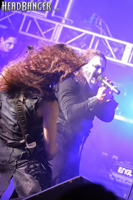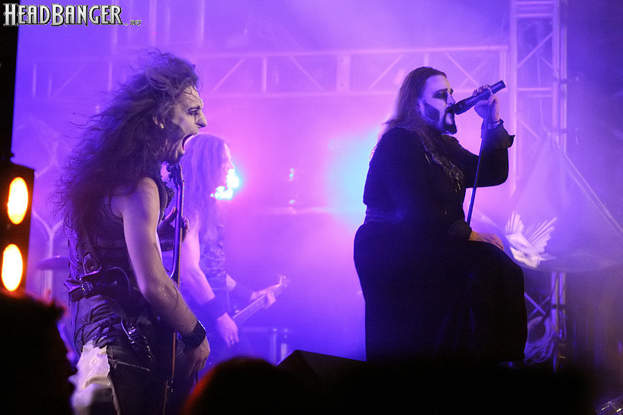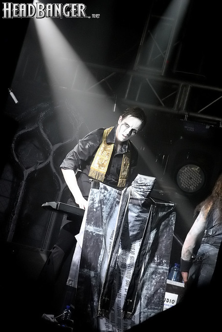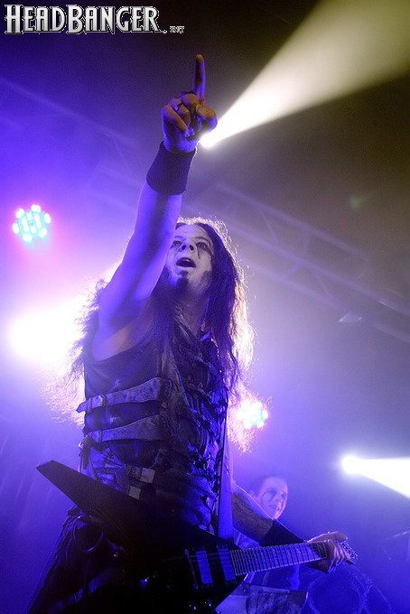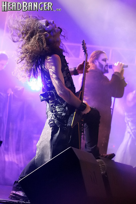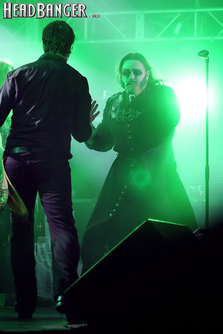 За прошедшие два года пятерка металлических оборотней не растратила ни грамма задора, и накал их сценического рок-н-ролльного безумия не снизился ни на градус. Вот перед вами здоровяк Руул, в процессе игры которого возникают серьезные опасения о сохранности барабанной установки. Здесь же и патлатые гитаристы, наперегонки бегающие по сцене и устраивающие одну шестиструнную дуэль за другой. Никуда не делись и двое главных «зажигателей» группы – фронтмен Аттила и пианист Фальк. Первый даже с больным горлом (снова-здорово) умудрялся выдавать партии, практически не уступающие студийным, а второй в те моменты, когда партии псевдо-органа стихали, постоянно выбегал на переднюю линию, чуть ли не прыгал в недра партера, всячески зажигал толпу и вступал в перебранки с вокалистом. Кульминацией их перформанса стало хоровое соревнование между двумя половинами зала перед “Werewolves Of Armenia”. Спору нет, фишка довольно заезженная и не раз использованная различными командами. Однако в качестве приема раззадоривания публики этот номер всегда работает идеально. В тот вечер победу в «конкурсе перекрикивания» одержала половина под управлением дирижера Аттилы. Фальку же оставалось лишь раздосадовано махнуть рукой в сторону фэнов, которые его подвели – днем ранее на питерском концерте пальма первенства отошла к нему.
