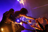Главные герои вечера материализовались среди клубов дыма в районе девяти часов. И с первых же секунд своего выступления буквально взорвали на сцене «Вольты» музыкальный динамит. Первые три мощнейших боевика – “Sanctified With Dynamite”, “Prayer In The Dark” и “Amen & Attack” – практически идеальный выбор для старта шоу: они не только заводят толпу, но и раззадоривают музыкантов. Один вопрос, однако, не давал многим покоя – куда же делся Мэтью Грейвульф? Новостью о том, что группа приехала в Россию без своего духовного лидера, и меня ввела в замешательство, но я узнал ее чуть раньше – от кливишника Фалька в интервью перед концертом. Оказывается, Мэтт готовился в скором времени стать папой. Что ж, более чем уважительная причина пропустить гастроли, тем более, что лид-гитаристу нашли прекрасную замену в виде участника Mystic Prophecy Маркуса Пола. Взяв за основу своего имижда грим и костюм Мэтью, новичок Марк был практически не отличим от своего альтер-эго, так что далеко не все посетители «Вольты» заметили подмену.