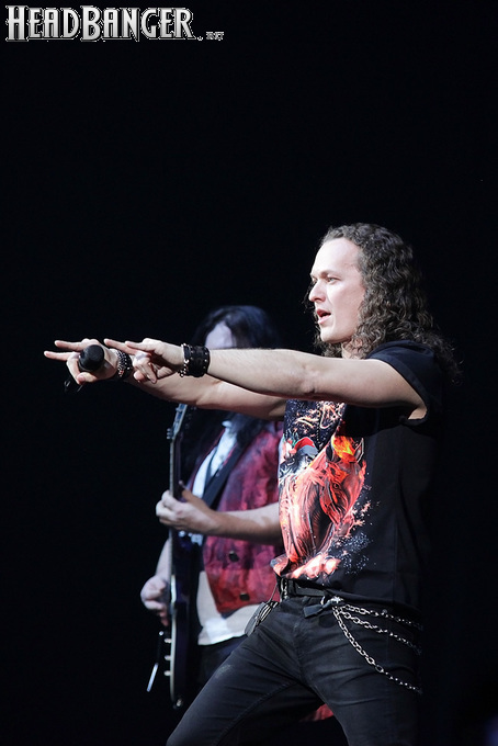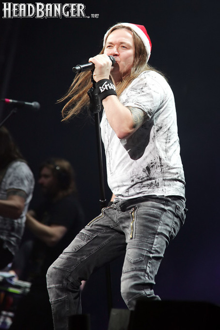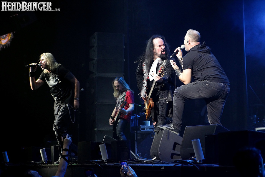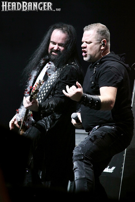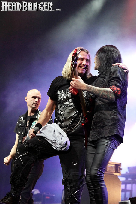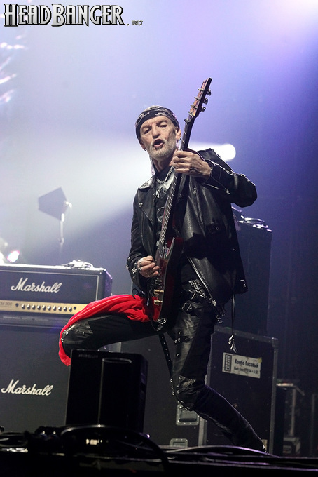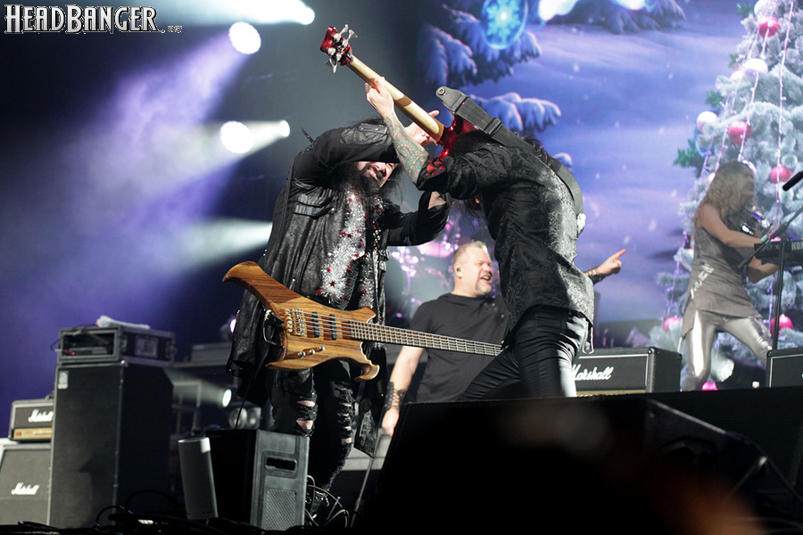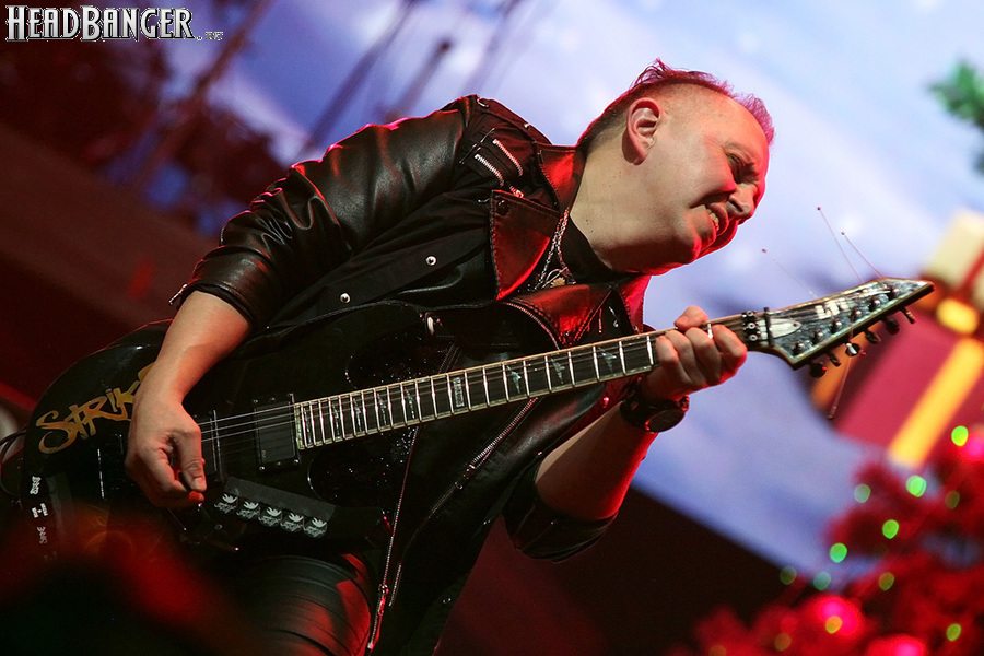 Воля и Разум в прошлом году закрывали «Метал-елку», а в этом году их поставили на 18:30, хотя так, возможно, даже лучше – как раз к этому времени в «Стадиум» подтянулся основной массив зрителей, а те, кто пришли раньше, еще не успели устать и наесться впечатлениями. Неудивительно, что 40-минутный сет мега-энергичных музыкантов был принят на ура, хотя они и оказались самым тяжелыми во всем лайн-апе. В отличие от Черного Обелиска, сделавшего упор на новый материал, Воля и Разум в этот раз играли только классику Мастера и Арии – «Берегись», «Палачи», «Игры не для нас» и т.д. Эти песни в их исполнении я слышал за последние пару лет неоднократно, и хуже они от этого нисколько не становится, хотя что-нибудь свеженькое типа «Гори» в программе совершенно не помешало бы. Но группа представляла вышедший как раз в этот день альбом, целиком состоящий как раз из песен 1986-1987 годов, так что их присутствие именно в таком количестве вполне оправдано. Единственное, что немного резануло слух – вокал Михаила Серышева в балладе «Без тебя»: для его голоса этот коронный кипеловский номер все же подходит не слишком. Возможно, стоило бы исполнить его в дуэтной версии, как на недавнем сингле, а раз уж Валерий «в гости» ни к кому принципиально не ходит, позвать на его место кого-нибудь из фронтменов других выступающих групп. Но в этот вечер – может быть, вследствие жесткого графика – джемов и фитов не было почти ни у кого.