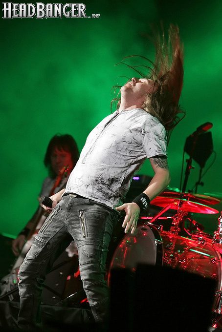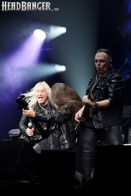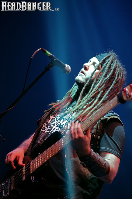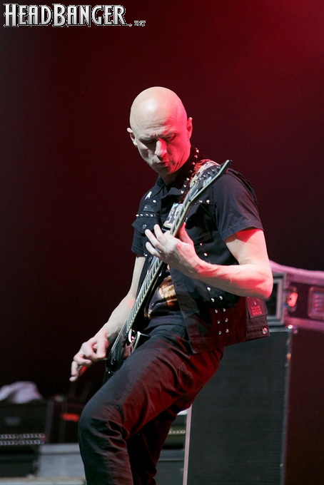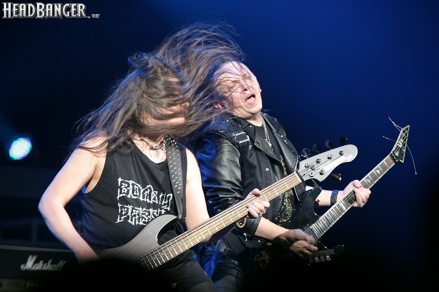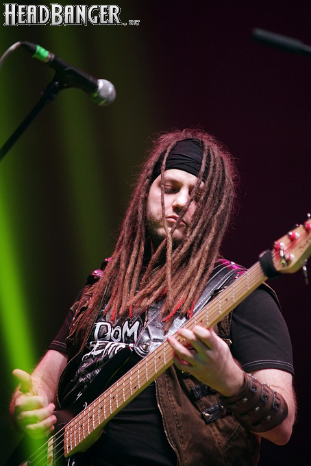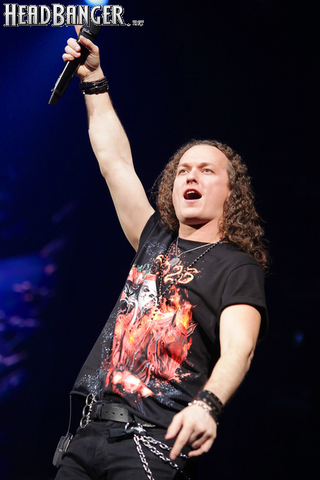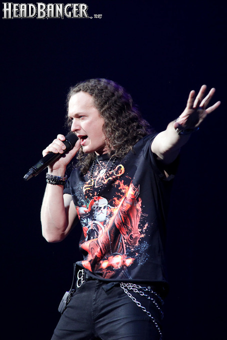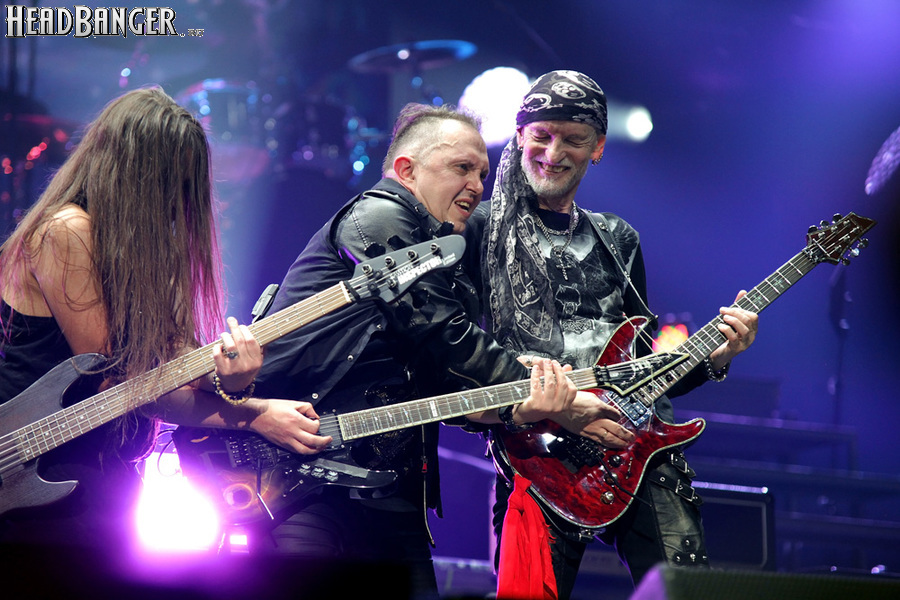 Воля и Разум в прошлом году закрывали «Метал-елку», а в этом году их поставили на 18:30, хотя так, возможно, даже лучше – как раз к этому времени в «Стадиум» подтянулся основной массив зрителей, а те, кто пришли раньше, еще не успели устать и наесться впечатлениями. Неудивительно, что 40-минутный сет мега-энергичных музыкантов был принят на ура, хотя они и оказались самым тяжелыми во всем лайн-апе. В отличие от Черного Обелиска, сделавшего упор на новый материал, Воля и Разум в этот раз играли только классику Мастера и Арии – «Берегись», «Палачи», «Игры не для нас» и т.д. Эти песни в их исполнении я слышал за последние пару лет неоднократно, и хуже они от этого нисколько не становится, хотя что-нибудь свеженькое типа «Гори» в программе совершенно не помешало бы. Но группа представляла вышедший как раз в этот день альбом, целиком состоящий как раз из песен 1986-1987 годов, так что их присутствие именно в таком количестве вполне оправдано. Единственное, что немного резануло слух – вокал Михаила Серышева в балладе «Без тебя»: для его голоса этот коронный кипеловский номер все же подходит не слишком. Возможно, стоило бы исполнить его в дуэтной версии, как на недавнем сингле, а раз уж Валерий «в гости» ни к кому принципиально не ходит, позвать на его место кого-нибудь из фронтменов других выступающих групп. Но в этот вечер – может быть, вследствие жесткого графика – джемов и фитов не было почти ни у кого.