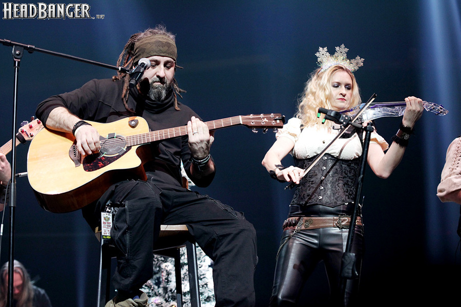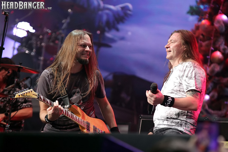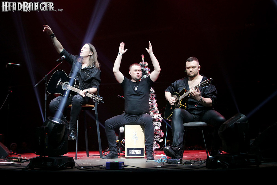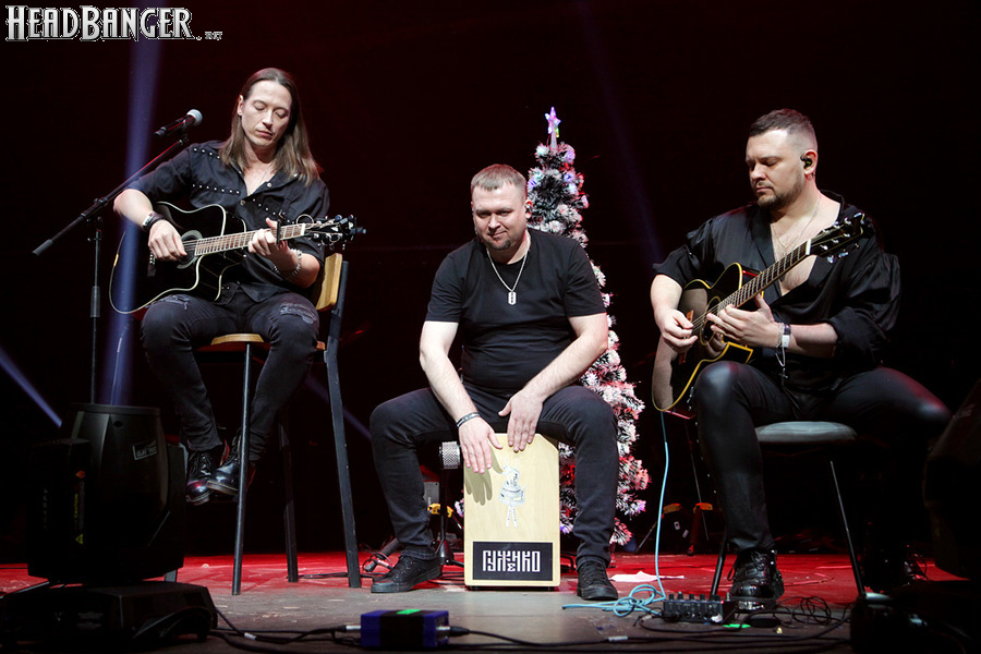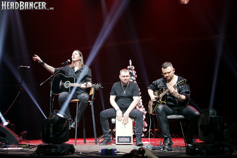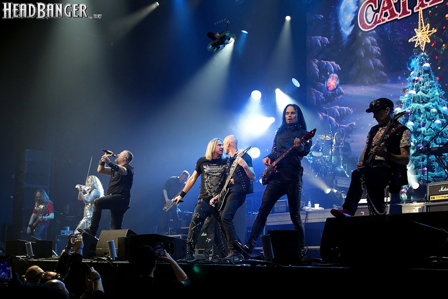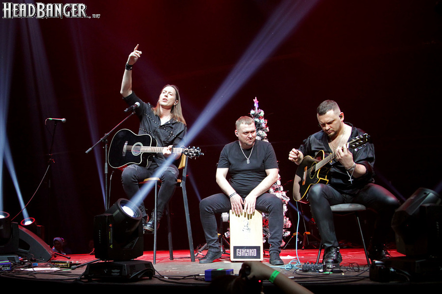 Catharsis для «Метал-Елки» - абсолютная константа, и представить себе мероприятие без их участия просто невозможно. И точно так же невозможно представить себе выступление Catharsis на «Метал-елке» без новой порции приколов. Не всегда они получаются удачными («Девчонка-девчоночка» Жени Белоусова, исполненная в 2021 году практически один-в-один с оригиналом – яркий тому пример), но по крайней мере группа старается не повторяться. Вот и в этот раз вслед за тройным залпом из авторских «катаровских» боевиков («Кто ты», «Я вернусь» и «Сердце мира») музыканты реанимировали «Траву у дома», вызвав у зрителей из категории «за 40» острейший приступ ностальгии по детству, «развитому застою» и пику славы группы Земляне, а из категории «за 30» - по самым первым «метал-елкам», где этот кавер активно звучал. Но самое интересное еще только предстояло – оставшись на сцене в компании Андрея Ищенко, Джефф пригласил присоединиться к ним гитариста Алексея Страйка из Воли и Разума, басиста Леонида Максимова из Raindigo и… девушку, которую он представил как латиноамериканскую певицу и киноактрису Наталью Орейро. Кто скрывался за этим образом, официально так и не было объявлено, но большинство опрошенных мной свидетелей и причастных сходится во мнении, что это скрипачка Catharsis Ольга Петрова. А исполненная песня действительно была из репертуара Натальи Орейро – “Cambio Dolor” на стыке тысячелетий прогремела по всему миру как заглавная тема телесериала «Дикий ангел».