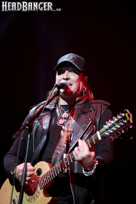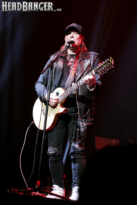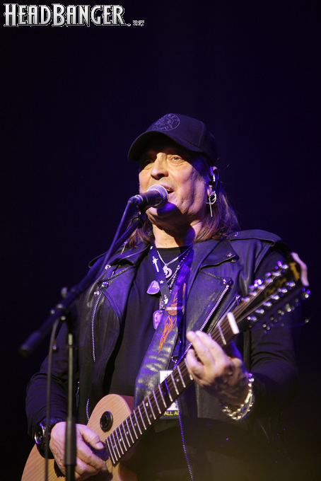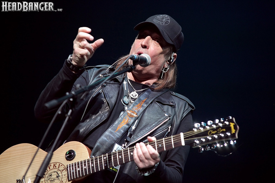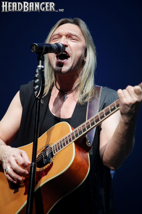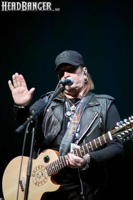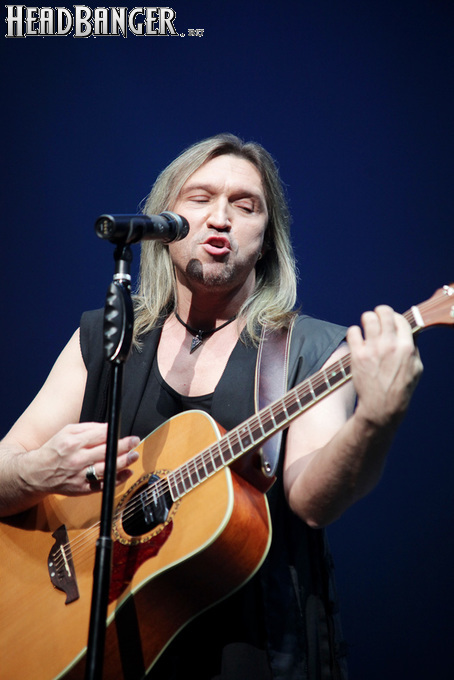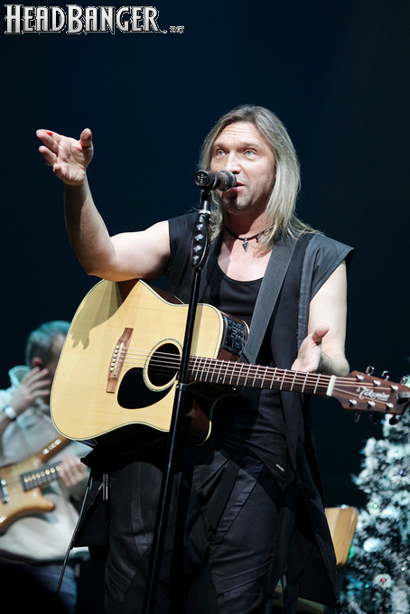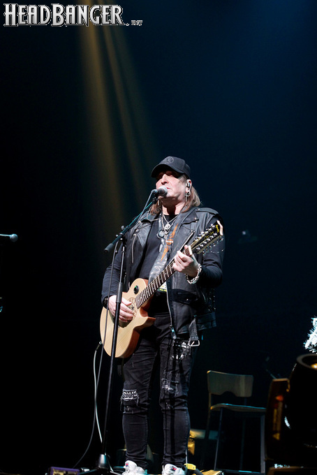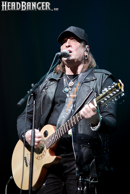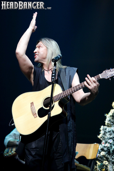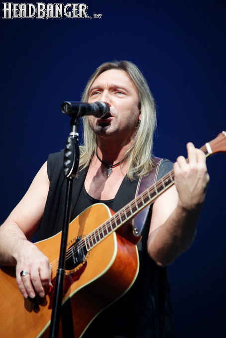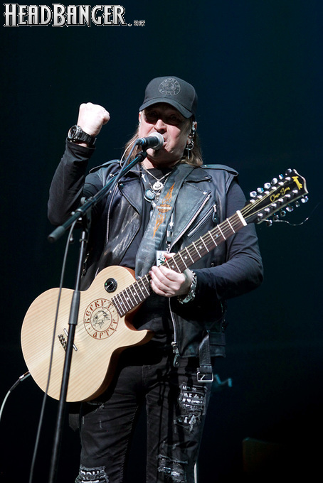 Артур начал с песни «Колокол», которую он в свое время записал с группой Автограф для альбома «Каменный край» (1989). В акустике этот тревожный номер ничуть не растерял своей атмосферы, да и вообще очень приятно, что тот период своей дискографии, далеко не лучшим образом знакомый нынешнему массовому слушателю, Беркут не забывает. Далее прозвучали две песни с его сольных релизов середины 2010-х – лирическая «Ты не один» и развеселая «Пират». Однако самую восторженную реакцию ожидаемо получила легендарная «Там высоко» - на мой взгляд, лучшая из спетых Артуром в Арии песен – которую, кстати, было очень любопытно послушать в сопровождении акустической гитары, а не привычного синтезатора. А окончательно растопила мое сердце финальная песня сета - «Замыкая круг». В конце 80-х эту совместную работу Криса Кельми и Маргариты Пушкиной знала вся страна, и в моем и более старших поколениях ее до сих пор помнит практически любой, даже не интересующийся роком человек. Артур, который был в 1987 году одним из вокалистов в самой популярной, «коллективной» версии этой песни, взял ее в свой концертный репертуар уже достаточно давно – и, на мой взгляд, правильно сделал, ведь после смерти Криса этот гимн рокерского единения стало попросту некому исполнять. А самое главное, в его прочтении «Замыкая круг» звучит естественно и аутентично, в отличие, на мой взгляд, от кипеловского репертуара, который Беркуту приходилось на протяжении девяти лет петь в Арии.