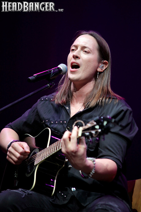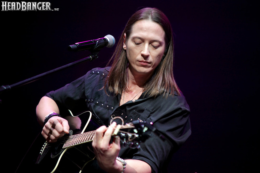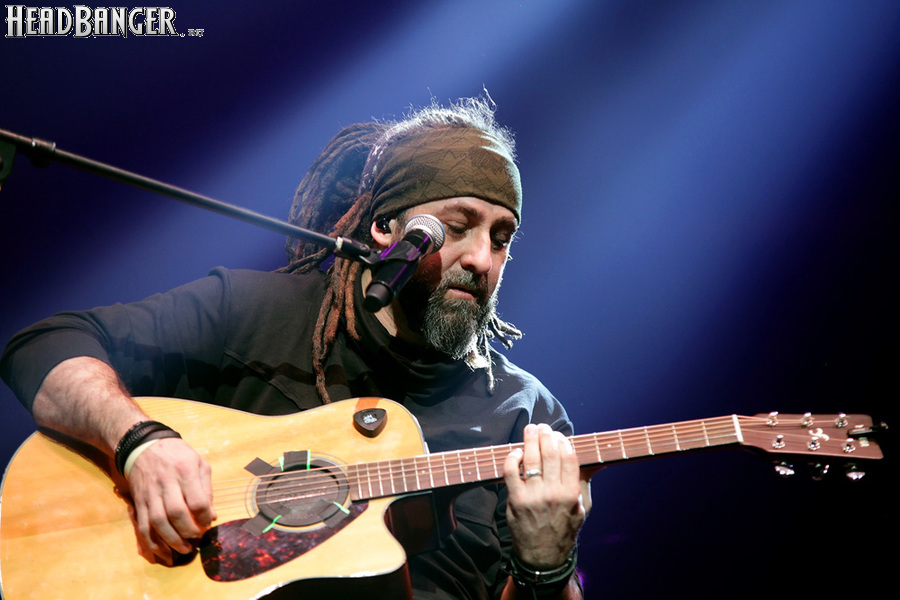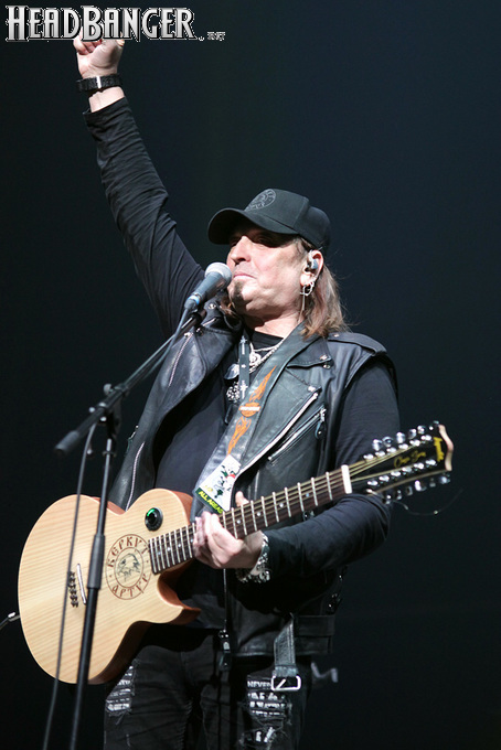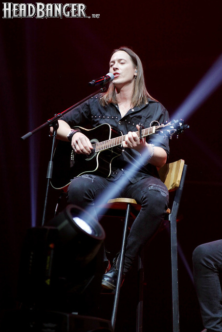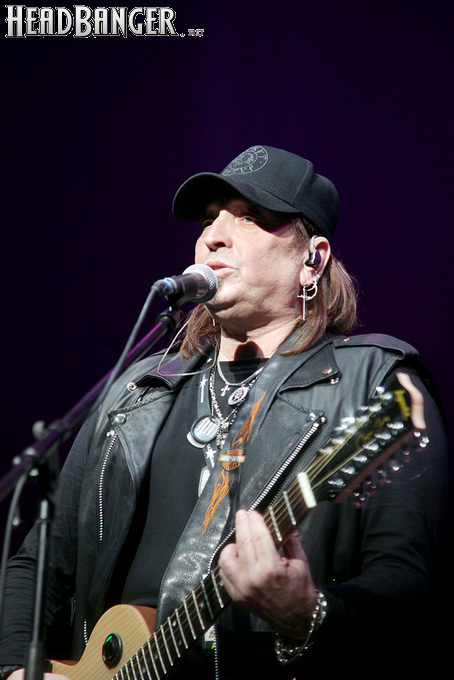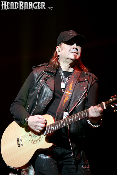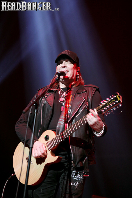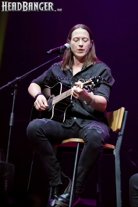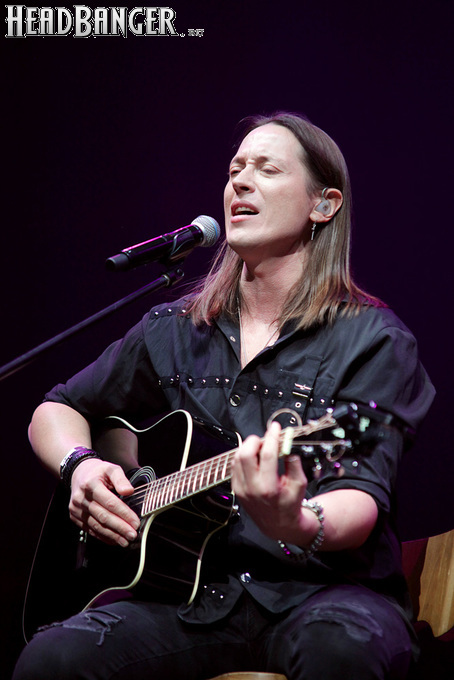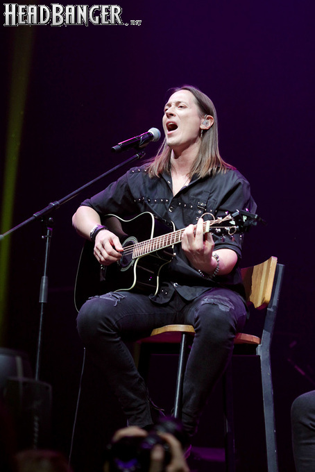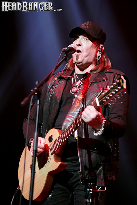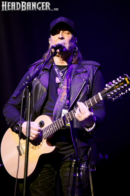 Артур начал с песни «Колокол», которую он в свое время записал с группой Автограф для альбома «Каменный край» (1989). В акустике этот тревожный номер ничуть не растерял своей атмосферы, да и вообще очень приятно, что тот период своей дискографии, далеко не лучшим образом знакомый нынешнему массовому слушателю, Беркут не забывает. Далее прозвучали две песни с его сольных релизов середины 2010-х – лирическая «Ты не один» и развеселая «Пират». Однако самую восторженную реакцию ожидаемо получила легендарная «Там высоко» - на мой взгляд, лучшая из спетых Артуром в Арии песен – которую, кстати, было очень любопытно послушать в сопровождении акустической гитары, а не привычного синтезатора. А окончательно растопила мое сердце финальная песня сета - «Замыкая круг». В конце 80-х эту совместную работу Криса Кельми и Маргариты Пушкиной знала вся страна, и в моем и более старших поколениях ее до сих пор помнит практически любой, даже не интересующийся роком человек. Артур, который был в 1987 году одним из вокалистов в самой популярной, «коллективной» версии этой песни, взял ее в свой концертный репертуар уже достаточно давно – и, на мой взгляд, правильно сделал, ведь после смерти Криса этот гимн рокерского единения стало попросту некому исполнять. А самое главное, в его прочтении «Замыкая круг» звучит естественно и аутентично, в отличие, на мой взгляд, от кипеловского репертуара, который Беркуту приходилось на протяжении девяти лет петь в Арии.