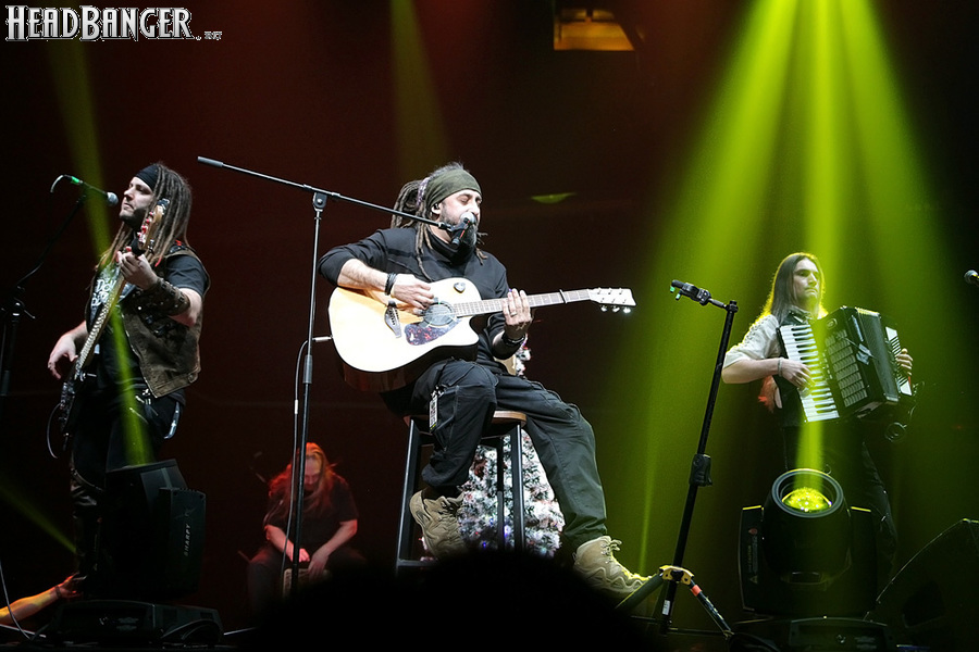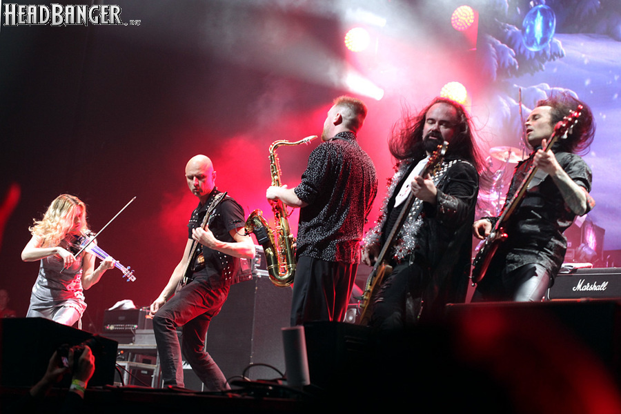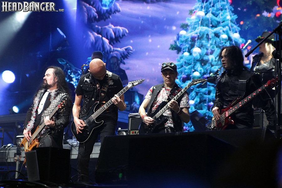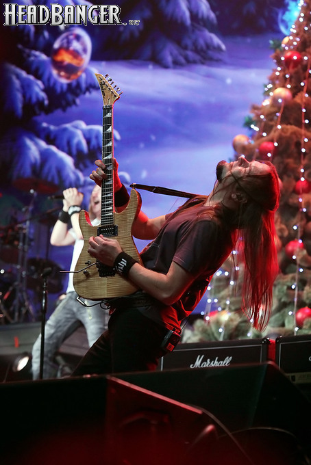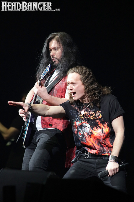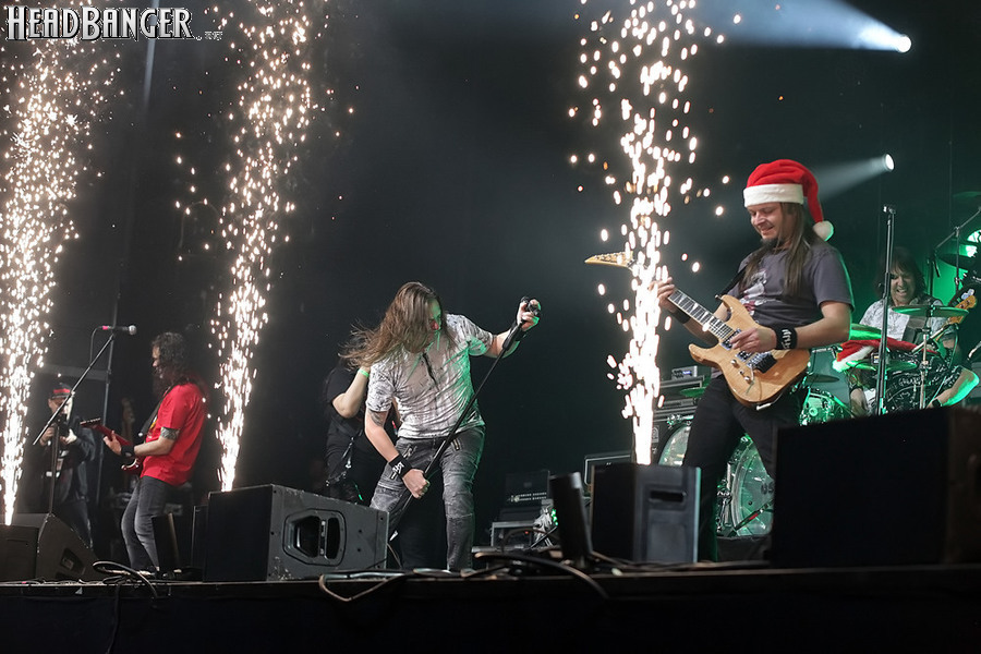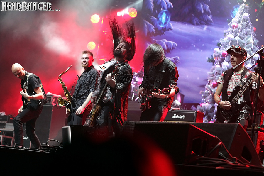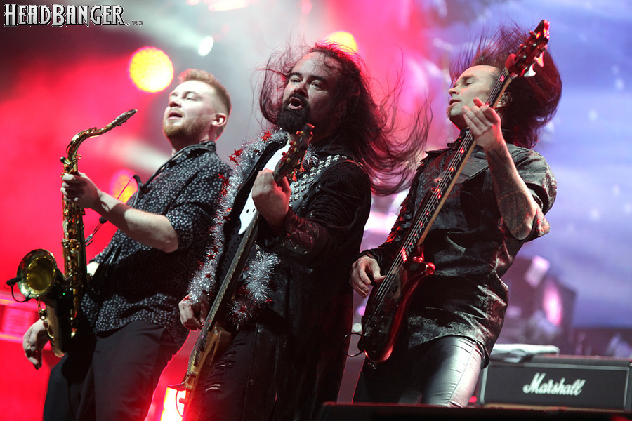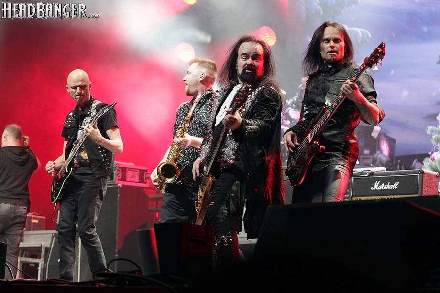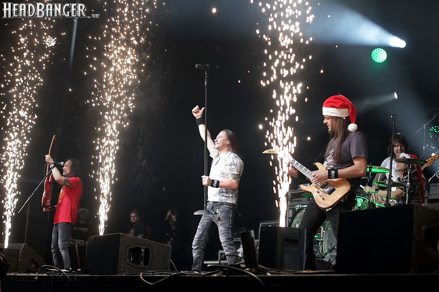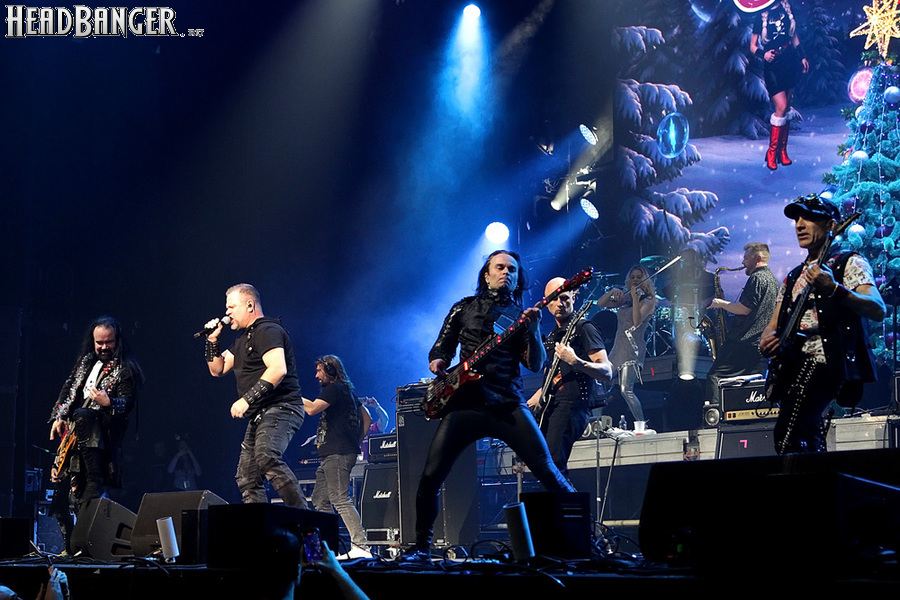 Открытие дверей в «Стадиуме» было назначено на 16:00, а выход на сцену первой группы – на 16:30, однако с учетом того, что 1 января – один из тех дней в году, который хочется хотя бы начать без спешки, оба эти дедлайна оказались нам не по силам. В итоге из выступления Amalgama нам удалось послушать только пару финальных песен, а посмотреть – всего одну. Впрочем, этого оказалось достаточно, чтобы сделать некоторые выводы. В последний раз Amalgama попадали в мое поле зрения лет 10 назад - они тогда частенько играли на разогревах у отечественных и иностранных звезд и неизменно производили плачевное впечатление, в первую очередь из-за крайне неприятного вокала Влада Ивойлова. Тем страннее мне было читать новости из стана Amalgama, которые начали поступать в пост-пандемическое время – то они едут в европейский тур на разогреве у Акселя Руди Пелля, то Влад устраивается фронтменом в симфонический трибьют… Scorpions! Конечно, судить об актуальном материале группы по паре песен мне трудно, но по крайней мере я могу сказать с уверенностью, что Влад как певец значительно вырос за эти годы, а его коллеги – видимо, благодаря активным гастролям с западными профи – превратились в весьма колоритный концертный состав. Сейчас их можно смотреть и слушать без какого-либо дискомфорта, и это, принимая во внимание «точку отсчета», очень впечатляющее достижение.