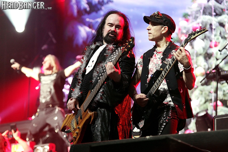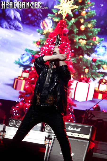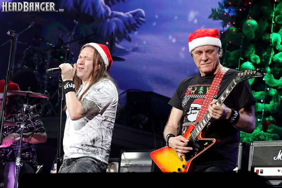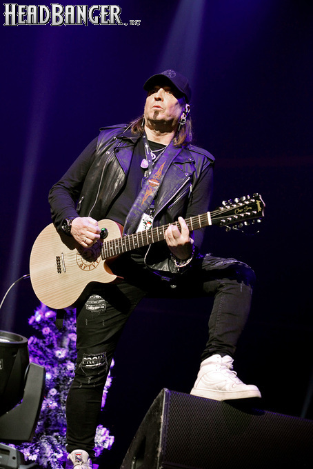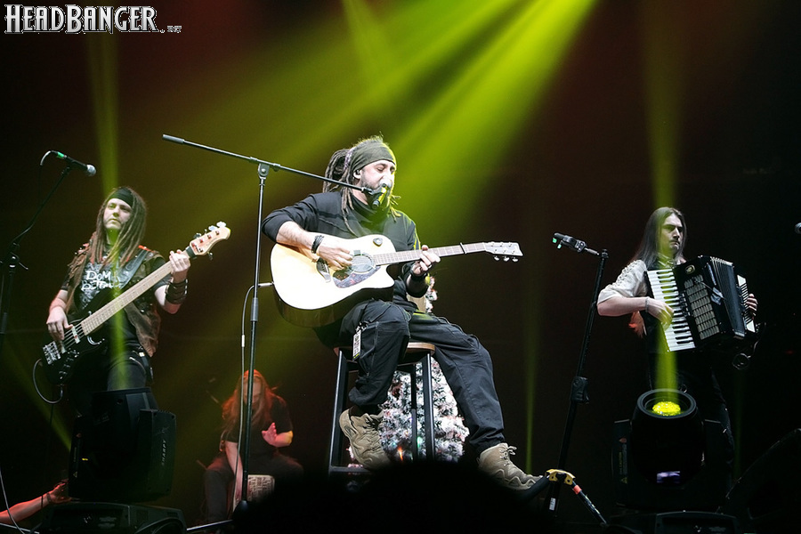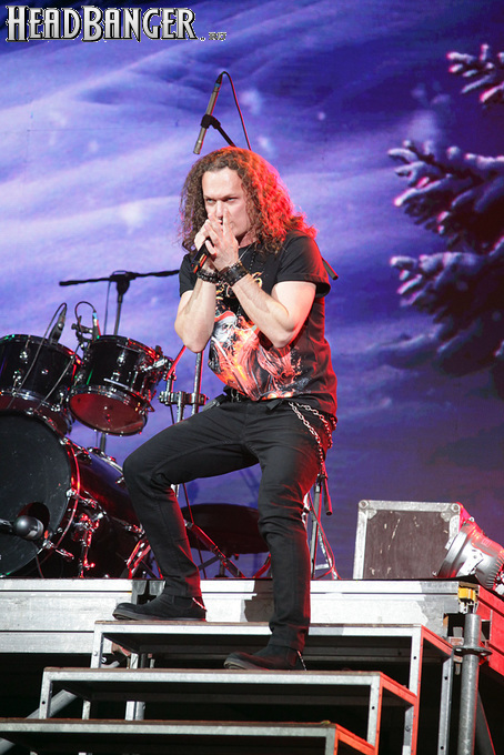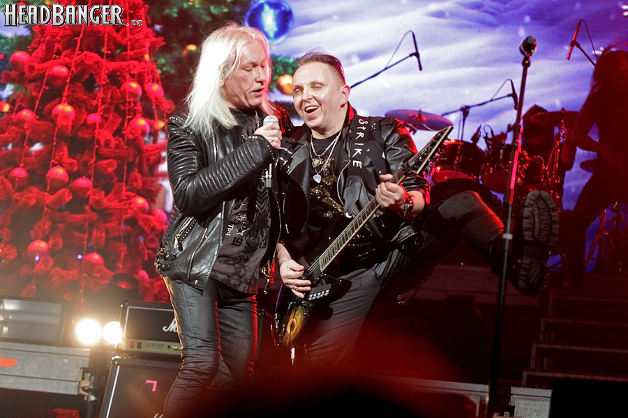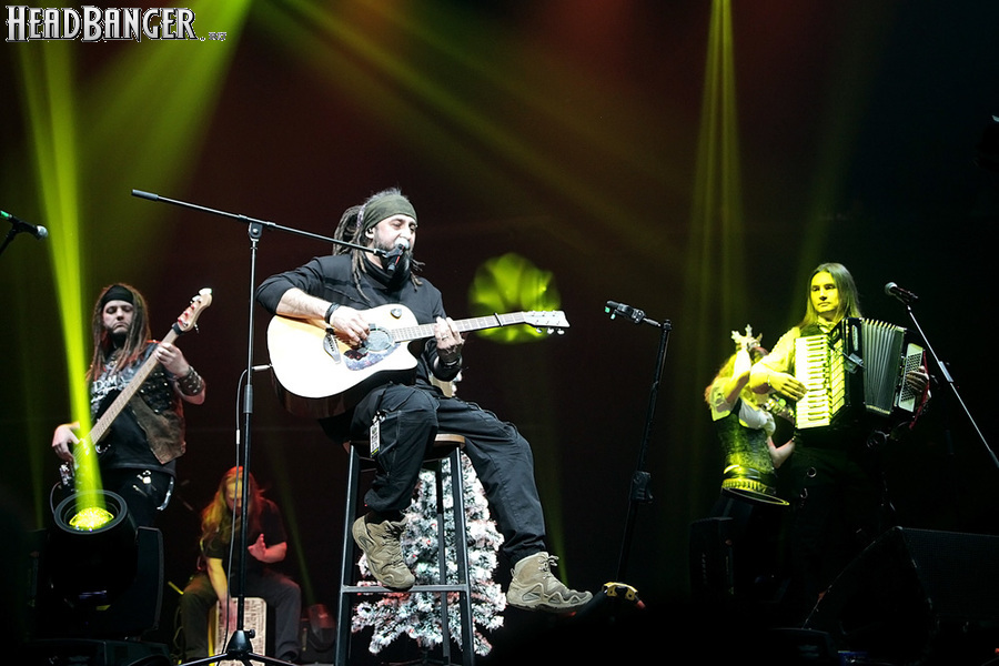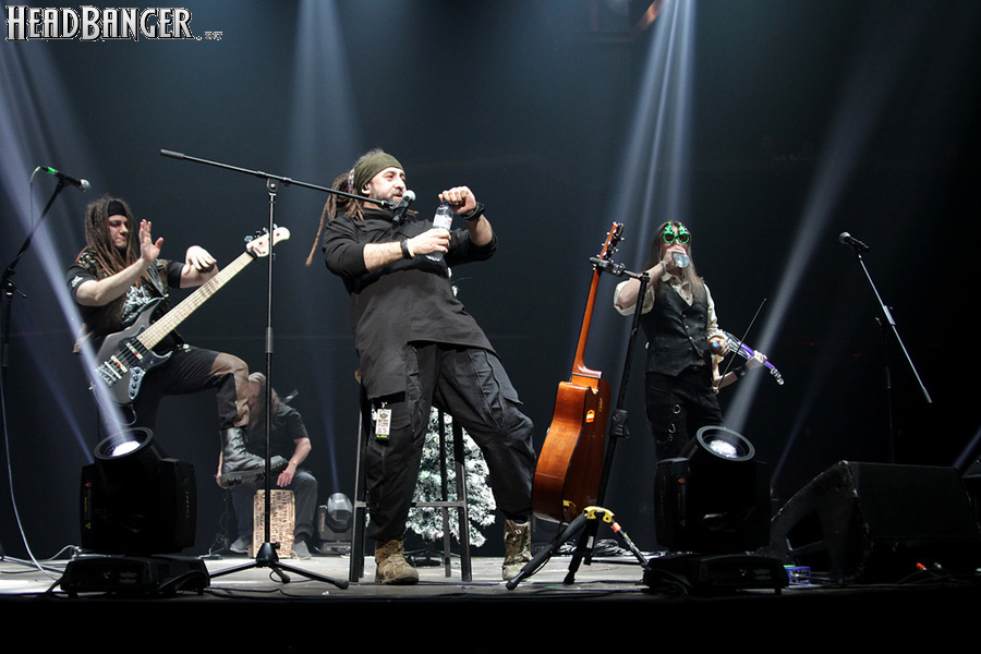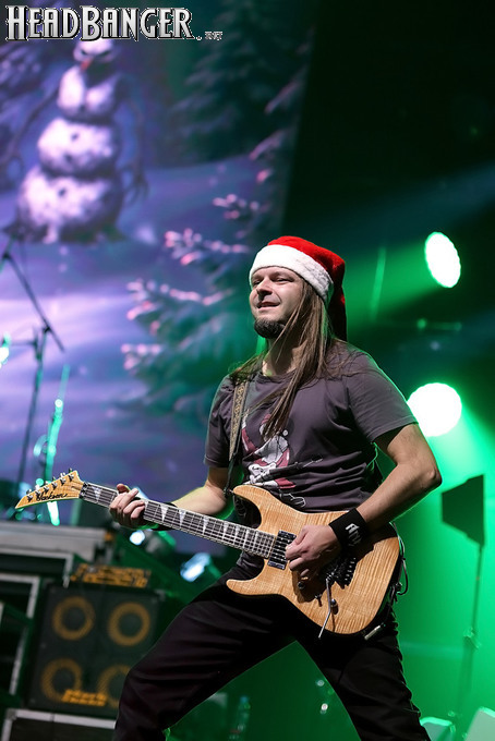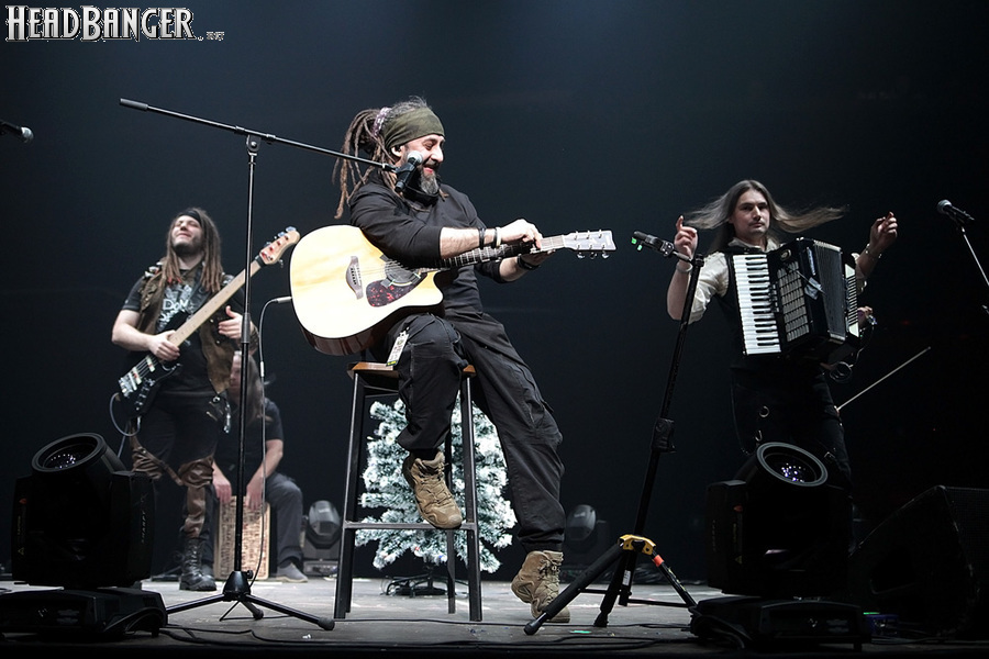 Открытие дверей в «Стадиуме» было назначено на 16:00, а выход на сцену первой группы – на 16:30, однако с учетом того, что 1 января – один из тех дней в году, который хочется хотя бы начать без спешки, оба эти дедлайна оказались нам не по силам. В итоге из выступления Amalgama нам удалось послушать только пару финальных песен, а посмотреть – всего одну. Впрочем, этого оказалось достаточно, чтобы сделать некоторые выводы. В последний раз Amalgama попадали в мое поле зрения лет 10 назад - они тогда частенько играли на разогревах у отечественных и иностранных звезд и неизменно производили плачевное впечатление, в первую очередь из-за крайне неприятного вокала Влада Ивойлова. Тем страннее мне было читать новости из стана Amalgama, которые начали поступать в пост-пандемическое время – то они едут в европейский тур на разогреве у Акселя Руди Пелля, то Влад устраивается фронтменом в симфонический трибьют… Scorpions! Конечно, судить об актуальном материале группы по паре песен мне трудно, но по крайней мере я могу сказать с уверенностью, что Влад как певец значительно вырос за эти годы, а его коллеги – видимо, благодаря активным гастролям с западными профи – превратились в весьма колоритный концертный состав. Сейчас их можно смотреть и слушать без какого-либо дискомфорта, и это, принимая во внимание «точку отсчета», очень впечатляющее достижение.