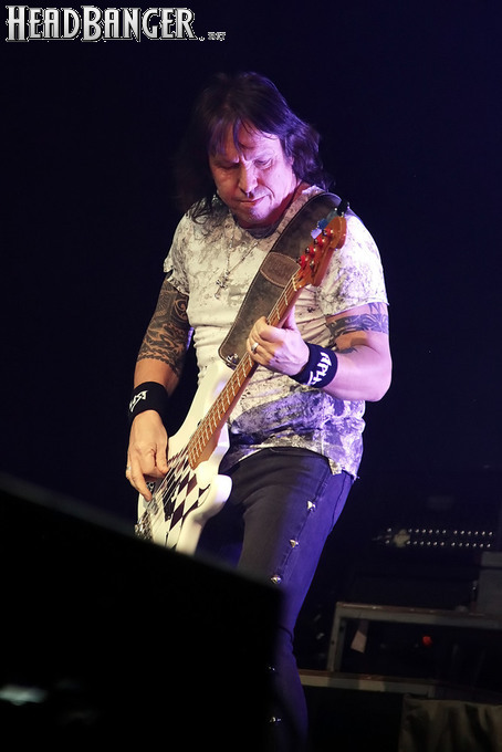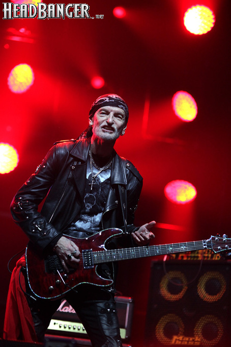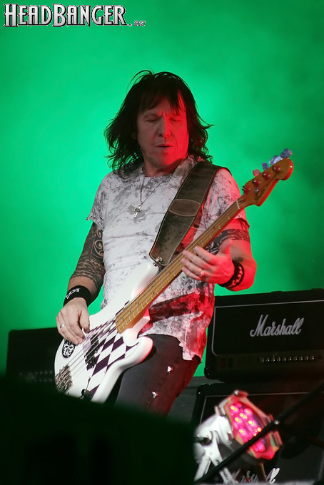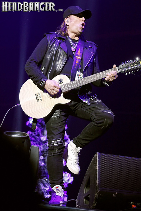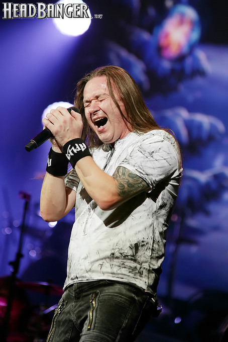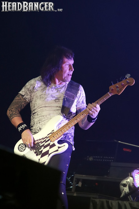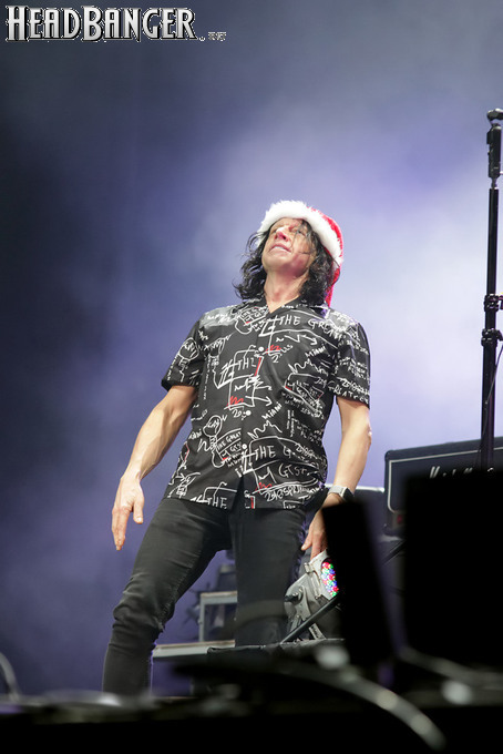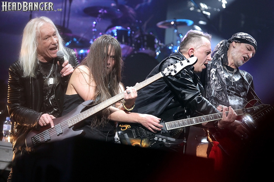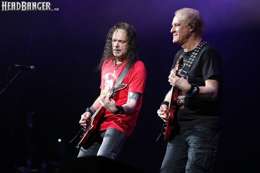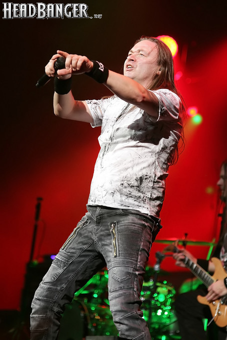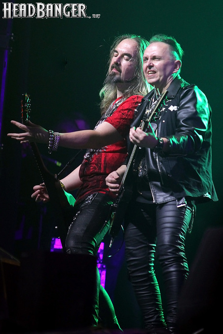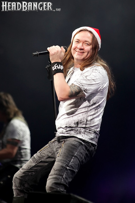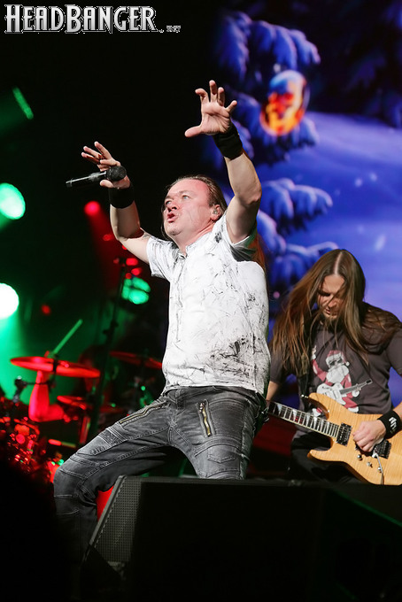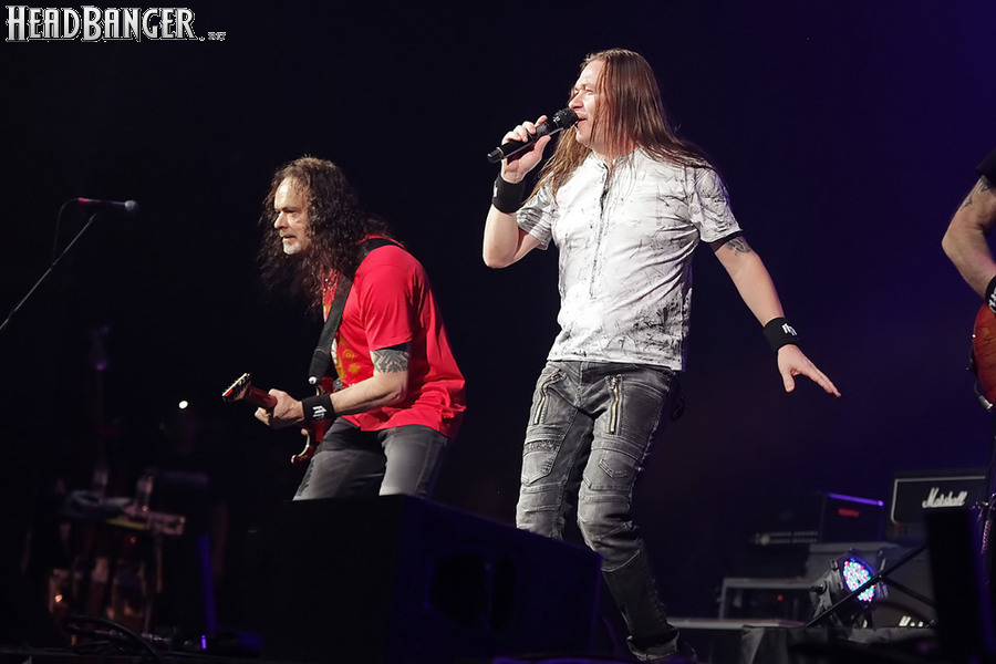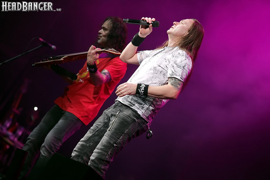 Открытие дверей в «Стадиуме» было назначено на 16:00, а выход на сцену первой группы – на 16:30, однако с учетом того, что 1 января – один из тех дней в году, который хочется хотя бы начать без спешки, оба эти дедлайна оказались нам не по силам. В итоге из выступления Amalgama нам удалось послушать только пару финальных песен, а посмотреть – всего одну. Впрочем, этого оказалось достаточно, чтобы сделать некоторые выводы. В последний раз Amalgama попадали в мое поле зрения лет 10 назад - они тогда частенько играли на разогревах у отечественных и иностранных звезд и неизменно производили плачевное впечатление, в первую очередь из-за крайне неприятного вокала Влада Ивойлова. Тем страннее мне было читать новости из стана Amalgama, которые начали поступать в пост-пандемическое время – то они едут в европейский тур на разогреве у Акселя Руди Пелля, то Влад устраивается фронтменом в симфонический трибьют… Scorpions! Конечно, судить об актуальном материале группы по паре песен мне трудно, но по крайней мере я могу сказать с уверенностью, что Влад как певец значительно вырос за эти годы, а его коллеги – видимо, благодаря активным гастролям с западными профи – превратились в весьма колоритный концертный состав. Сейчас их можно смотреть и слушать без какого-либо дискомфорта, и это, принимая во внимание «точку отсчета», очень впечатляющее достижение.