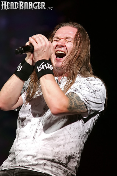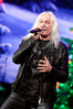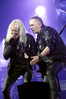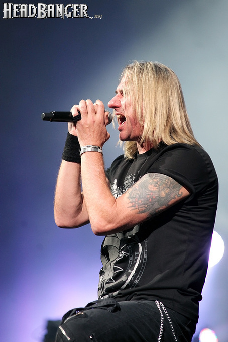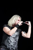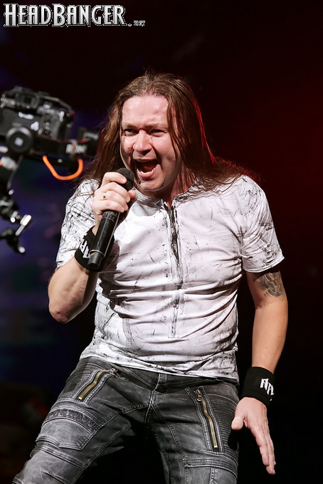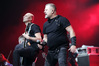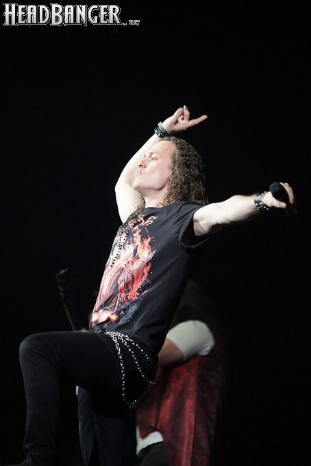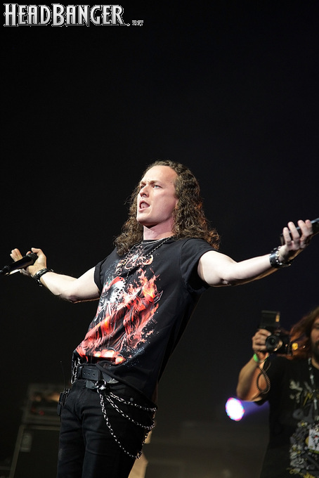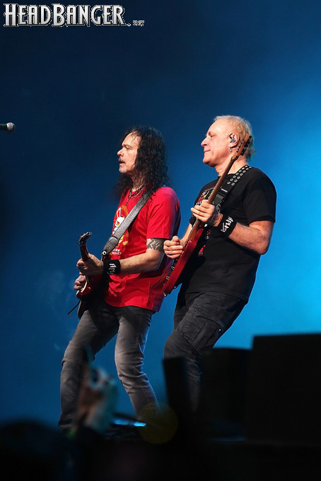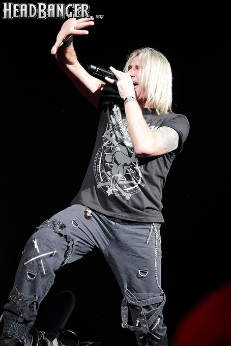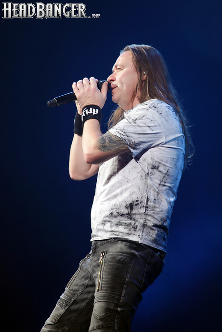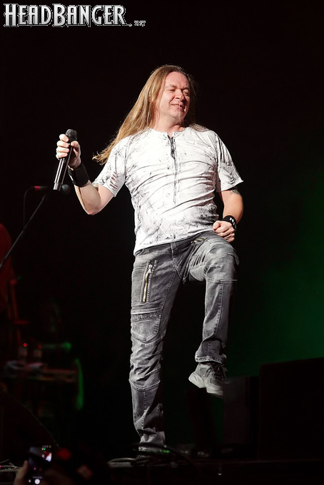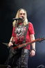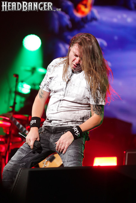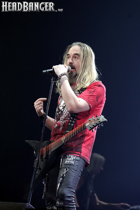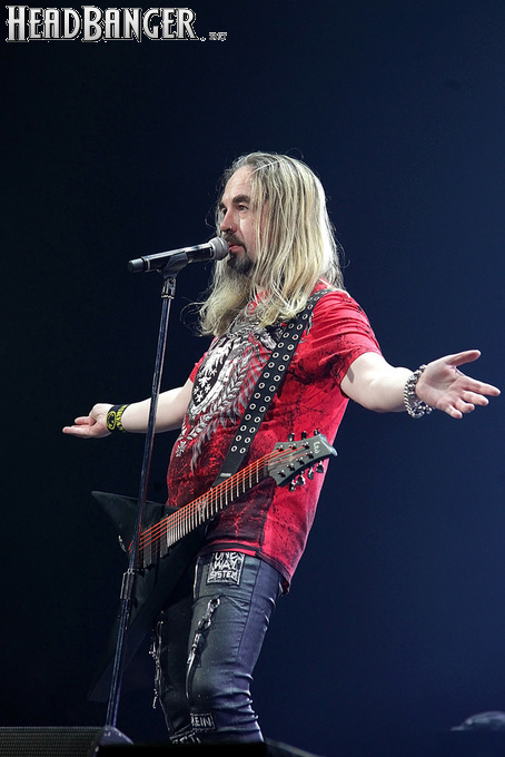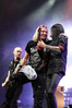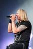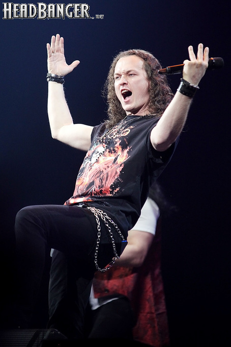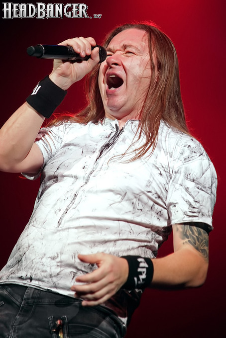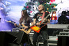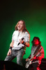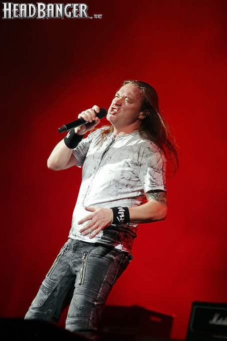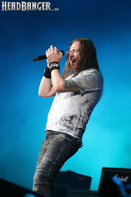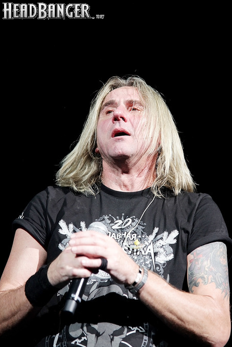 А тем временем как раз Ария и готовилась к выходу на основную сцену. К выступлению хэдлайнеров ее основательно переоборудовали – если все предыдущие группы играли на двух барабанных установках, возведенных на третьем ярусе, то для Максима Удалова выставили собственные барабаны, занявшие место по центру нижнего яруса. Не знаю, насколько эти перестановки соотносились с качеством звука, но по сравнению с Catharsis и Эпидемией оно улучшилось прямо-таки радикально и приближалось к идеалу. Годы гастролей по российским городам и весям закалили музыкантов, и первоклассное шоу они выдают, даже если из порталов доносится сущий «адъ и Израиль», но слушать их нетленные хиты с саундом ведущих европейских фестивалей – особое удовольствие.
