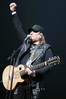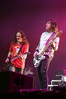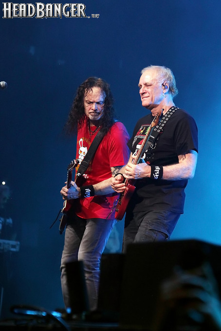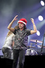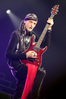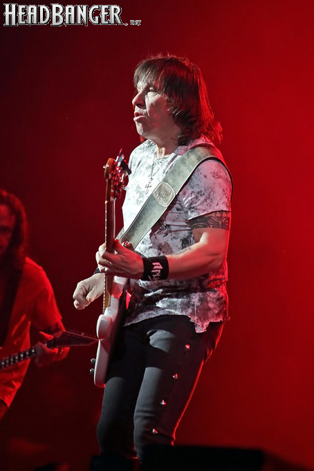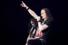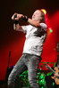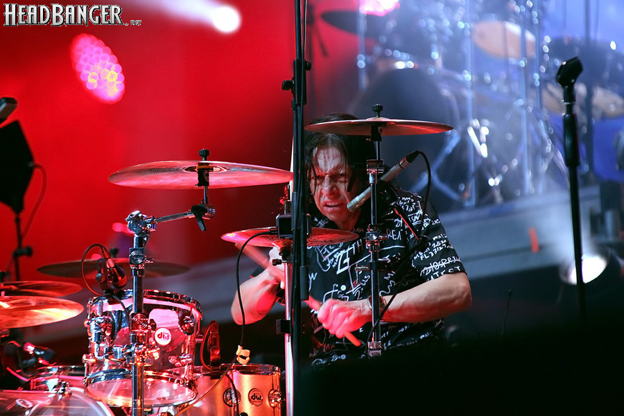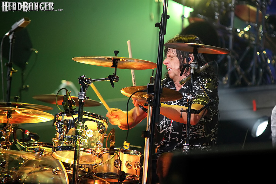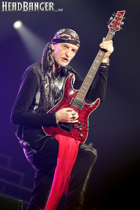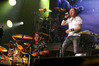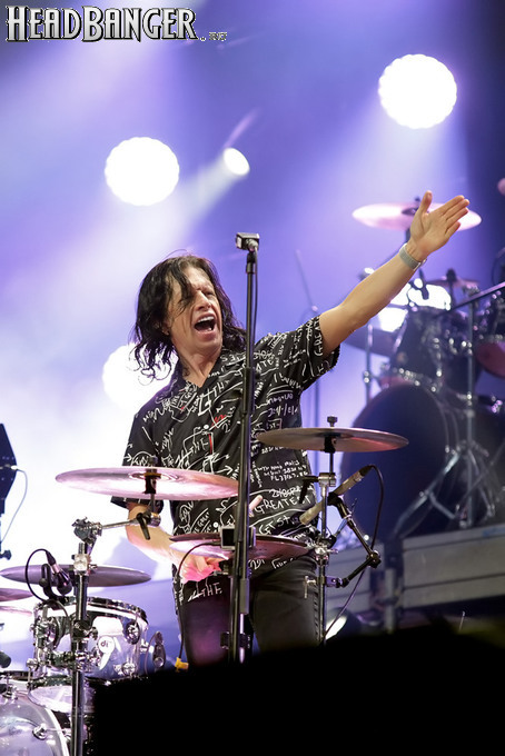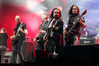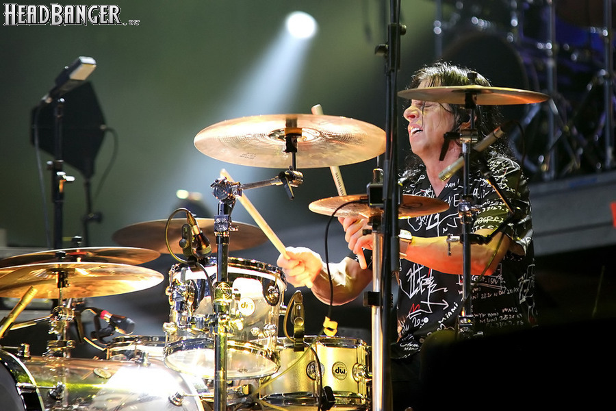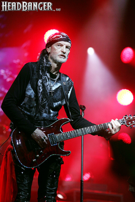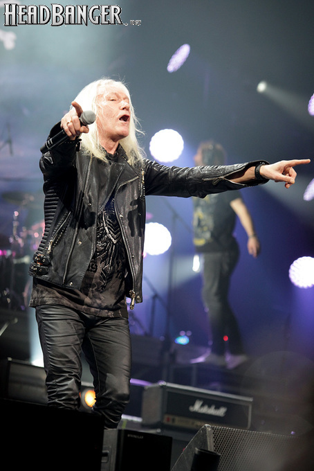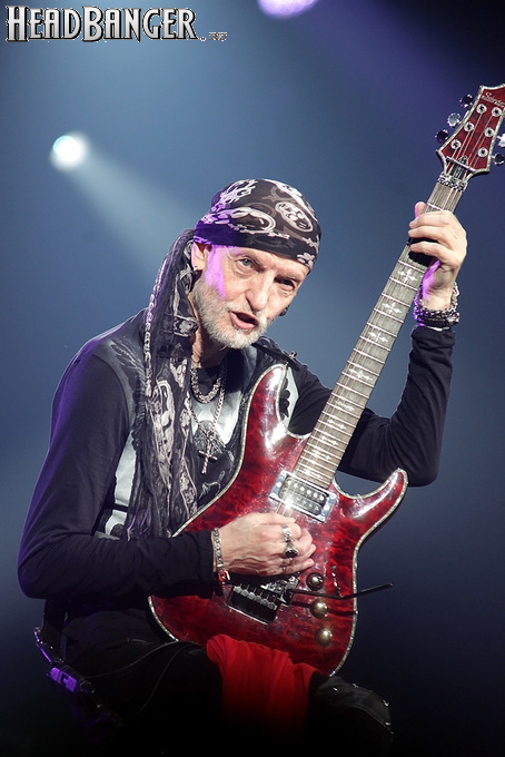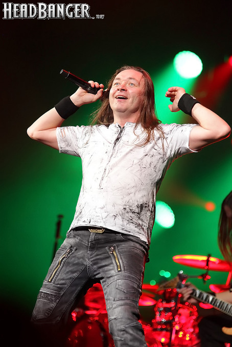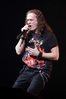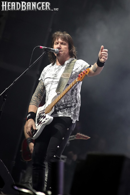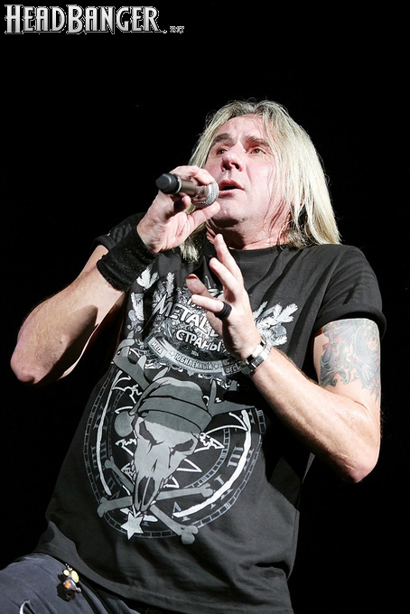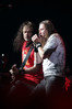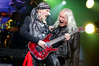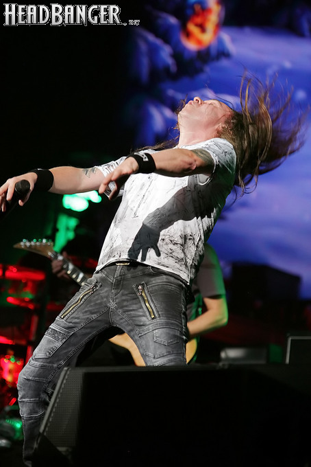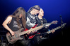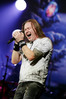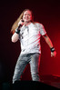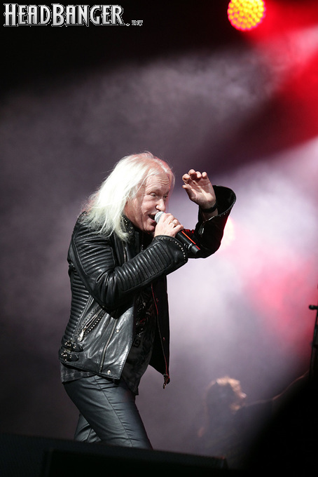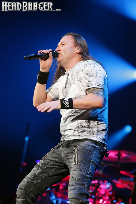 А тем временем как раз Ария и готовилась к выходу на основную сцену. К выступлению хэдлайнеров ее основательно переоборудовали – если все предыдущие группы играли на двух барабанных установках, возведенных на третьем ярусе, то для Максима Удалова выставили собственные барабаны, занявшие место по центру нижнего яруса. Не знаю, насколько эти перестановки соотносились с качеством звука, но по сравнению с Catharsis и Эпидемией оно улучшилось прямо-таки радикально и приближалось к идеалу. Годы гастролей по российским городам и весям закалили музыкантов, и первоклассное шоу они выдают, даже если из порталов доносится сущий «адъ и Израиль», но слушать их нетленные хиты с саундом ведущих европейских фестивалей – особое удовольствие.