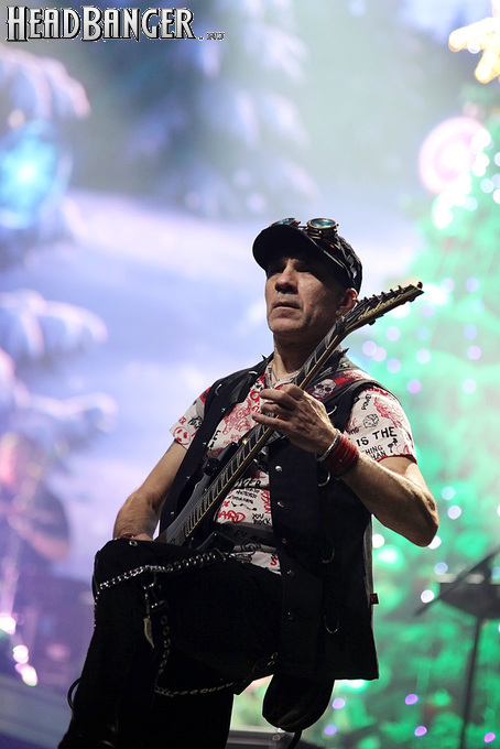 Не прошло и месяца, как я побывал на юбилейном концерте Арии на стадионе «ВТБ-Арена» – однозначно самом масштабном и эффектном зрелище за всю пост-пандемическую историю отечественной тяжелой музыки. Казалось бы, что еще интересного и неиспытанного способна предложить фэнам группа после такой постановочной феерии? На самом деле, не так уж мало. Во-первых, специфика спортивного комплекса неизбежно скрадывала нюансы звука, и зачем группе понадобился третий гитарист – упомянутый выше Михаил Бугаев - я тогда так и не разобрался. Здесь же, в практически идеально детализированной панораме, стало понятно, что Михаил нужен Арии не только для «расцвечивания» визуальной динамики стадионных шоу, но и в саунд группы он вносит немало, в первую очередь, в плане плотности. Во-вторых, программа выступления в «Стадиуме», словно бы в качестве компенсации тем, кто посетил только один из двух дней 40-летия в ВТБ, вобрала в себя значительную часть номеров, которые игрались на юбилее лишь однажды – «Король дороги», «Не хочешь – не верь мне», «Штиль», «На службе силы зла». С ними соседствовали песни, изначально считавшиеся новогодними эксклюзивами, но со временем ставшие постоянными на «арийских» выступлениях в конце декабря – начале января: «Зомби», «Искушение», кавера на Iron Maiden и Judas Priest. Конечно, с годами их эксклюзивность стирается, и хотелось бы, чтобы группа добавляла в новогодние шоу какие-то новые фишки по примеру тех же Catharsis. Но все же единственной возможностью послушать в исполнении Арии (отличном, кстати, исполнении) “The Trooper”, “Breaking The Law” и даже «В лесу родилась елочка» так и остается посещение их праздничного сабантуя, который случается далеко не в каждом городе и только раз в году.