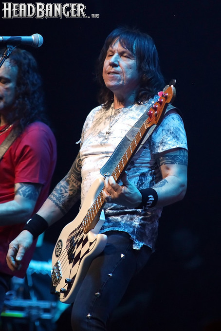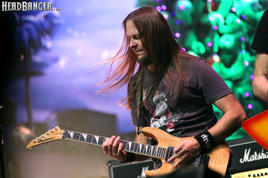 Парад специальных гостей на этом не завершился – петь финальные «Крылья» и «Воин света» вместе с Олегом Жиляковым вышел Алексей Реймар из израильской группы Desert (вот бы спустя почти 10 лет увидеть их вживую снова всем составом!), а еще одним гитаристом оказался… футбольный судья Алексей Карасев. Все это было очень весело, смотрелось живо и новогодне, но звучало довольно бардачно. Саунд у Catharsis в этот вечер не задался с самого начала, и хотя гитару Джеффа, на первых двух песнях попросту отсутствовавшую в миксе, техники в итоге пофиксили, исправить дисбаланс в сторону вокала и барабанов им так и не удалось. Хотя фэны были счастливы видеть группу в любом случае, ведь в последнее время такая возможность выдается им нечасто – за весь 2025 год «Катары» сыграли в Москве всего дважды. Будем надеяться, что в наступившем году музыканты будут проявлять активность почаще, ведь у них на повестке дня круглая дата – 30 лет с момента основания.