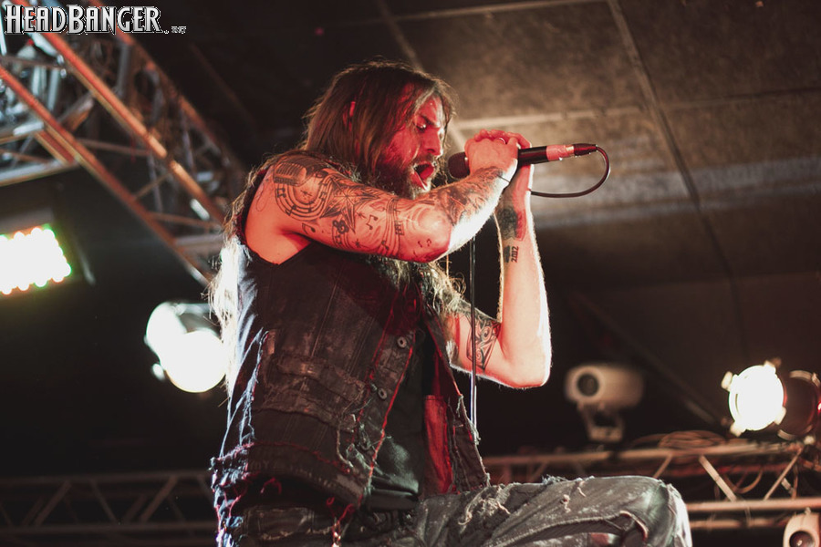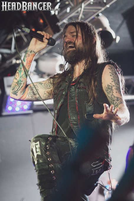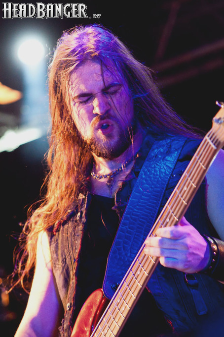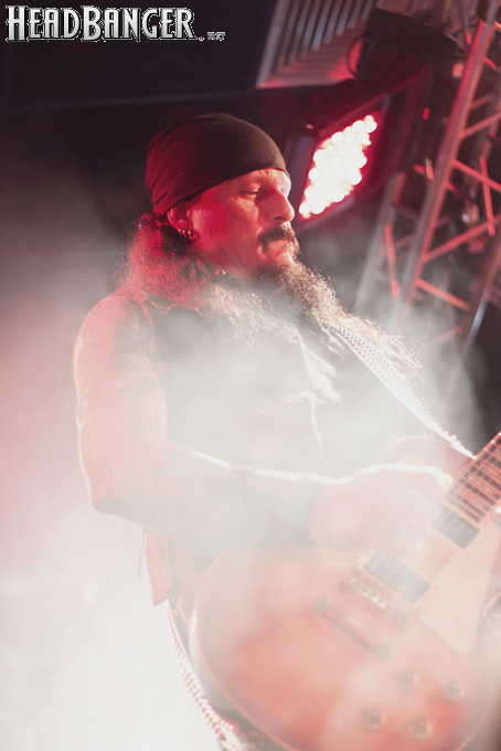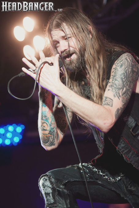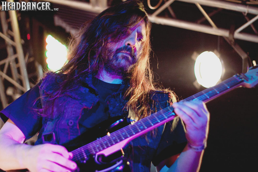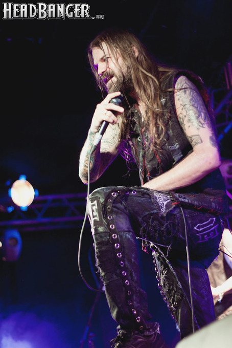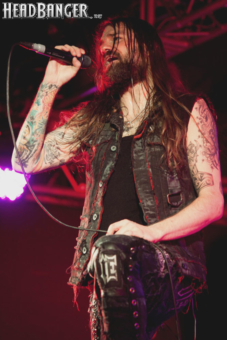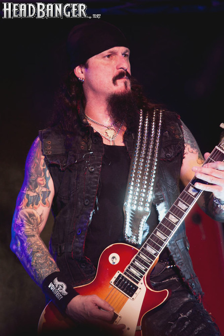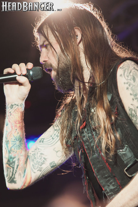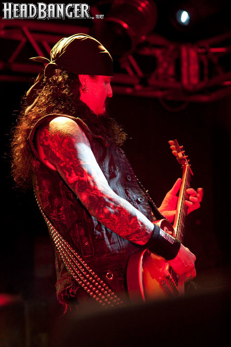 Наконец, зазвучало интро, и на сцене появились Iced Earth. Сразу бросилось в глаза, что за полгода, которые прошли с посещённого мною фестиваля “Eisenwahn”, брутальности прибавилось не только в музыке, но и в облике группы – басист Люк Эпплтон и соло-гитарист Трой Сил окончательно заросли бородами, догнав Стю Блока и Джона Шаффера. И даже коротковолосый барабанщик Джон Детте прибавил в небритости. Всем музыкантам, кроме него, выдали потрёпанные джинсовые жилетки и штаны, которые наводили на мысли о помянутом Стю в недавно опубликованном у нас интервью зомби-апокалипсисе – как иначе объяснить такое количество заплаток? Шутки шутками, но образ группы получился очень удачным – во-первых, он объединяет музыкантов в единое целое. Во-вторых, сочетание длинных волос, небритости и джинсы безотказно действует на девушек – моя спутница пришла на концерт в довольно скептическом настроении, а уходила со словами о том, что Iced Earth – пожалуй, лучшая концертная команда, которую она видела.