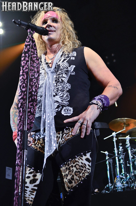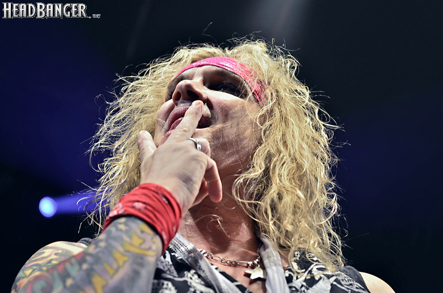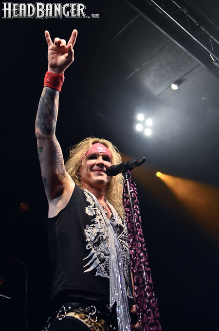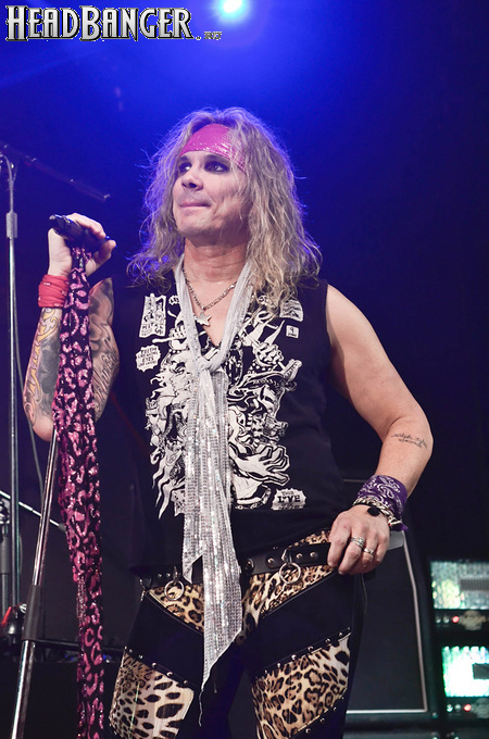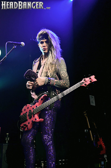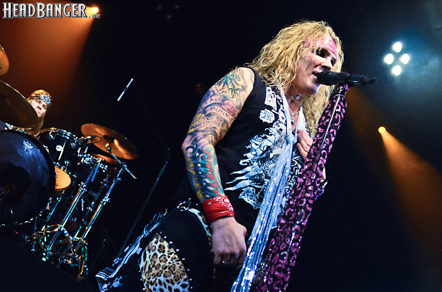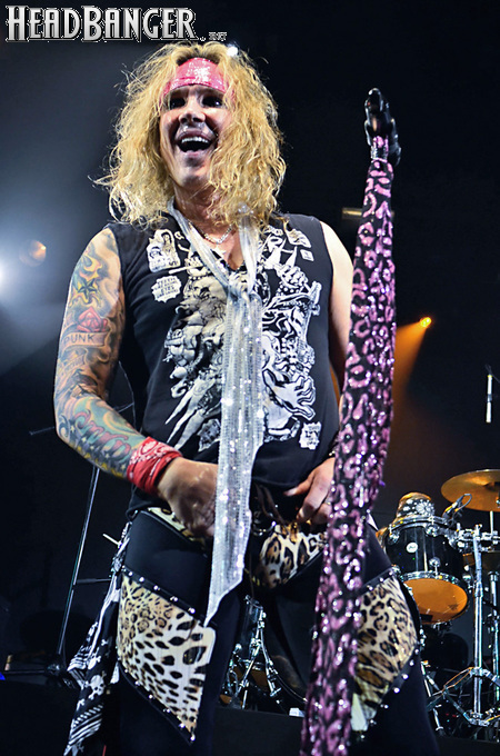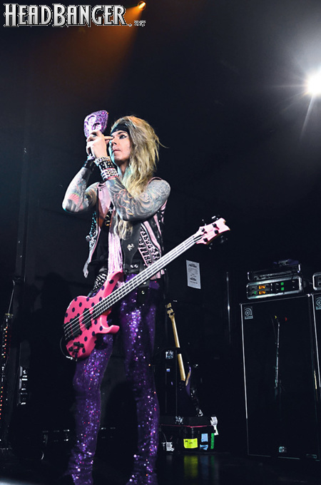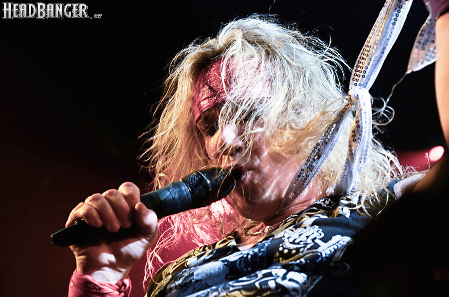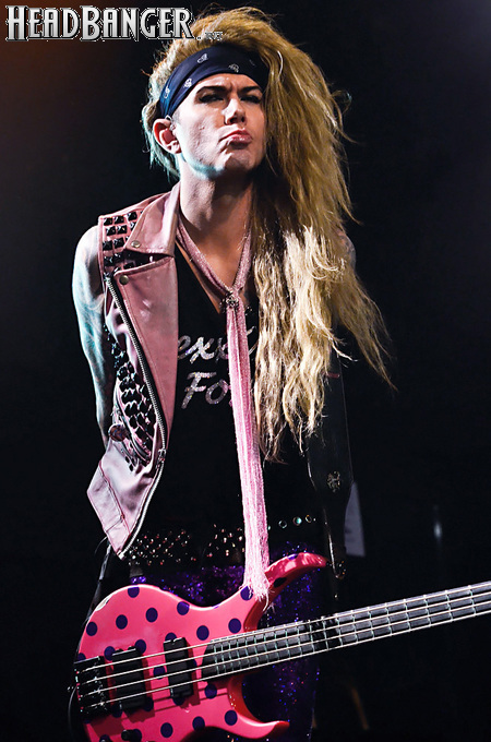 Steel Panther – это пародийная группа, начиная от образов (один басист Лекси Фокс с косметичкой и зеркалом чего стоит) и заканчивая лирикой, полной всяких непристойностей. Отдельно стоит отметить диалоги музыкантов между песнями, порой длящиеся около 5 минут. У меня были опасения, что все эти многочисленные шутки ниже пояса пройдут «мимо кассы» по причине плохого знания английского языка у российской публики, а ведь концерты Steel Panther становятся особенными во многом и из-за этих диалогов. К счастью, преодолевать языковой барьер в этот раз не пришлось. Кроме того, во время разговоров Сэтчел блеснул и знанием русского языка, но не банальными словами благодарностями, как это обычно бывает, а в контексте собственного творчества. Фразы «Show your p*zda» и«Sosi moy h*i», которые произносились по шпаргалке, написанной прямо на руке (прям как ученик на экзамене, подумалось мне), имели большой резонанс среди публики, чему Сэтчел был очень рад, судя по его широченной улыбке.