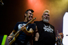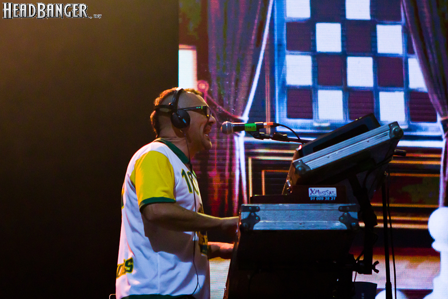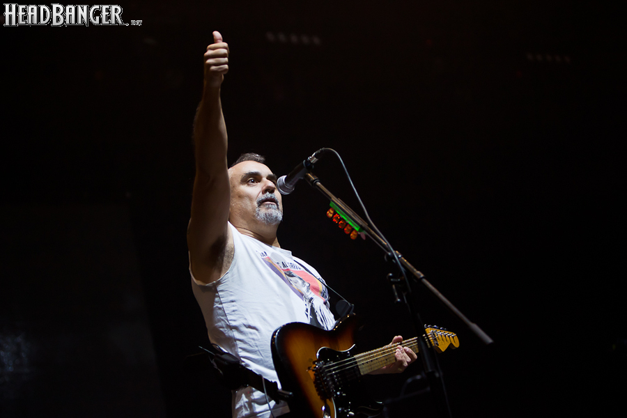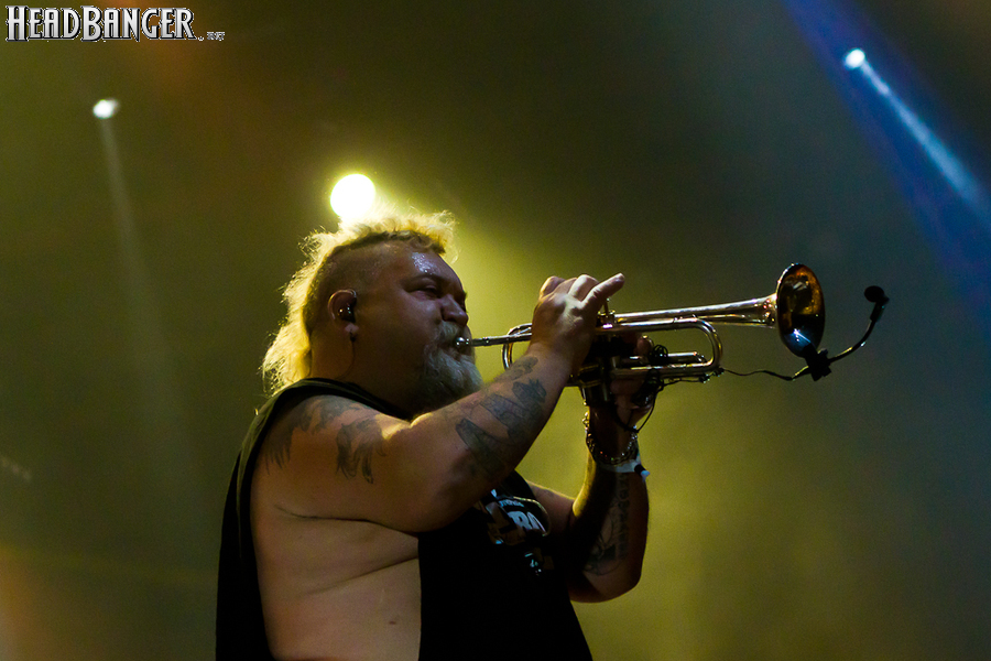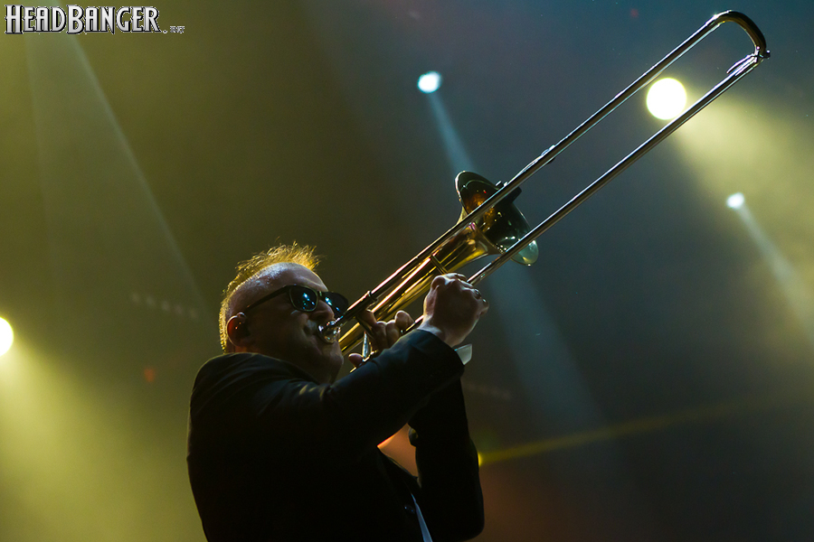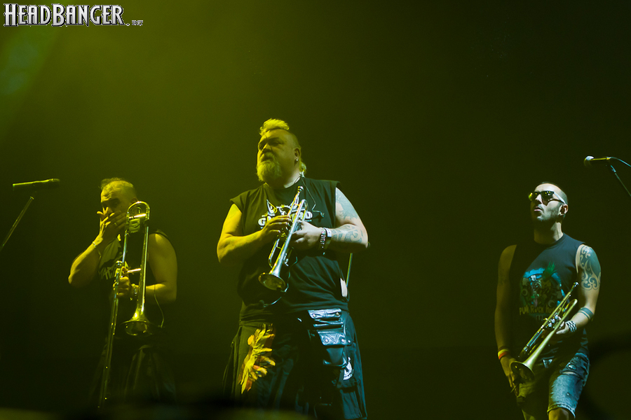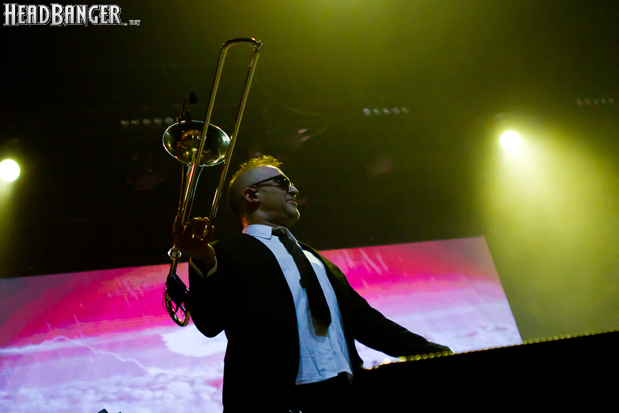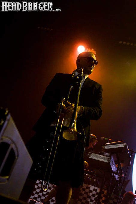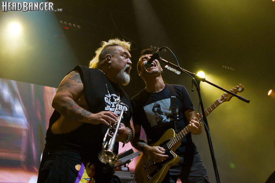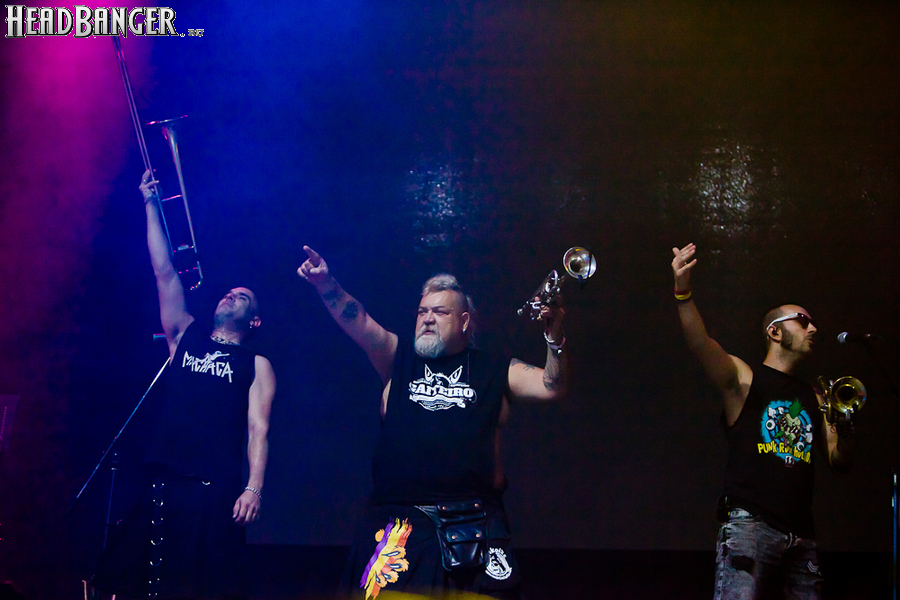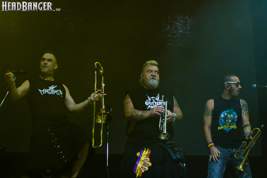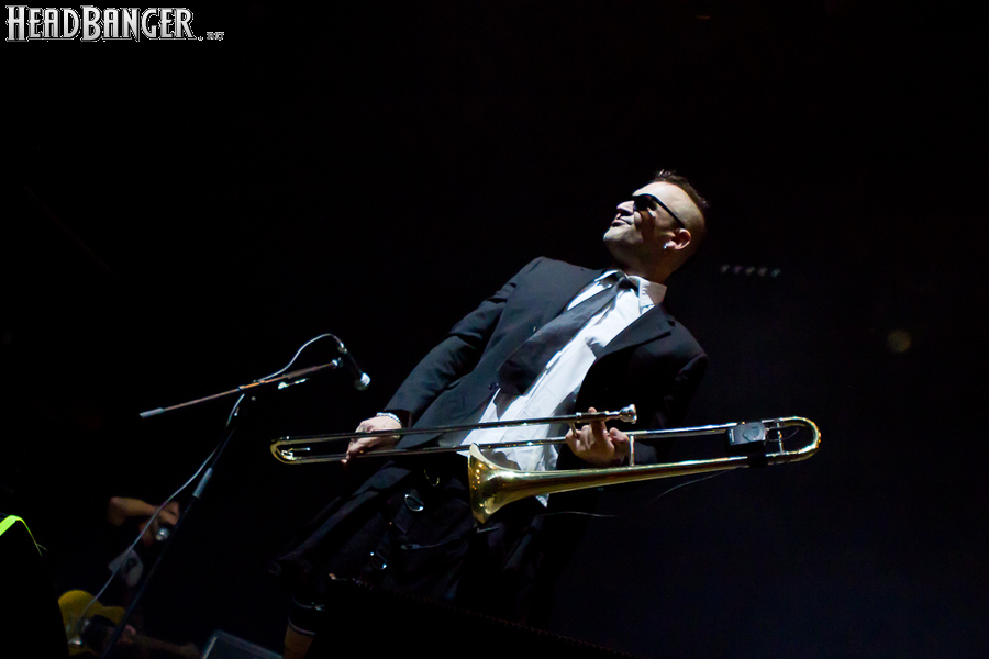 Тут нельзя не провести параллели с Toy Dolls — точно такое же веселье одновременно с высочайшим уровнем владения инструментами. И не могу не вспомнить виденное как-то раз выступление недогруппы Красная Плесень - это было в триллион раз колхознее и унылее, чем та феерия, которую выдали Ska-P, что сейчас, что в 2014-м. Удовольствие от такого качества и класса было колоссальным. Отдельный вопрос — благодаря или вопреки тому, что песни "спанишей" исполняются исключительно на родном языке. Хотя название сыгранного примерно посередине шоу хита "Cannabis", вызвавшего всеобщее ликование и практически стояние на ушах, понятно без знания испанского.