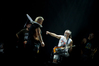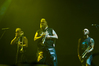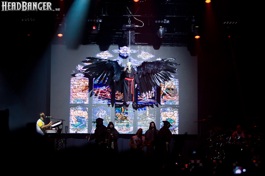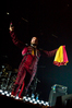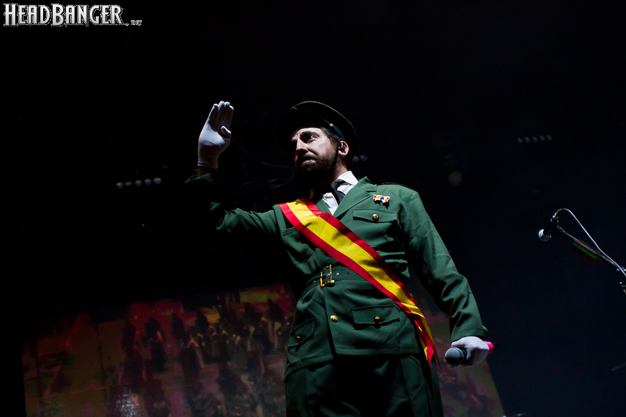 Через концерты которых, как я убедился, сравнивая только что состоявшееся мероприятие с предыдущим московским шоу, политическая тема проходит красной нитью. Смею предположить, не у меня одного это создает тотальный когнитивный диссонанс как минимум по нескольким причинам. Про смешение музыки с политикой как таковой и правильность или неправильность сего писать не хочется совсем, дабы не плодить банальности без нужды. Но демонстрация видео со сборищ палестинских боевиков под анти-израильскую композицию попросту плохо пахнет. А перформанс с одним из "эскапэшных" "подтанцовщиков" в образе Дяди Сэма, изображающим коитус с гигантским земным шаром — это просто пошло.