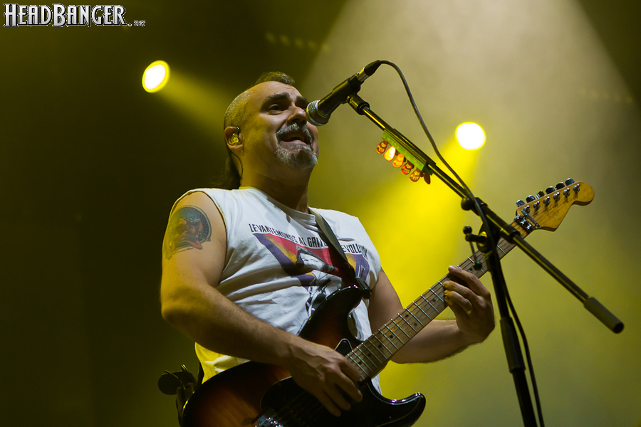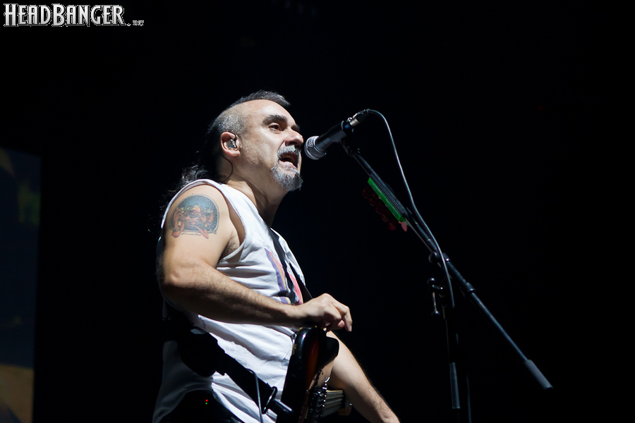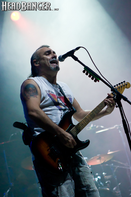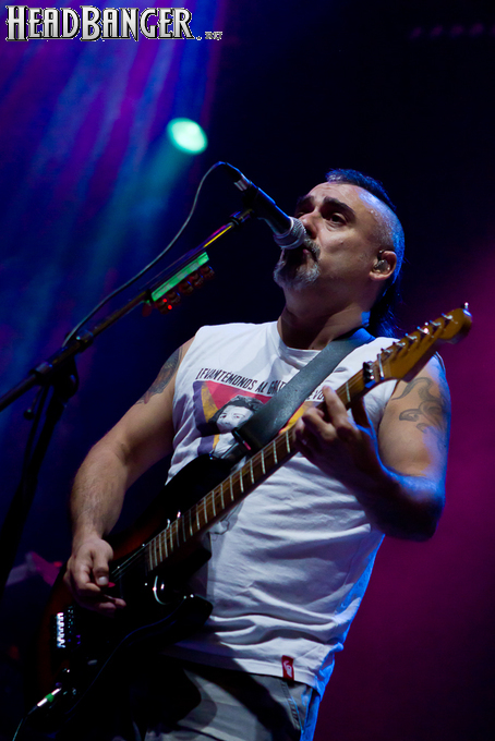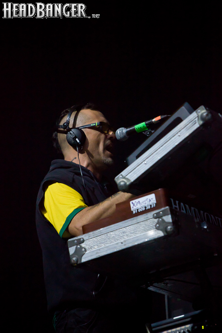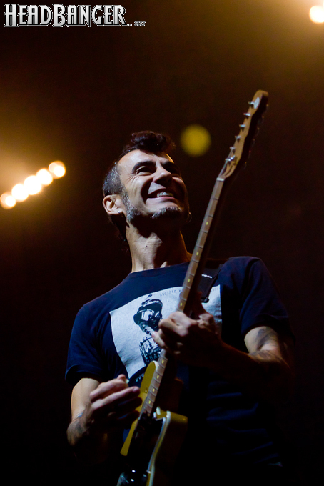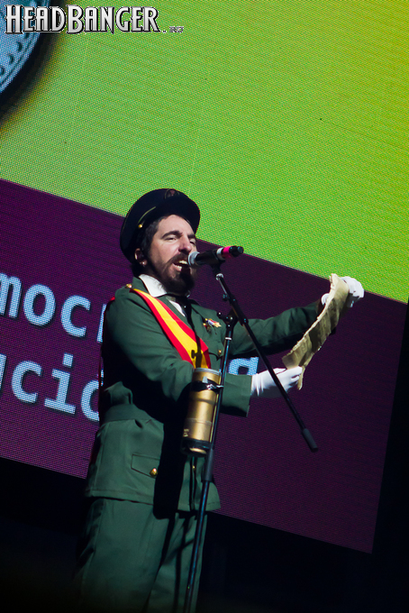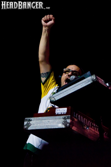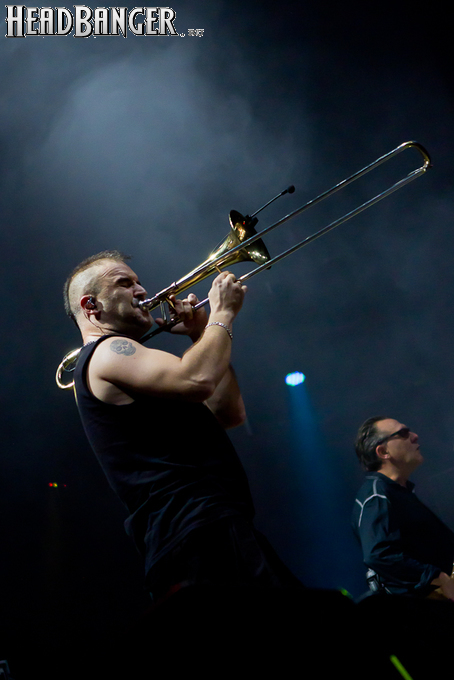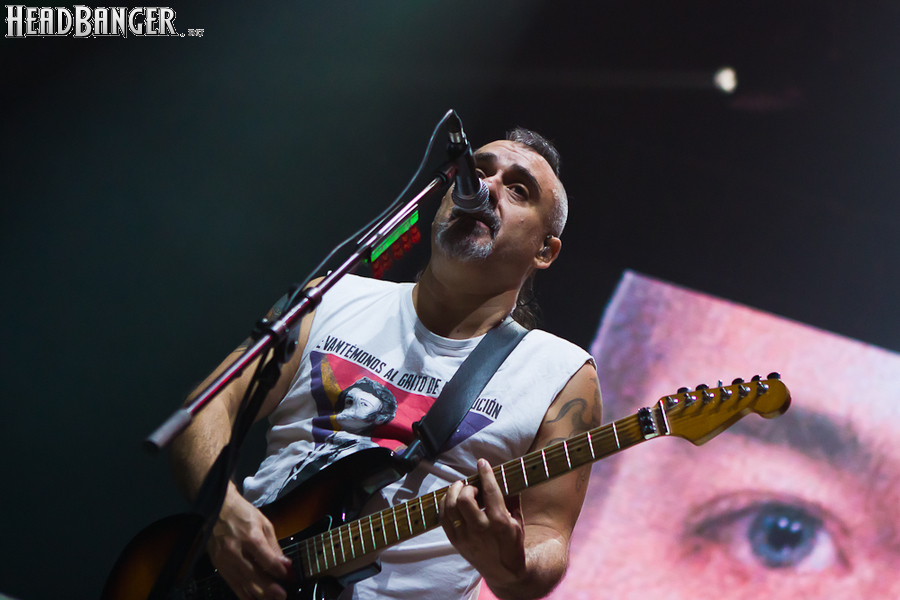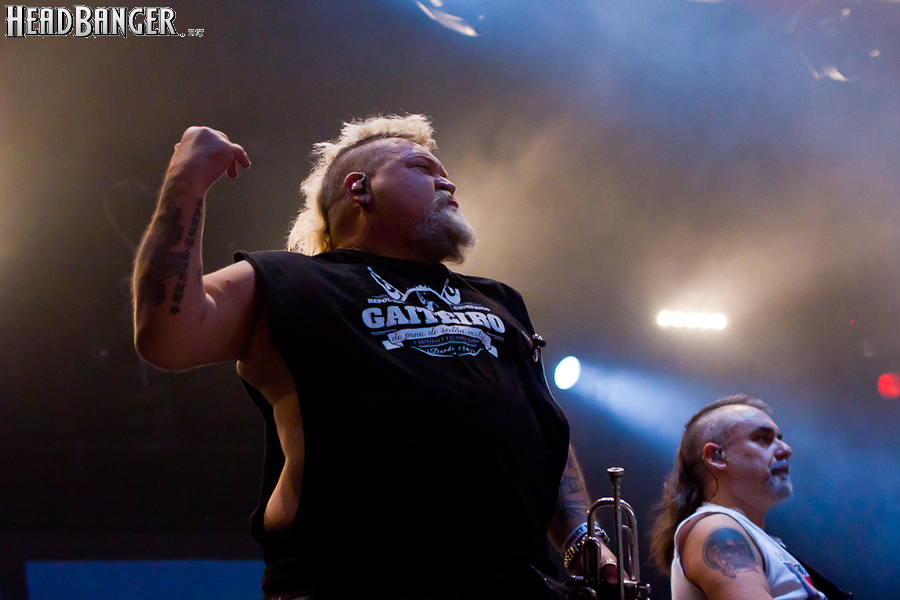 Оговорюсь: лично я, собрав волю в кулак, закрыл глаза на все политические разногласия, ибо уж больно музыка хороша да играют здорово. Тем более, что слова все равно непонятны. (Ну, за исключением замеченных среди публики мексиканцев и знатоков кастильского, которые среди посетителей наверняка были.) Объем вырабатываемых эндорфинов притом перевешивает ту оскомину, которую вызывает вышеописанное политиканство. Начав играть, испанцы с первой же минуты сняли все то недовольство, которое ощутимо распространилось по залу из-за не менее чем часовой задержки начала. Это, наверное, можно назвать единственным минусом концерта (абстрагируясь, опять же, от политиканства). Тотальный позитив в самом положительном смысле слова, исключительно мажорный тон, прекрасный и в меру тяжелый звук, отличная сыгранность, в том числе, заметьте, с духовой секцией, вокалист в голосе — и два часа пролетели незаметно.