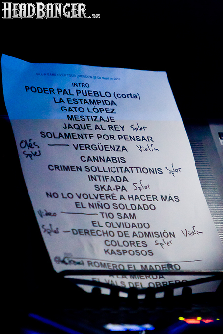 Предыдущее выступление мадридцев в Москве проходило в "Главклубе", в этот же раз организаторы решили не скупиться и забукировали площадку большей вместимости. Что было весьма радостно, поскольку в 2014-м в клубе на Орджоникидзе (как бы он ни назывался) набилось безумное количество народу, и находиться там было абсолютно некомфортно. Правда, устроить в "Стадиуме" биток не получилось, минимум треть зала была заполнена более чем свободно. Уверен, многих отпугнули цены на билеты - от 3000 рублей. Продававшиеся в фойе футболки стоили едва ли не столько же. Воистину, нужно быть не самым низкооплачиваемым специалистом, чтобы позволить себе ходить на концерты левоанархистских команд типа Ska-P!