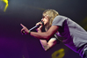 К началу выступления The Red Jumpsuit Apparatus народу в зале прибавилось. И даже если малолюдный танцпол все-таки расстроил музыкантов, они этого не показали и начали свое выступление с таким же задором, будто они играют перед огромной толпой на стадионе. Вскоре поклонники уже приплясывали и подпевали, как могли, а я с интересом наблюдала за действом на сцене.
