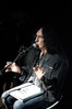 Что было в этот вечер по-настоящему необычным – так это качество перевода. Обычно к этому вопросу у нас подходят по принципу «и так сойдет», в результате чего половина сказанных с обеих сторон слов так и не доходит до адресатов. В этот же раз девушка у второго микрофона приятно удивила, причем не только качеством перевода, но и хорошим знанием «матчасти» - многочисленные имена и факты, которыми прямо-таки сыпали музыкант и публика, лишь пару раз заставали ее врасплох.