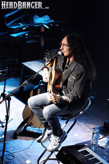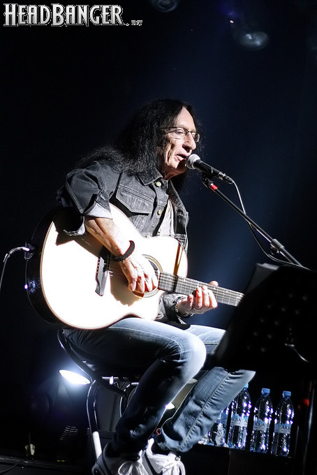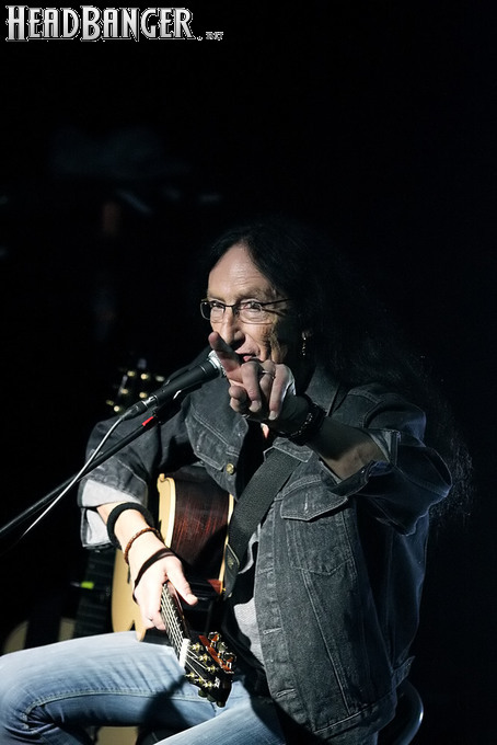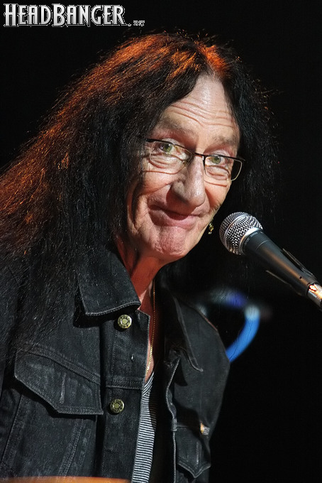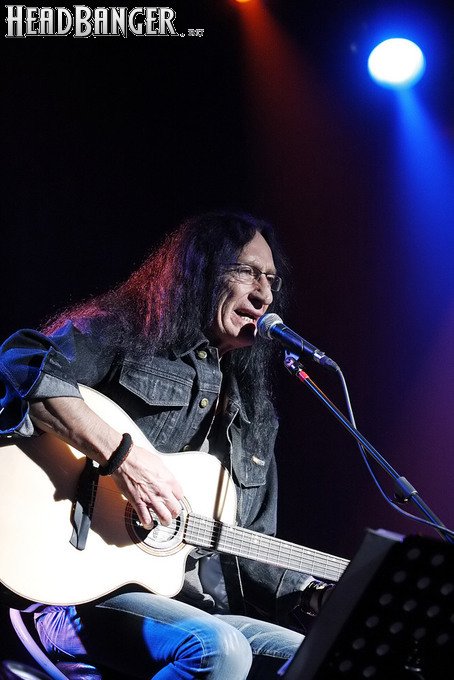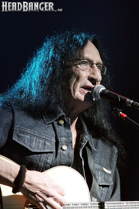 Впрочем, не стоит сводить привлекательность выступлений Хенсли сугубо к ностальгическим пристрастиям отечественных любителей хард-рока. В свои 68 лет Кен находится в прекрасной физической и – самое главное – вокальной форме. Ближе к концу почти двухчасового выступления он признался, что простужен и поет не лучшим образом, но у меня возникло впечатление, что он несколько рисуется – все нужные ноты были взяты, как надо. Конечно, знаменитый голосовой подъем в “July Morning” Кен спеть не рискнул, но в акустической версии он особо и не нужен. Кроме того, Хенсли, хоть и видит, какие композиции вызывают у публики наиболее теплый прием, все-таки находит в программе место для относительно свежих номеров – “Slippin’ Away” с альбома 2011 года “Faster” и “Come To Me” с прошлогоднего “Love & Other Mysteries”. Жаль, что так и не прозвучало ни одной вещи с “Trouble”, ведь это едва ли не сильнейший сольник Кена со времен “Running Blind” (2002), а во всем творческом наследии музыканта трудно найти более подходящую для исполнения в России песню, чем “I Wanna Go Back” (если кто не знает ее текста – рекомендую найти и ознакомиться). Впрочем, материал там весьма хардовый и для акустического формата, возможно, подходит похуже, чем хрестоматийные “Free Me” или “The Wizard”, которые, по словам их создателя, исполняются сейчас именно так, как изначально были написаны.