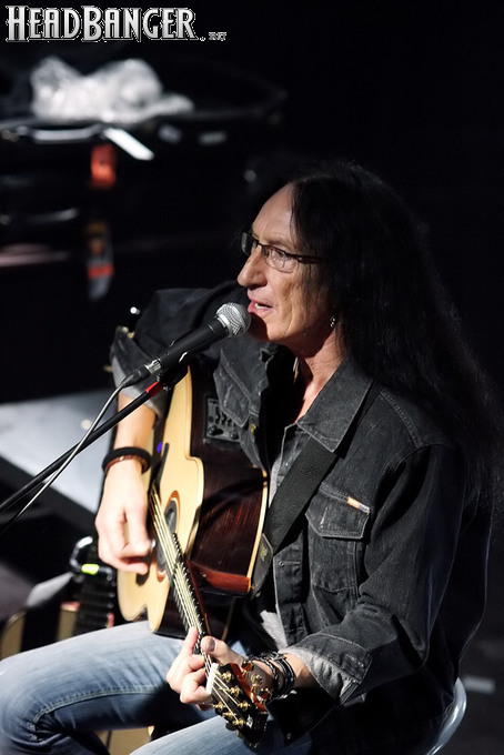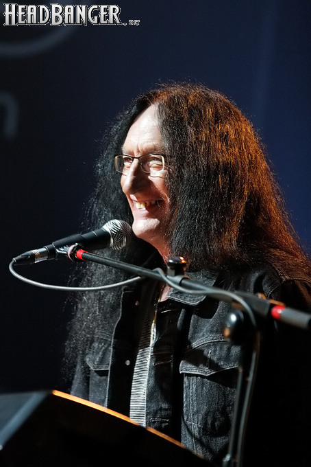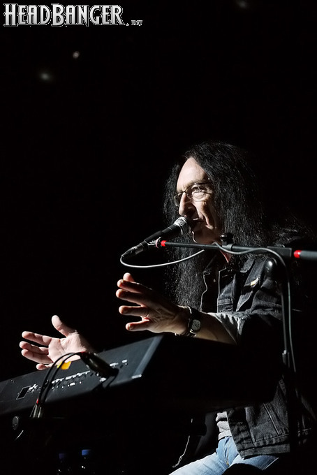 На тот случай, если вы следите за деятельностью экс-клавишника Uriah Heep не так пристально, как я, немного расскажу о формате, в котором вот уже пять лет проходят все его российские концерты. Кен выступает сольно, чередуя акустическую гитару и синтезатор, а исполнение классики «Хипов» и избранных сольных треков перемежается ответами на вопросы зрителей. Несмотря на чрезмерную, на мой взгляд, стабильность программы, на недостаток публики организаторам жаловаться не приходится – хотя с предыдущего визита Кена в Москву прошел всего год, зал клуба «Театръ» был заполнен на три четверти, и не меньше половины собравшихся после концерта остались на автограф-сессию. Русский зритель, как известно, не отрекается, любя.