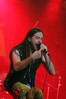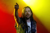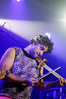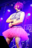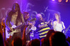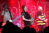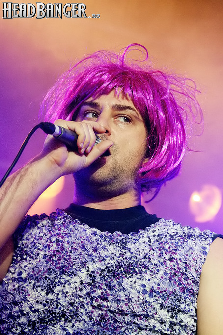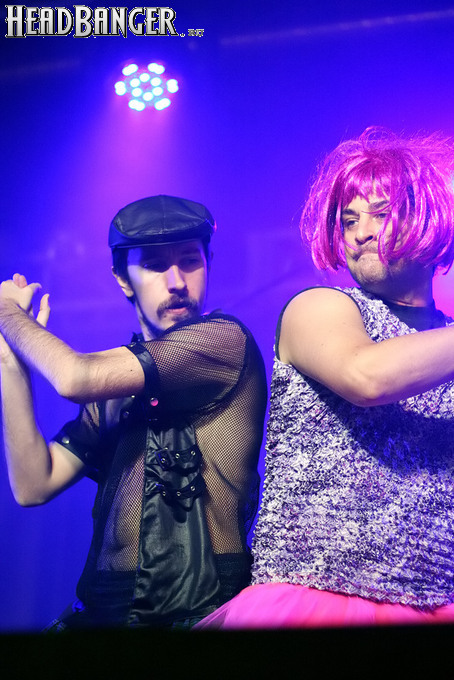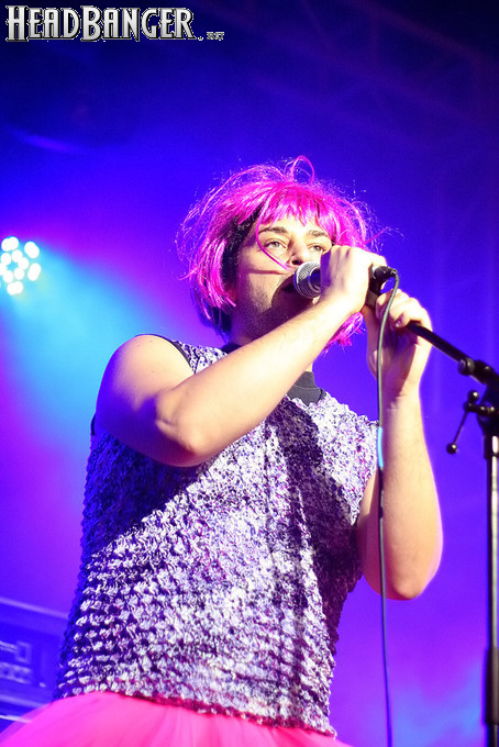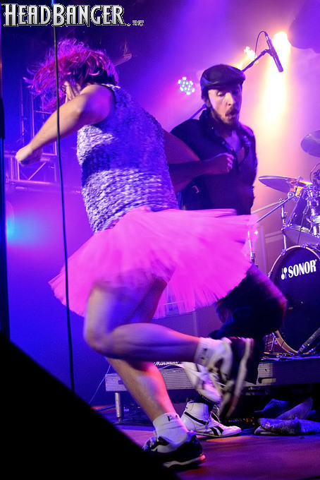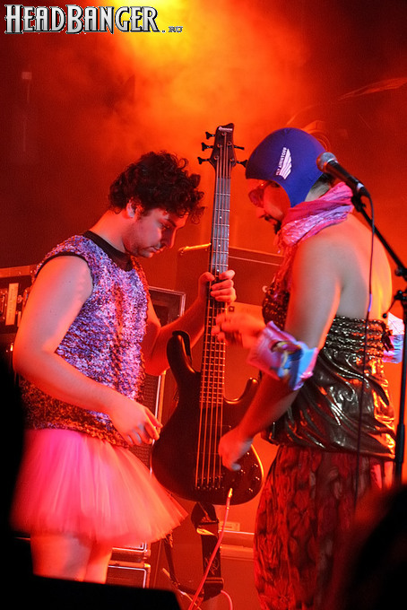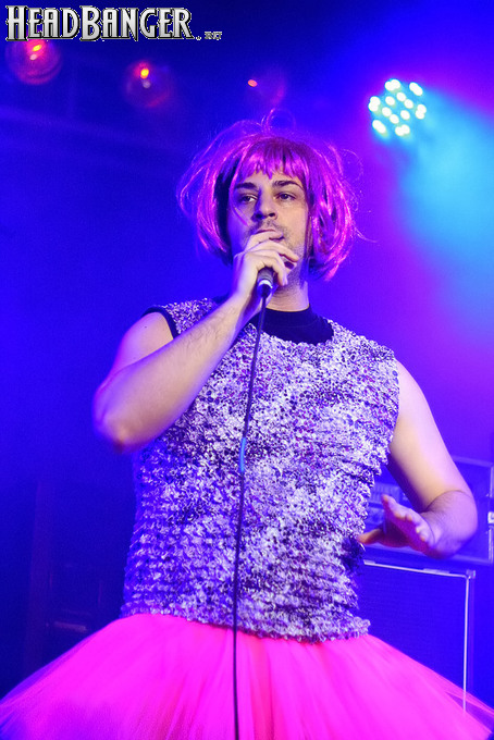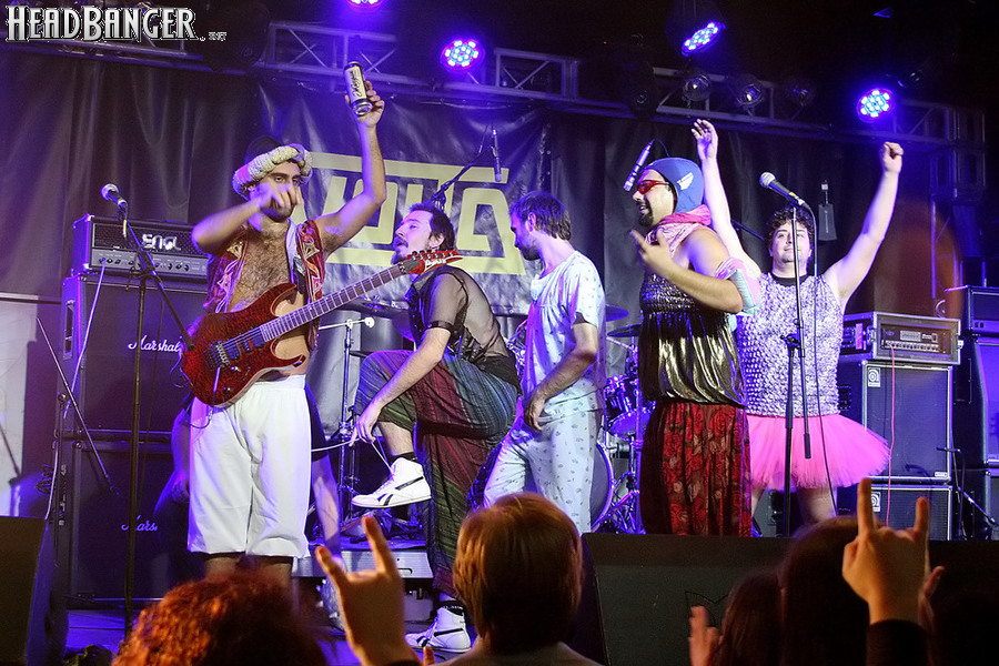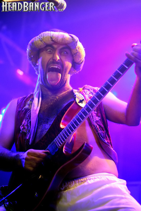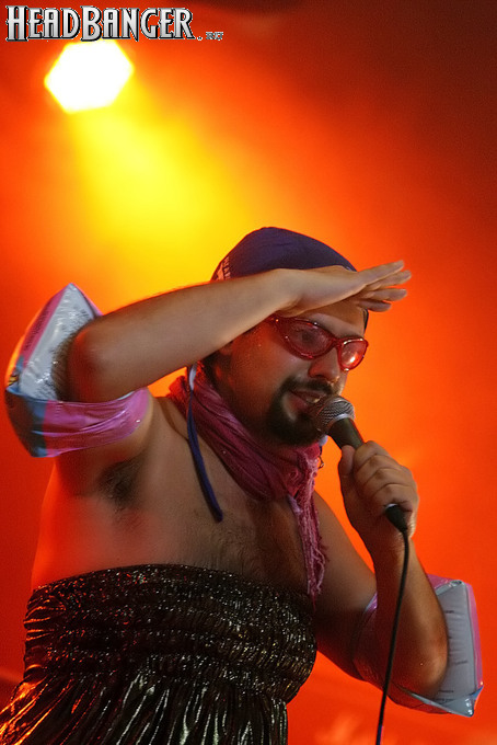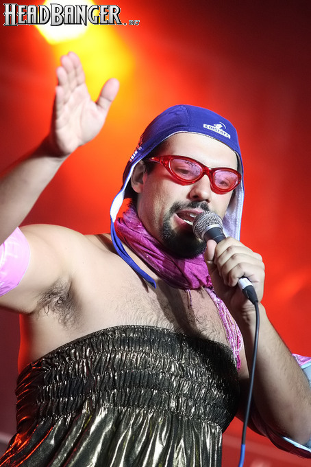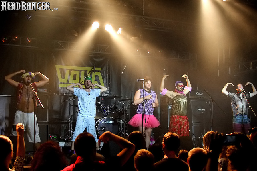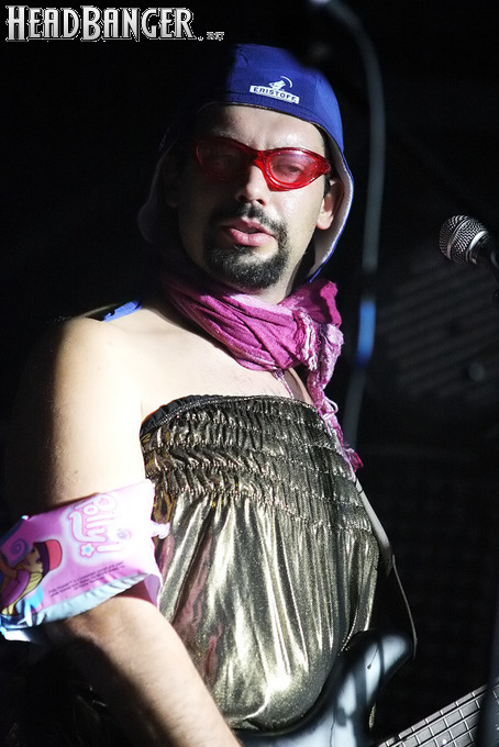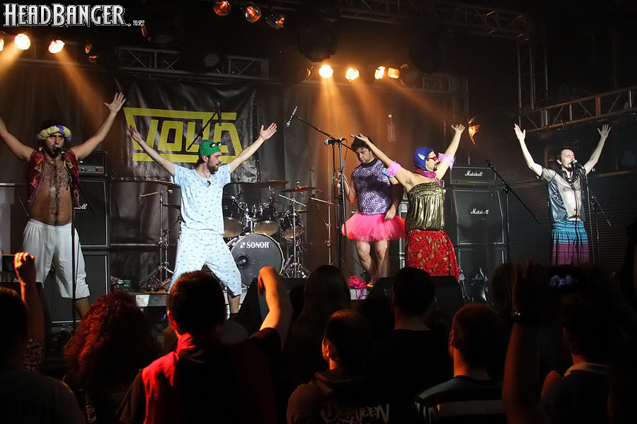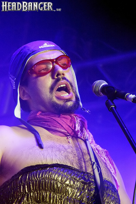 Программа Nanowar Of Steel началась со знаковой композиции “Tricycles Of Steel”, которая открывает “Other Bands Play…” (если не считать уморительнейшего интро, в котором музыканты хором распевают названия тяжелых металлов из таблицы Менделеева). И оказалось, что итальянцы очень неплохо держатся на сцене, да и звучат, вопреки закрепившейся за акустикой «Вольты» дурной славой, вполне пристойно. Но никакого впечатления о творившемся во время их выступления угаре вы не получите, если не рассказать о внешнем виде музыкантов. Если основной вокалист Потовотоминимак (уфф, кажется, написал правильно!) и гитарист Мохаммед Абдул выглядели относительно обычно, то басист Гатто Панцери щеголял в женском платье и надувных нарукавниках, барабанщик Уйнона Райдер – в пижаме, а второй вокалист Мистер Баффо – в балетной пачке и с игрушечным щитом. Более того, Баффо и Потовотоминимак в паузах между пением бегали друг за другом и разыгрывали почти батальные сцены, а Гатто Панцери внезапно обнаружил серьезные познания в русском языке. «Раньше был СССР, и в нем были республики», - сказал он в середине сета. – «А в какой стране жил гей-народ? Ну, пи**сы?» За этой подводкой последовала полностью русскоязычная песня (!), текст которой мне понять так и не удалось, но ее название рискует стать новым мемом. Я напишу его латиницей во избежание применения к нашему сайту законов о запрете нецензурных выражений в СМИ и борьбе с разжиганием национальной вражды: “Huisbekistan”. Впрочем, на итальянском музыканты пели с не меньшим удовольствием – так, прозвучала совсем новая композиция “Feudalismo E Libertad” и кусочек пресловутой «Феличиты», из которой Nanowar играючи перешли в “Master Of Puppets” Metallica (в их версии песня называется “Master Of Pizza”). Ну и, конечно, не обошлось без самой эпической композиции в репертуаре итальянцев – “Power Of The Power Of The Power Of The Great Sword”. Этот монументальный 16-секундный труд был сыгран раза четыре – сначала в разных интерпретациях в начале программы, а потом, в качестве контрольного выстрела, под самый занавес. Скажу вам честно, что еще никогда на метал-концерте я столько не смеялся!