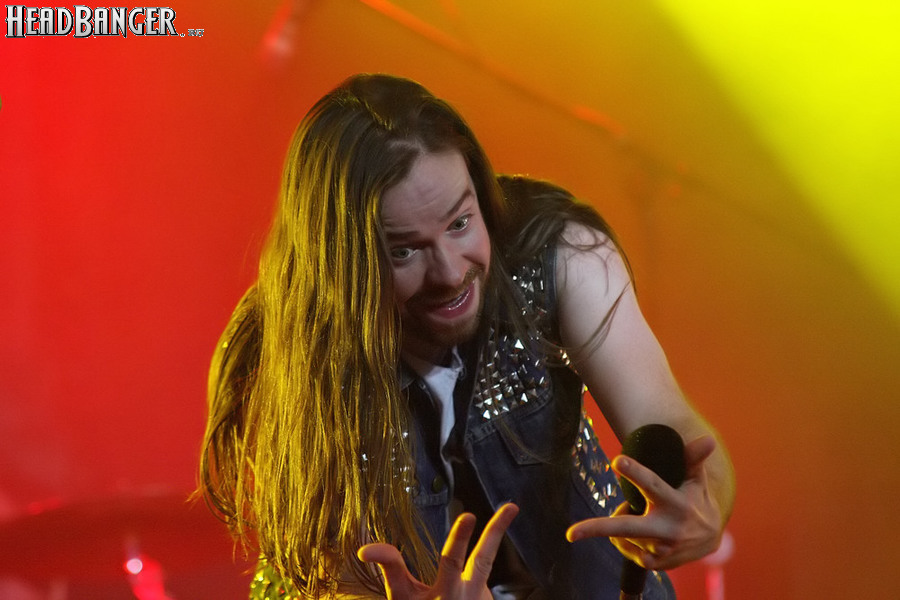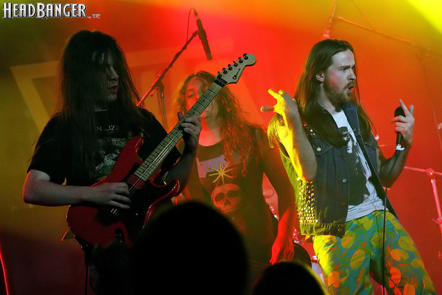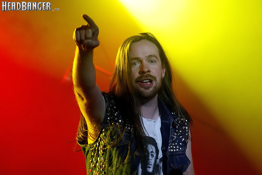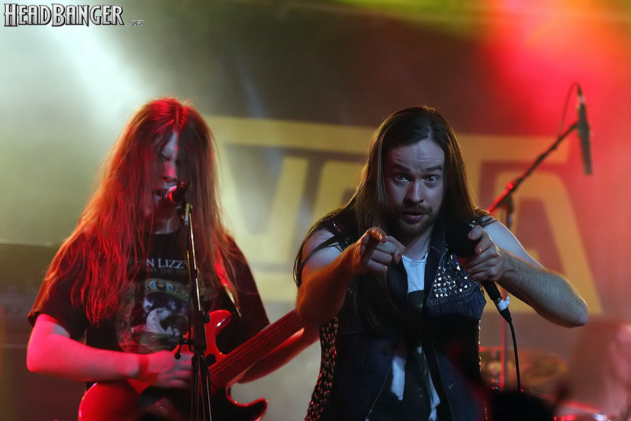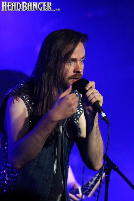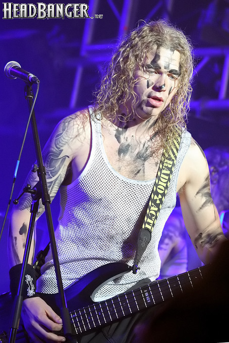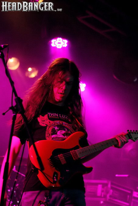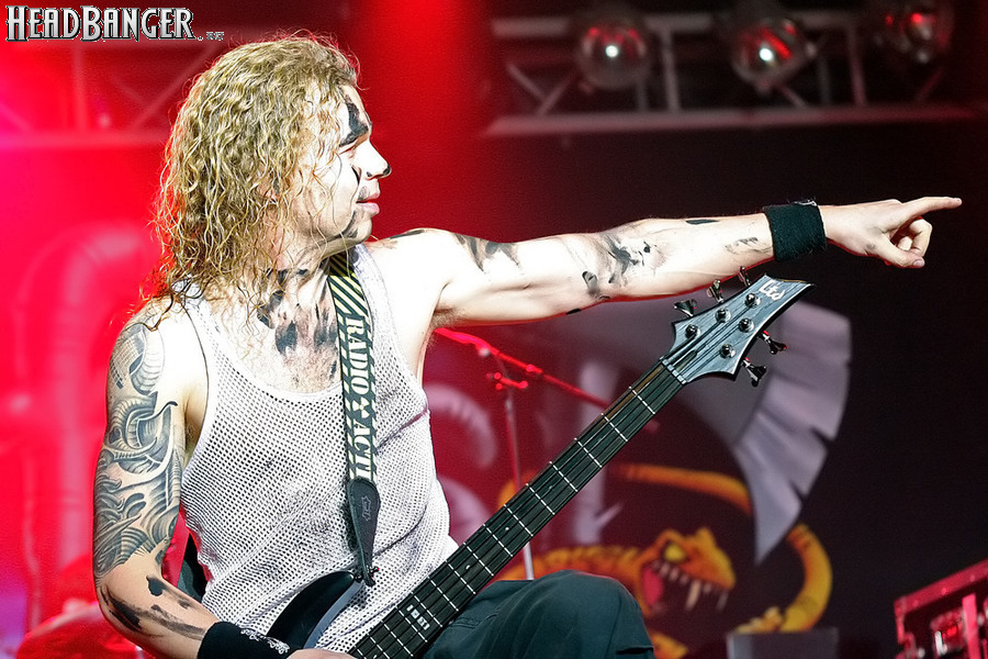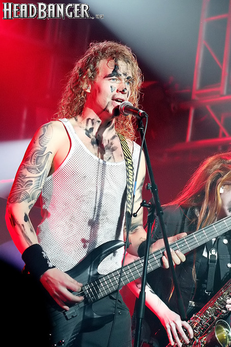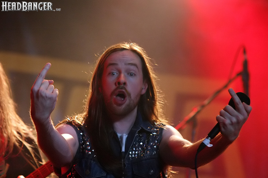 Тем не менее, вечер продолжался, и следующими на сцену пришлось выходить ирландцам Gama Bomb. Сей коллектив является типечнейшим представителем трэша новой волны – совсем юные музыканты играют так, как будто на дворе 1985 год, а самая продвинутая музыка на свете – это “Spreading The Disease” и “Ride The Lightning”. Делают они это от души и изо всех сил, не занимать им и техники, и аутентичности, вот только менее вторичным от этого их творчество не становится. Тем не менее, вживую коллектив смотрится достаточно живописно (все пятеро обладают длинным хайром и одеты в олдскульные футболки и джинсовки), да и звучит вполне уверенно – все-таки на счету уроженцев североирландского города Ньюри уже четыре студийных альбома и немалый опыт концертных выступлений. Собравшиеся в зале трэшеры с удовольствием сделали обширный серкл-пит (благо, места хватало), и отведенное под выступление Gama Bomb время пролетело незаметно – уже дома я с удивлением узнал, что их программа состояла из 16 (!) треков.