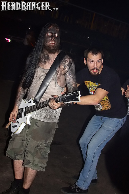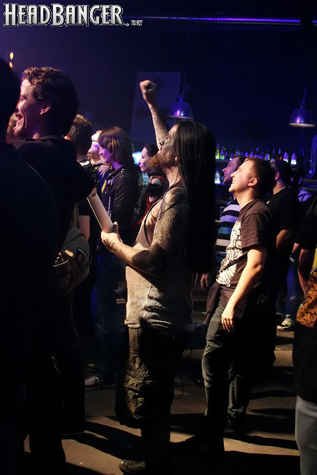Сразу после своего сета музыканты вышли к публике, которая буквально атаковала их просьбами о фото и автографах. Расписывались они, правда, тоже в своем стиле – теперь у меня на обложке обоих компактов Nanowar красуется гордая надпись «Х**сбекистан». А когда все страждущие были удовлетворены, итальянцы принялись отрываться вместе с другими фэнами – под Gama Bomb они бегали в серкл-пите, а под Trollfest водили хороводы. Единственное, что нарушало эту идиллию – постепенное «опустынивание» танцпола: истинными хэдлайнерами вечера оказались игравшие первыми Nanowar Of Steel, и после них народ начал медленно, но верно расходиться. Впрочем, я прекрасно понимаю «дезертиров» - при всем моем уважении к последующим командам они на пушечный выстрел не приблизились к зашкаливающему угару итальянцев.