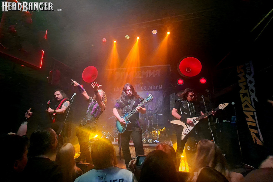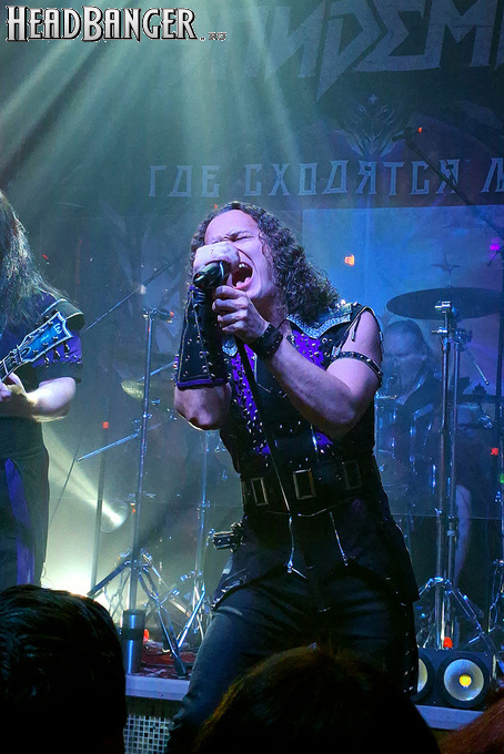 Теперь о самом концерте. Есть такое очень расхожее выражение - "огненное выступление", но в данном случае именно оно просилось на язык буквально с первых секунд после выхода музыкантов на сцену. Программу открыла песня с нового альбома - ураганная "Книга огненных страниц", сразу же задавшая настроение вечеру. Надо сказать, что треть сет-листа составили именно новинки, и, судя по реакции зрителей, они уже успели им полюбиться. Признаюсь, я до этого момента свежий релиз "Эпидемии" послушать не успела, но на концерте прониклась им и на следующий день добавила его в свой плей-лист.