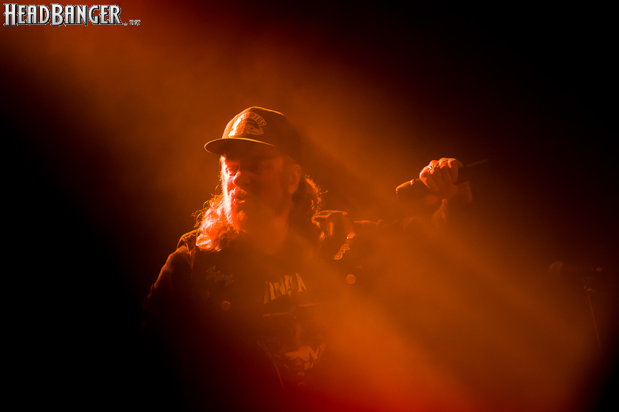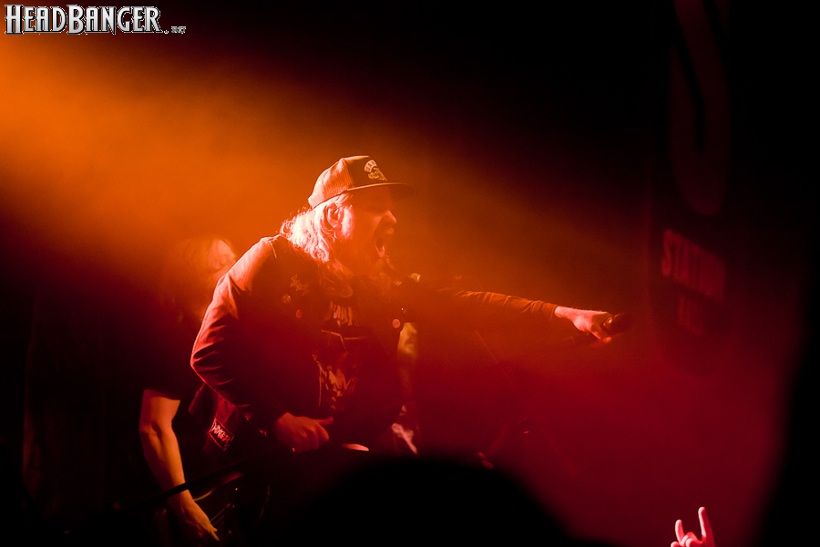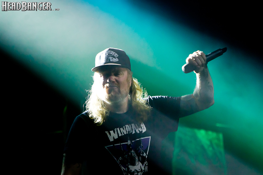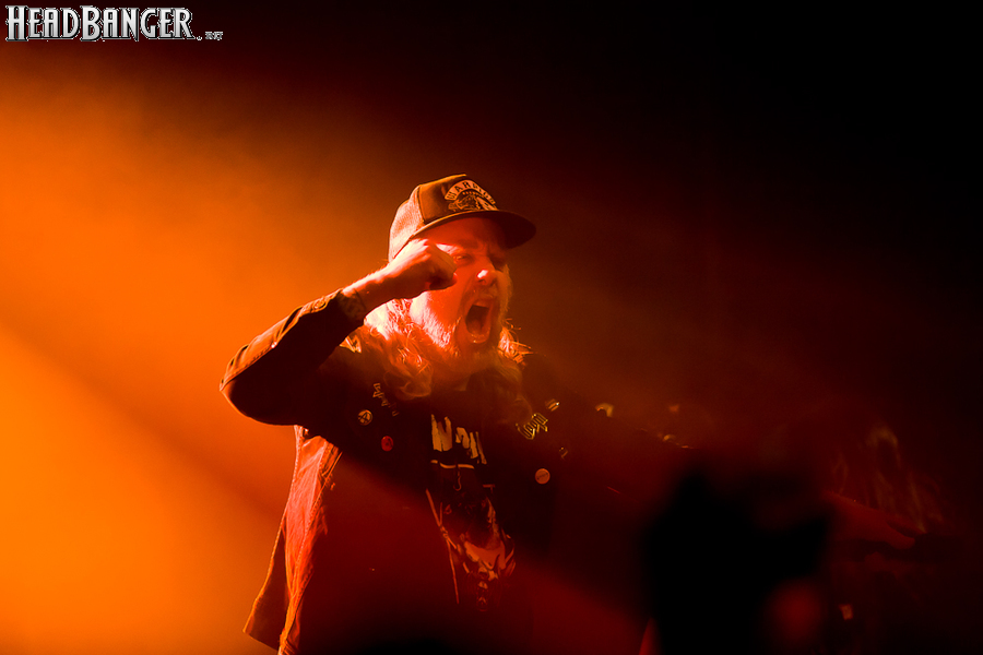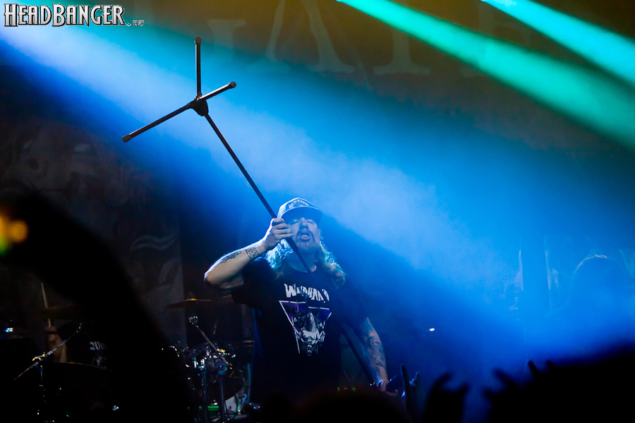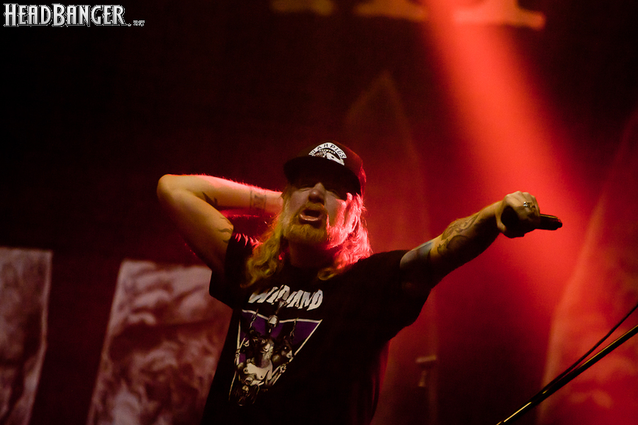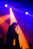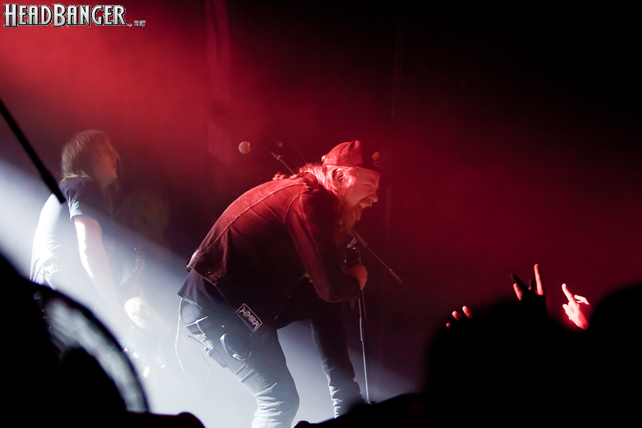 Тем временем танцпол постепенно заполнился. До аншлага было далеко, но и на пустой зал не посетуешь – приличное число народу, однако спокойно можно было передвигаться. А в 21:40 со звуками вступительной интродукции “Der Widerstand” на сцене появились At The Gates и с первой же композиции “To Drink From The Night Itself” показали зрителям, “кто в доме хозяин”. Несмотря на то, что годы берут свое, и, как отметил мой питерский коллега в отчете о прошлом концерте шведов, вокалист Томас Линдберг “внешне напоминает постаревшего Чака Норриса”, глотка у него по-прежнему луженая и коррозии не поддается. То же самое можно сказать и обо всех остальных музыкантах At The Gates – возрастные, обородевшие татуированные шведские ветераны, не утратившие ни грамма мастерства. И даже “потеря бойца” –гитариста и одного из основателей Андерса Бьёрлера, случившаяся пару лет назад, не пошатнула этих дядек - на его место взяли не менее матёрого мужика, Йонаса Сталхаммара, ранее игравшего в куче различных коллективов, включая не так давно выступавших в Москве The Crown. Впрочем, богатым послужным списком могут похвастаться все без исключения музыканты At The Gates (например, басист Йонас Бьёрлер и ударник Эдриан Эрландссон без отрыва от основной группы играют в The Haunted, а последний их них ранее отметился в безбрежном море металлических звёзд различных направлений – от Paradise Lost и Cradle Of Filth до грайндовых латиносов Brujeria).