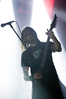 Увы, подобной похвалы в адрес второй группы разогрева – итальянцев UnHuman Insurrection – я сделать не могу. Мелодик-дэта в их музыке нет вообще, гроулинга тоже. Не могу сказать, что коллектив совсем никакой, но их выступление практически не зацепило. Кстати, в расписании концерта, вывешенном во встрече ВКонтакте, UnHuman Insurrection стояли как раз первыми, а французы вторыми (что смотрелось бы очень выигрышно), но по непонятным мне причинам порядок сетов переиграли. Играют они без бас-гитариста, гримируются, как блэкари, а чистоголосый фронтмен Джакомо Кордиолини еще и носит повязку на левом глазу (закос под фельдмаршала Кутузова?). Если говорить очень условно, то музыка UnHuman Insurrection представляет собой сочетание элементов хэви, грува и гитарных запилов в духе Fear Factory времен “Demanufacture” (1995) в отдельных композициях, таких как “Shreds Of Identities”. Вот как раз последний компонент был весьма съедобным и цепляющим, но он в сете группы присутствовал лишь фрагментарно. Ну и запомнились фразы “спасибо” и “отличная публика”, которые фронтмен постоянно произносил на русском языке с забавным итальянским акцентом. Оказалось – опять-таки, по словам Джакомо - что в Москве они уже играют не впервые (потом я выяснил, что пару лет назад UnHuman Insurrection разогревали шведов Arch Enemy в ГлавКлубе). Да и за рубежом они успели отметиться выступлениями Sabaton и Lacuna Coil. Я думаю, куда более выигрышно они смотрелись бы в качестве группы поддержки для какой-нибудь именитой хэви-пауэрной команды - но можно и для Fear Factory, так как в музыке итальянцев присутствует достаточно параллелей с ними. Пока что оценю их на троечку, пожелаю найти басиста, переслушаю прошлогодний дебютник “Equilibrium?”, и, возможно в будущем мое мнение поменяется.