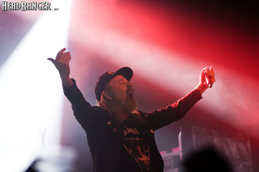 Но это была всего лишь пристрелка – первую треть исполненных в Москве песен группа играет регулярно. А вот далее At The Gates пустили в ход настоящие «бомбы», и если наличие в программе “Suicide Nation”, которая начинается с короткого сэмпла взводимого курка пистолета, я еще предполагал, то услышать от шведских мастеров “Nausea” (!), “Under A Serpent Sun” (!) и еще более ранние композиции вплоть до “The Swarm”, крышесносной “Raped By The Light Of Christ” и, наконец, совсем старушки “ Kingdom Gone” c дебютника “ The Red In The Sky Is Ours” 1992 года, сыгранной первым номером на бис, не ожидал абсолютно никто из зрителей. Линдбергу не нужно было даже прикладывать усилия, чтобы управлять толпой: взмах руки, благословляющий собравшуюся паству на слэм и угар, объявление песни, иногда жонглирование микрофонной стойкой, и всё – зал тотально покорен и разбомблен музыкой и песнями At The Gates!