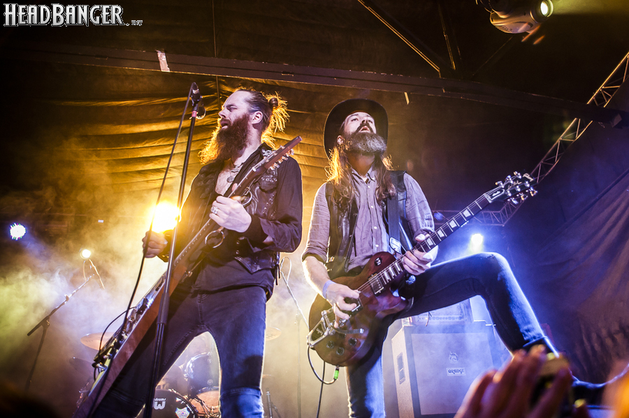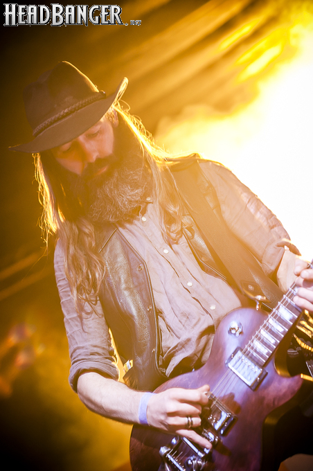 Вообще, многое из описанного у коллег в этот раз не случилось. В частности, мне не довелось услышать, как Solstafir воспроизводят вживую свое знаменитое "блэк-металлическое банджо", да и пляски фронтмена на барной стойке тоже не состоялись. Исландский квартет просто вышел и начал играть свою неповторимую музыку, а через примерно 1 час 40 минут закончил и ушел за кулисы. Однако отсутствие очевидной событийности вовсе не подразумевало в данном случае скуку. Участники группы в своих концертных прикидах – уже сами по себе «событие». Трое из них радуют хипстерский глаз обширными бородами, а четвертый – настоящими рыжими косами, да и вообще тому, кто придумал имидж исландцев, хочется сказать браво за тонкое понимание стиля. На сцене Solstafir отлично соответствуют придуманному кем-то из моих коллег термину «ледяные ковбои» - есть в их имидже немало ковбойского, но эта ковбойскость очень своеобразная, северная, заполярная.
